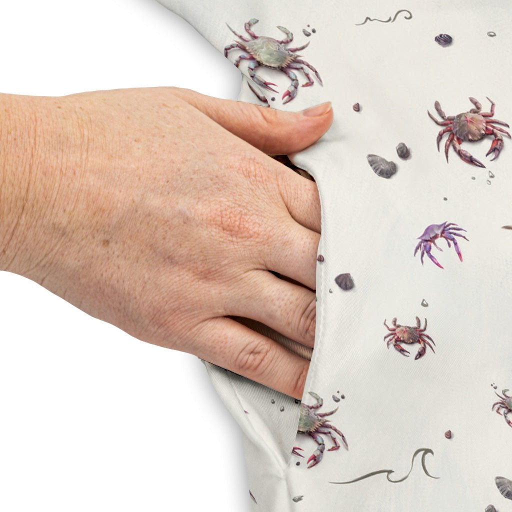 Crab Spread Dress brings a tidepool of nerdy charm to your everyday rotation. Designed by Vlad Mel, this all-over print scatters lively crab illustrations across an easy, comfy silhouette that moves with you. Deep, real-life pockets handle your essentials (yes, even a gamepad), while the polished vibe keeps it office-to-arcade ready. Geeky, artsy, and unapologetically marine-biology core.