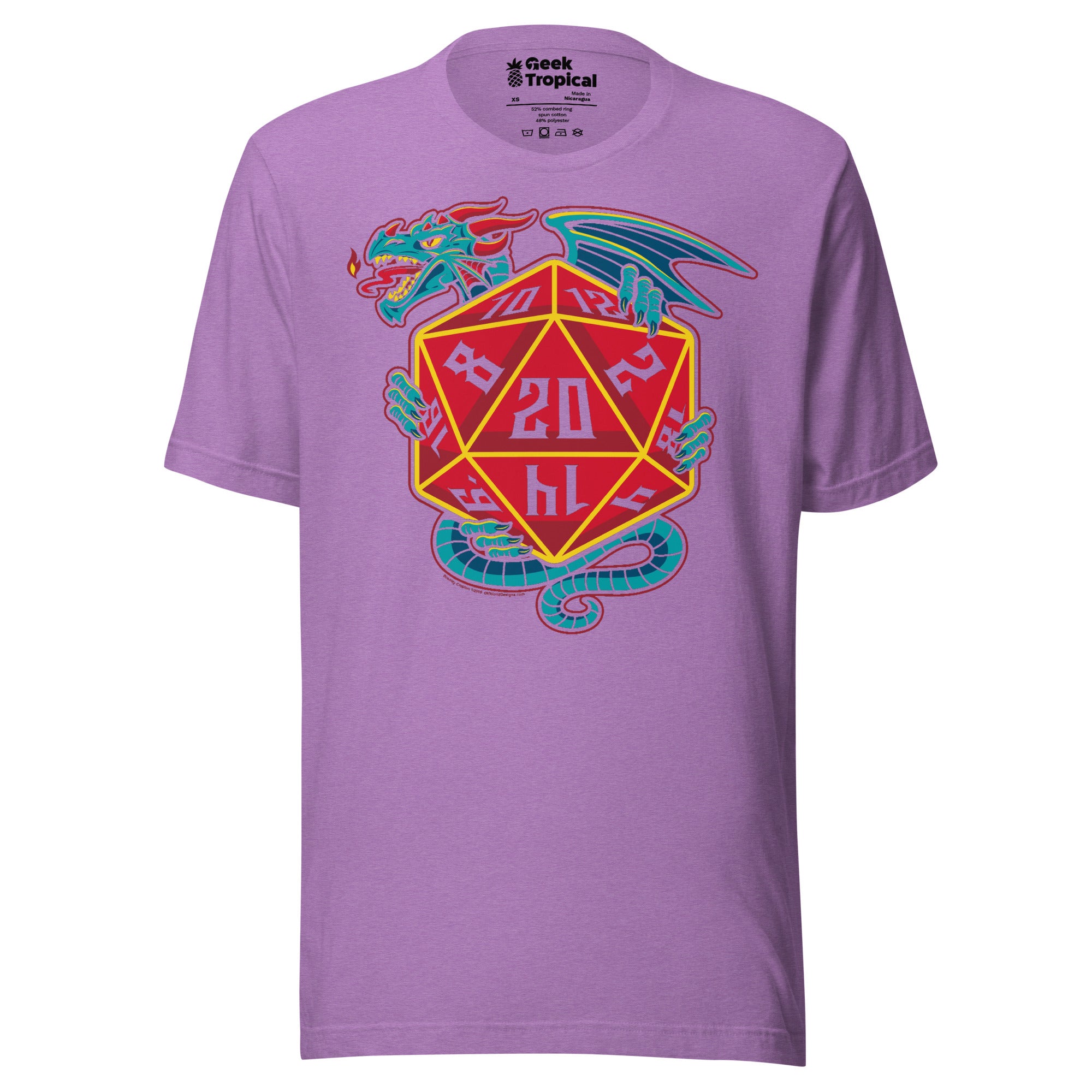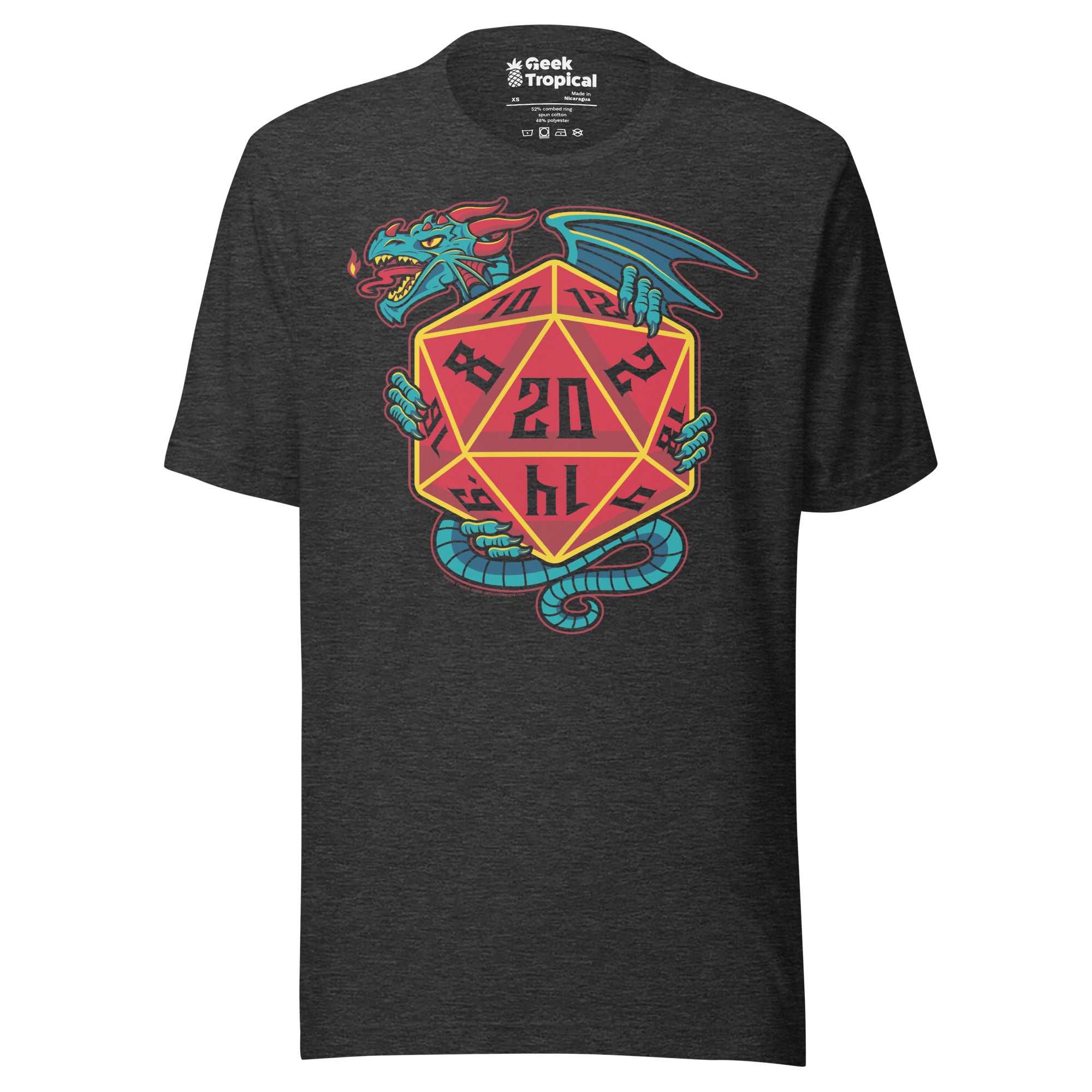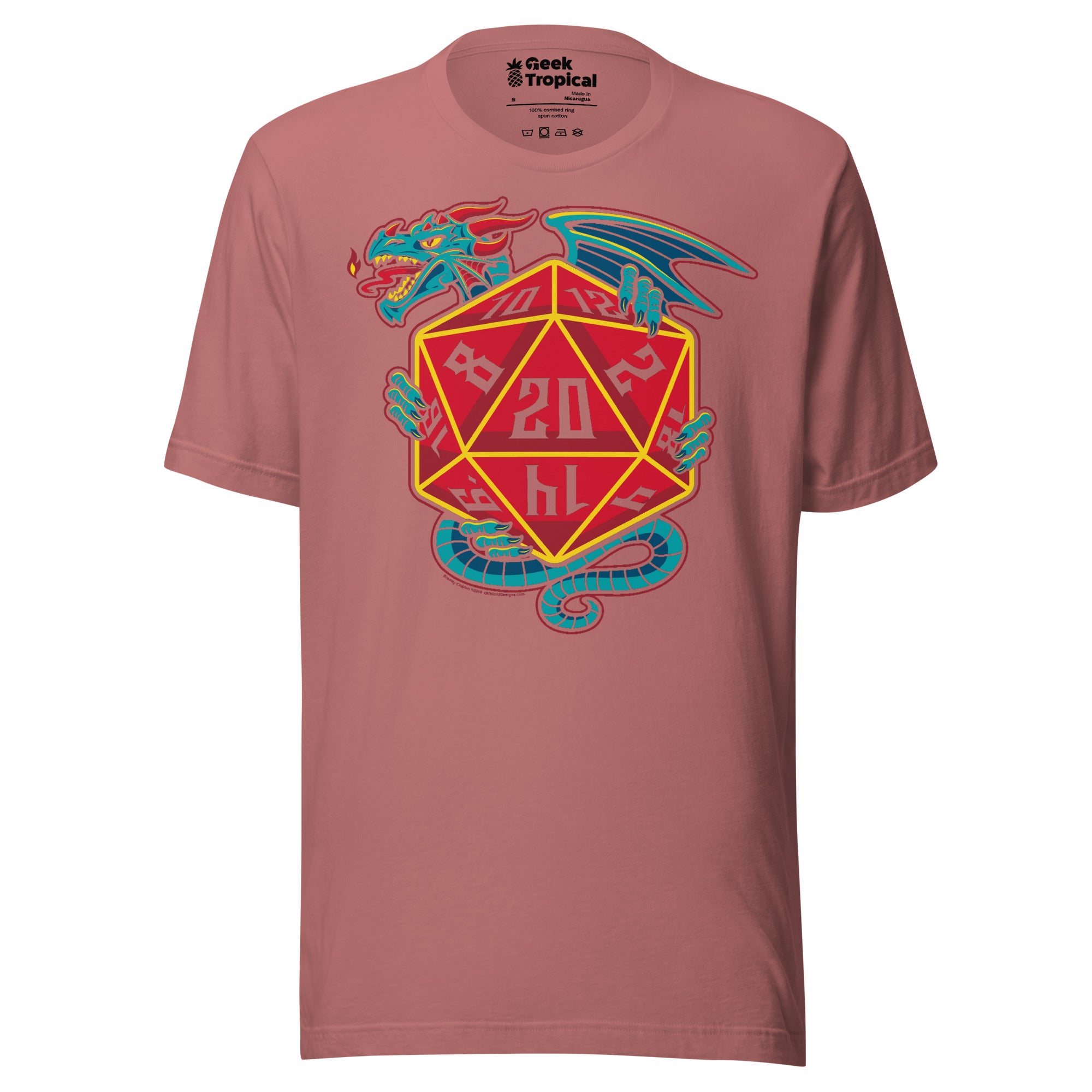 The D20 Dice Dragon T-Shirt puts your crit luck on display: a fierce, curling dragon encircling a twenty-sided die, the 20 set proudly at the heart. Bold linework and rich shading give the scales and facets a mythic, poster-style punch. Designed by Off World Designs and printed with eco-minded inks, it’s a natural fit for Dnd nights, board game meetups, or anytime you want dragon-tier swagger.