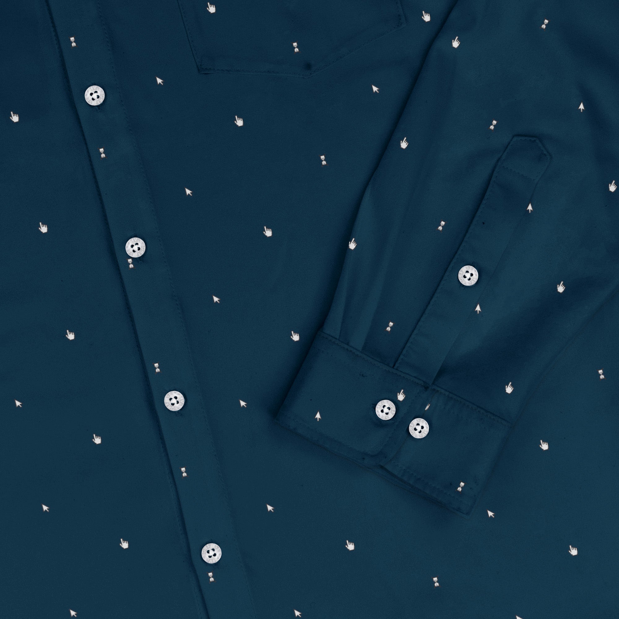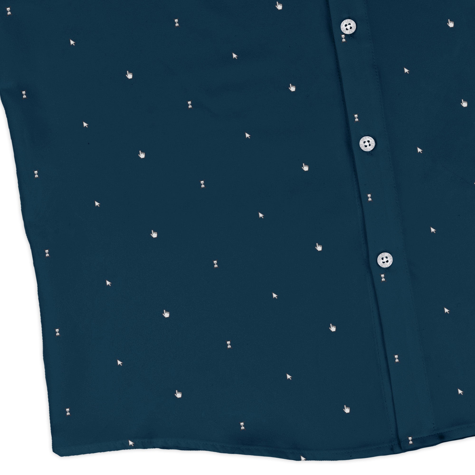 Meet the Dark Mouse Long Sleeve Button Up Shirt, a stealthy ode to the humble click companion. A dark, tone-on-tone field scatters minimalist computer mice across the fabric, lining up cleanly across the chest pocket for a seamless look. Soft, breathable, and ready for marathon work-or-play sessions, with an easy modern drape. Designed by Claire Murphy and printed with eco-minded inks to support licensed artists.
