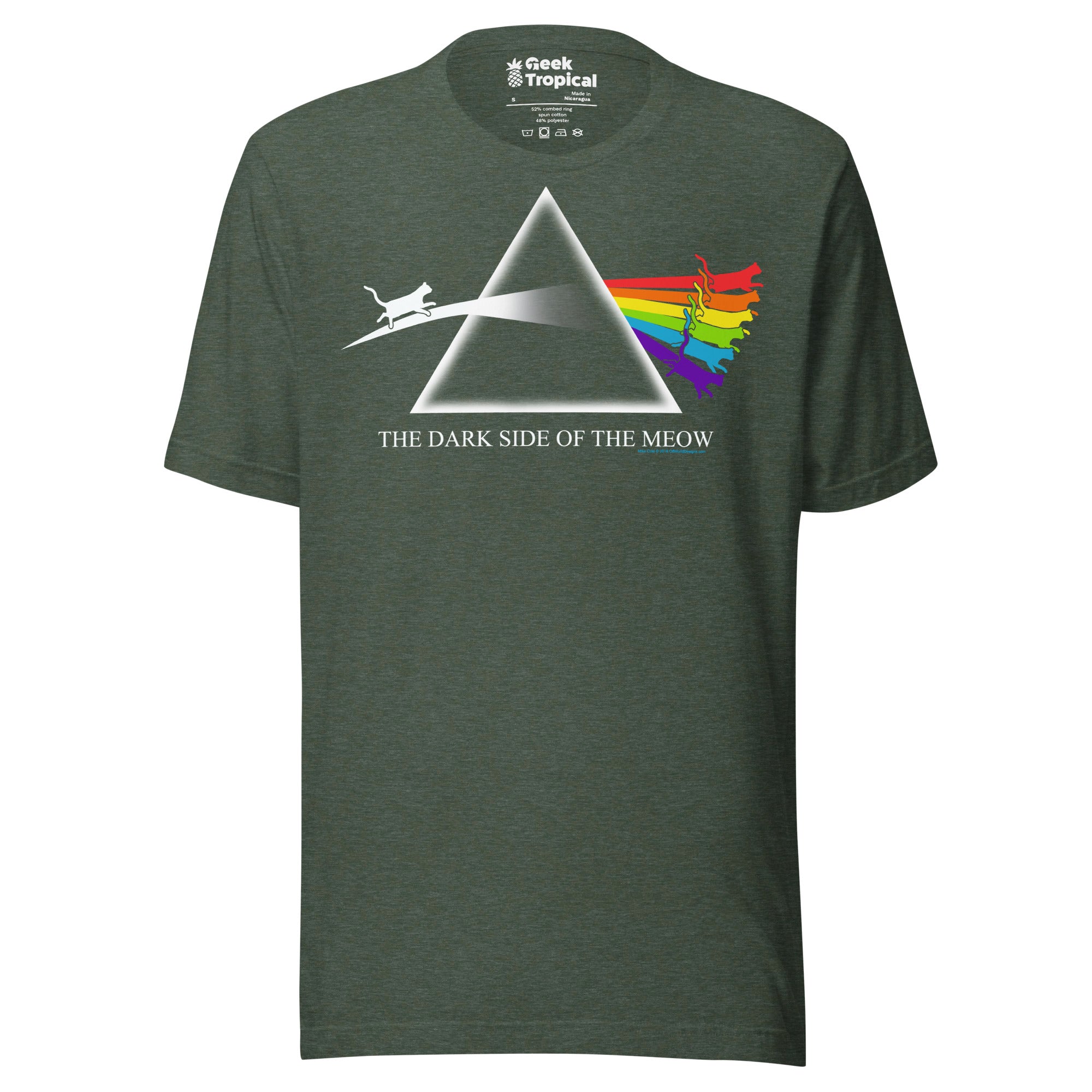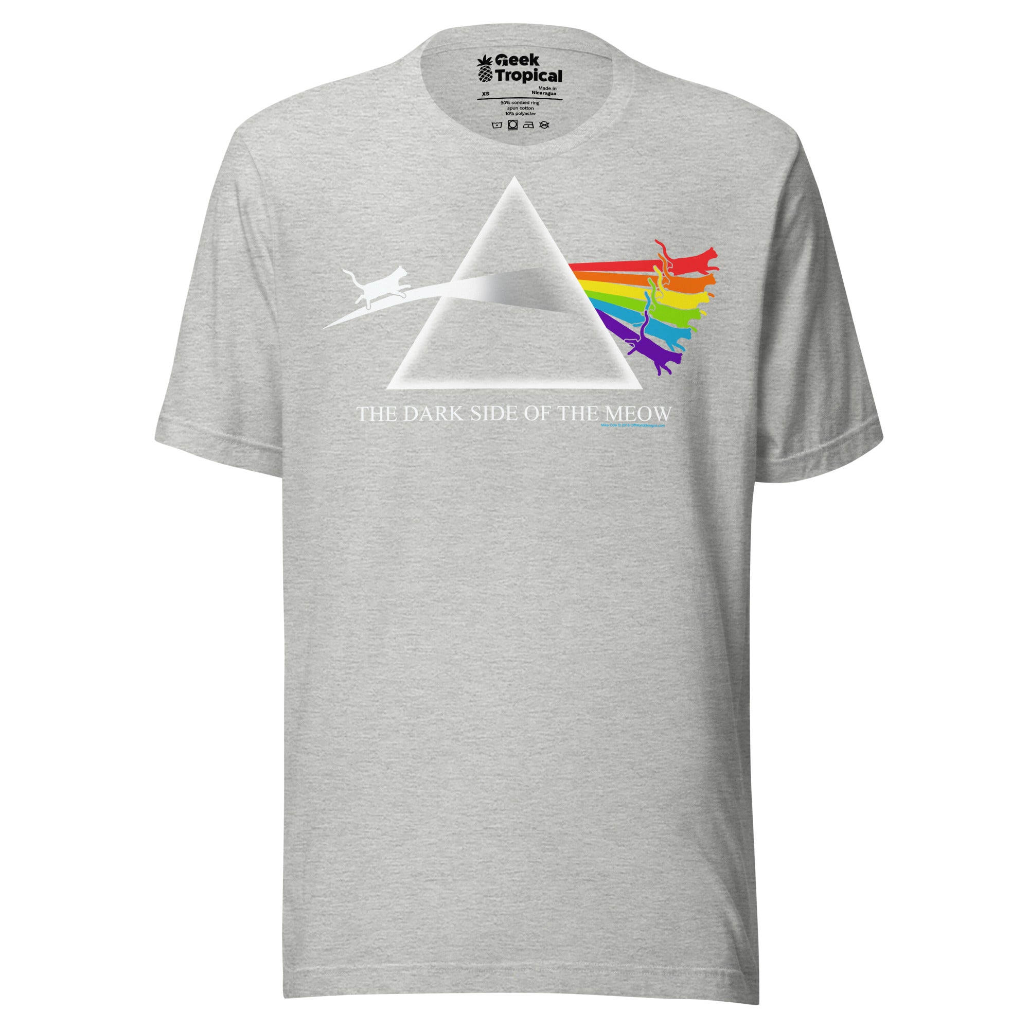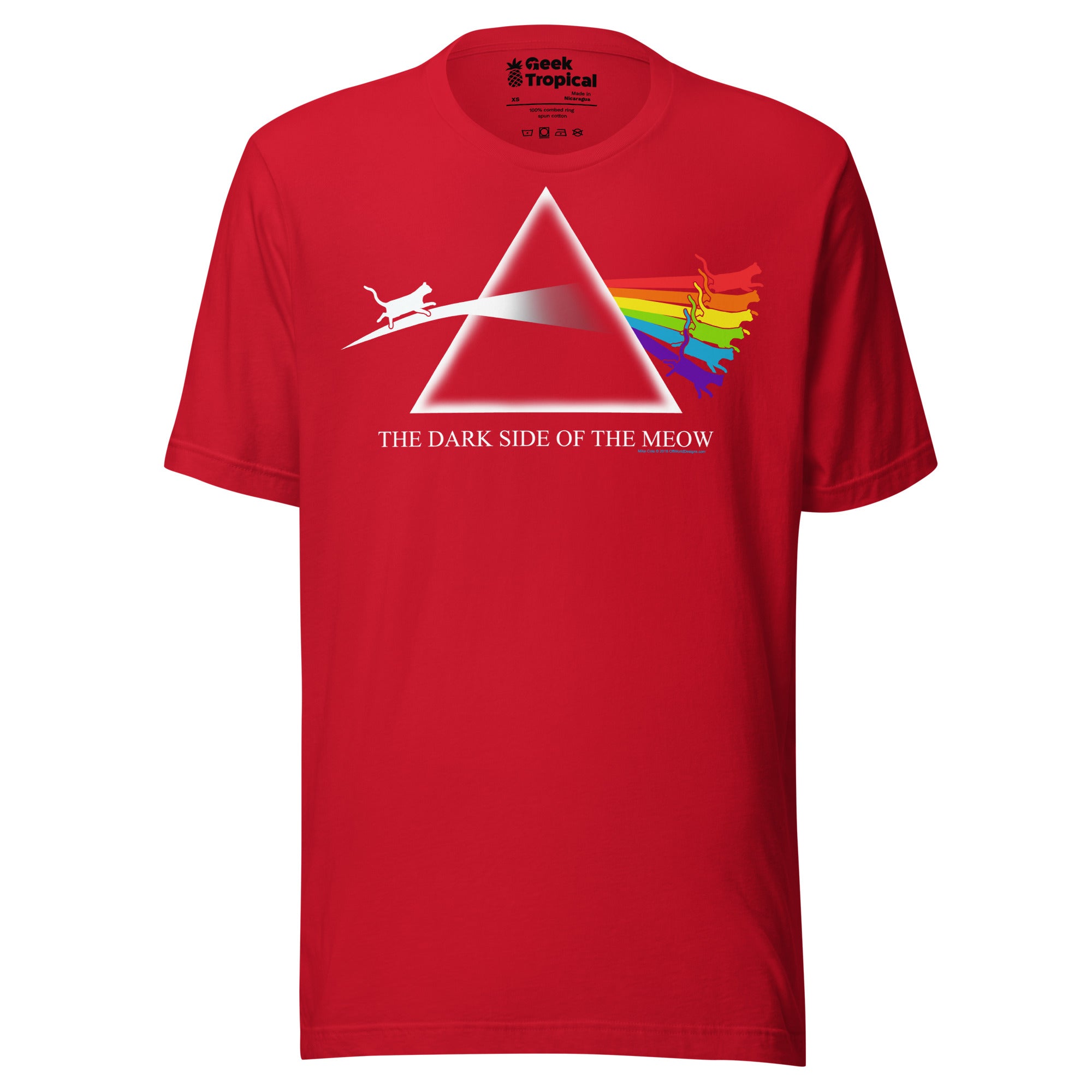 Dark Side of the Meow T-Shirt channels science-class optics into cat-core humor. A single light beam strikes a clean triangular prism and explodes into a full spectrum streak, framing a sharp feline profile with standout ears and whisker-worthy attitude. Designed by Off World Designs, this artist-backed print brings music-geek energy to your rotation—smart, sly, and unmistakably meow.