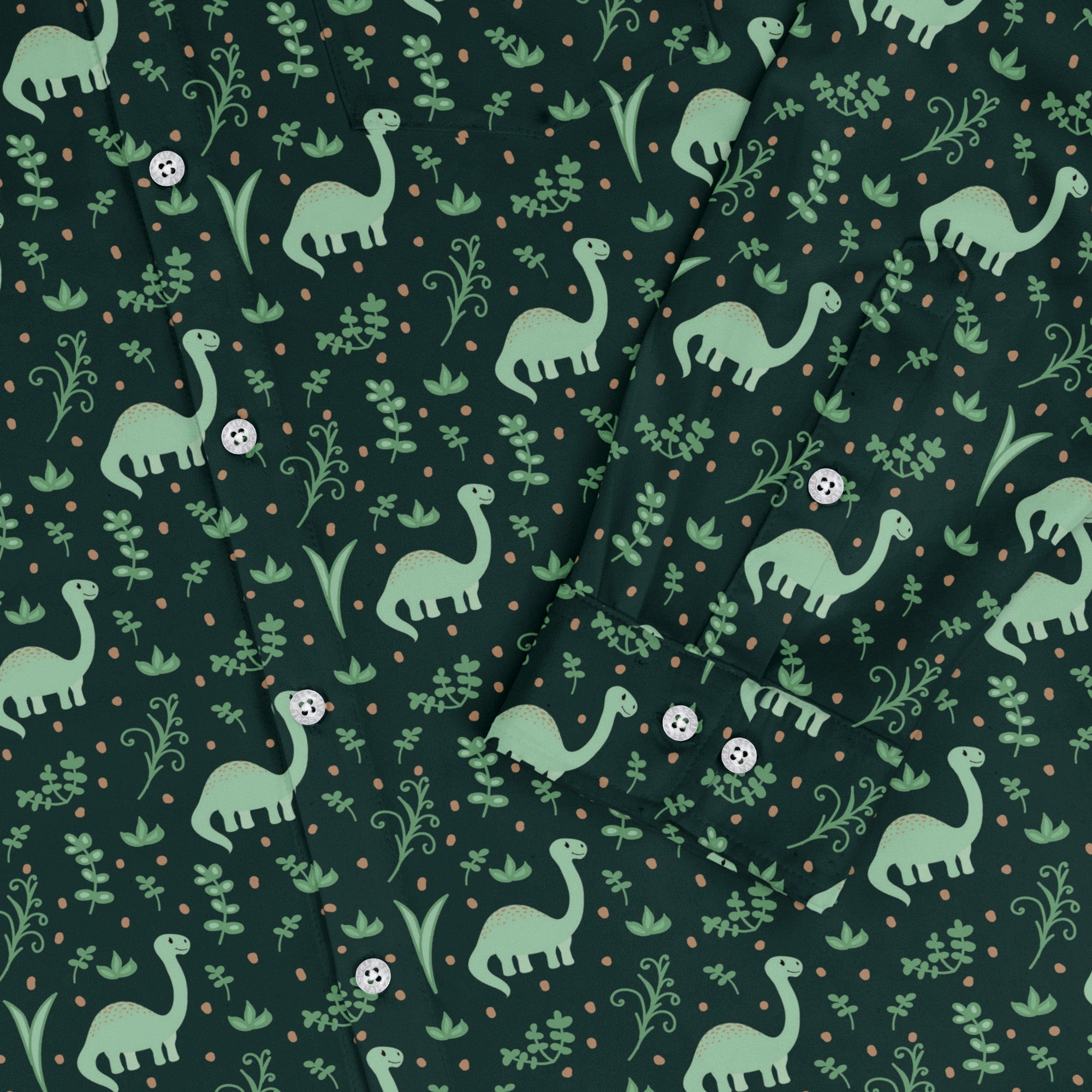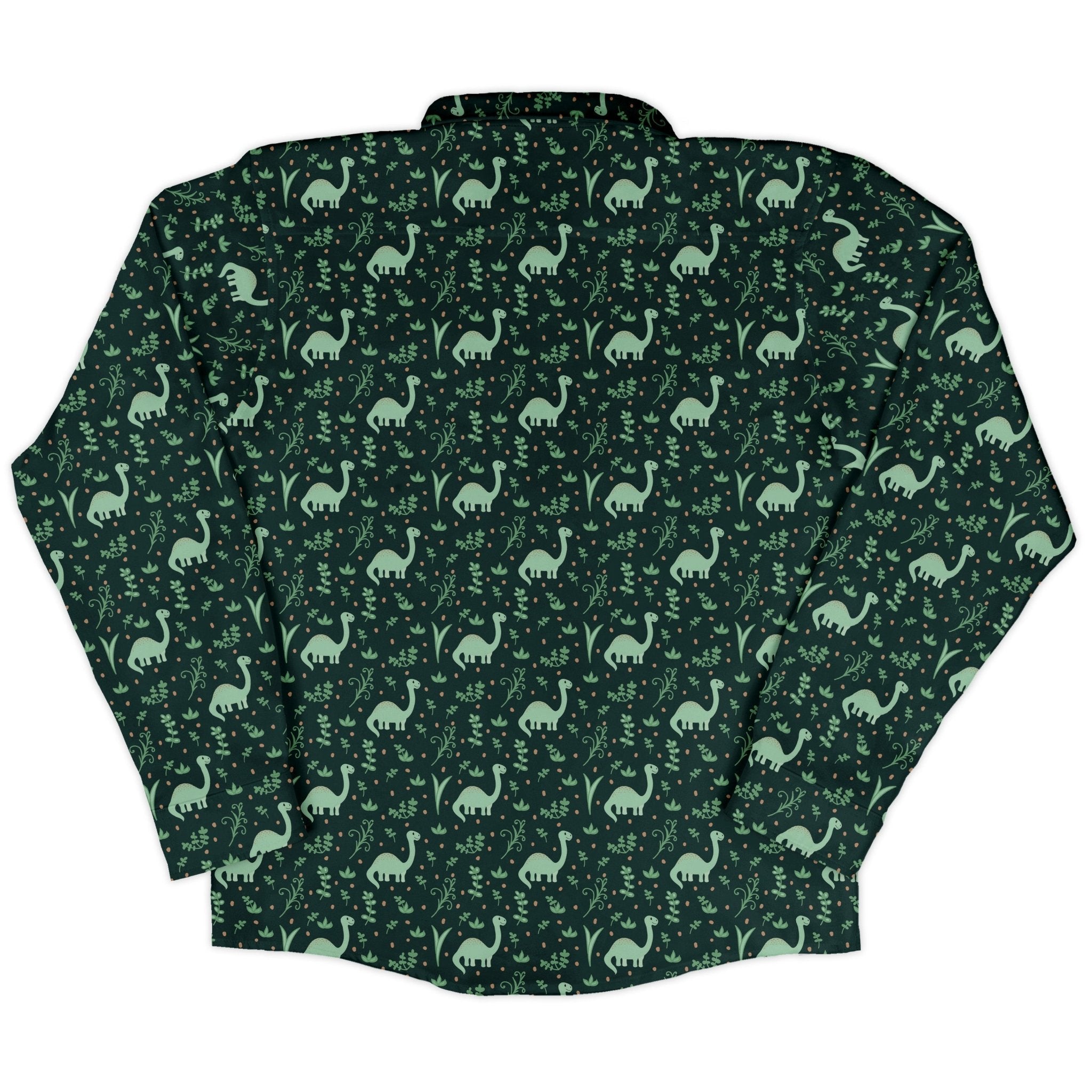 Dino Green Tropics Green Dinosaur Long Sleeve Button Up Shirt
