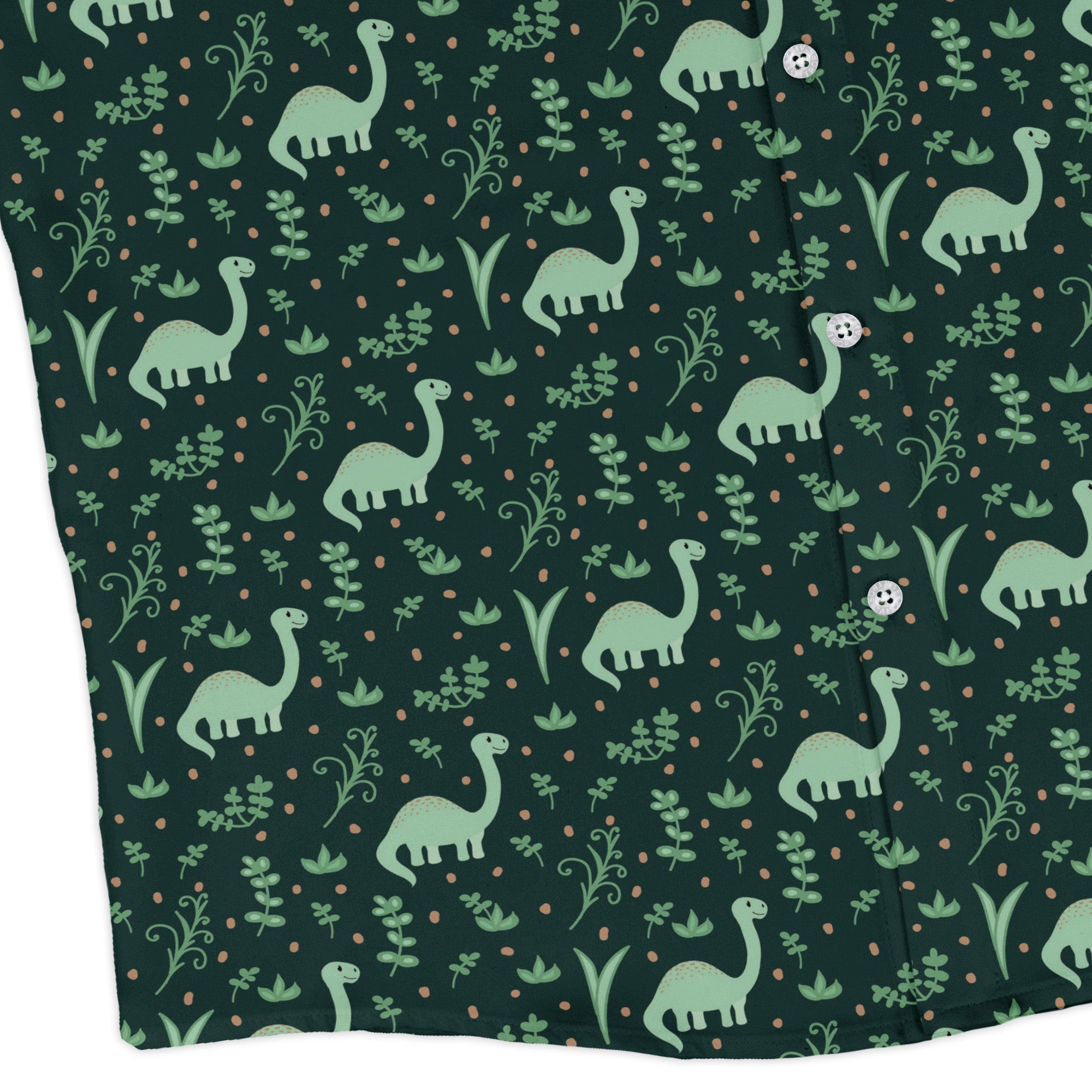 Meet the Dino Green Tropics Green Dinosaur Long Sleeve Button Up Shirt, your stealthy nod to prehistory with modern polish. Lush greens set the stage for tonal dinosaurs camouflaged amid tropical leaves, with the print aligning cleanly across the placket and chest pocket. Soft, breathable, and easy to move in, with cuffs you can fine-tune. Printed with eco-conscious inks and artist-backed—so you look sharp and do some good.
