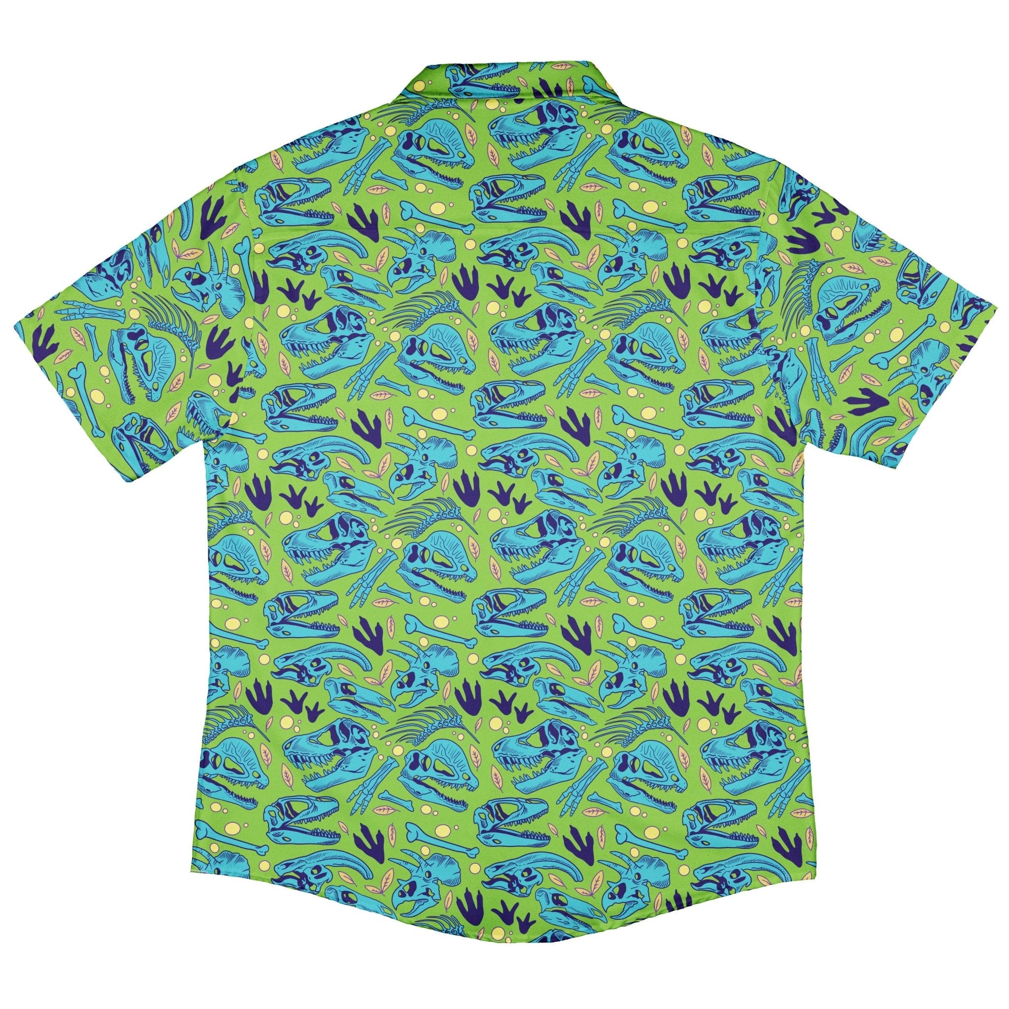 Dinosaur Bone Digs Button Up Shirt unearths playful science style with an all-over pattern of hand-drawn fossil fragments, articulated bones, and dig-site doodles. Designed by Julie Kitzes, it balances museum-nerd cred with casual swagger, turning fieldwork fascination into standout streetwear. Dress it up, nerd it down, and show your love for paleontology with artist-backed flair.