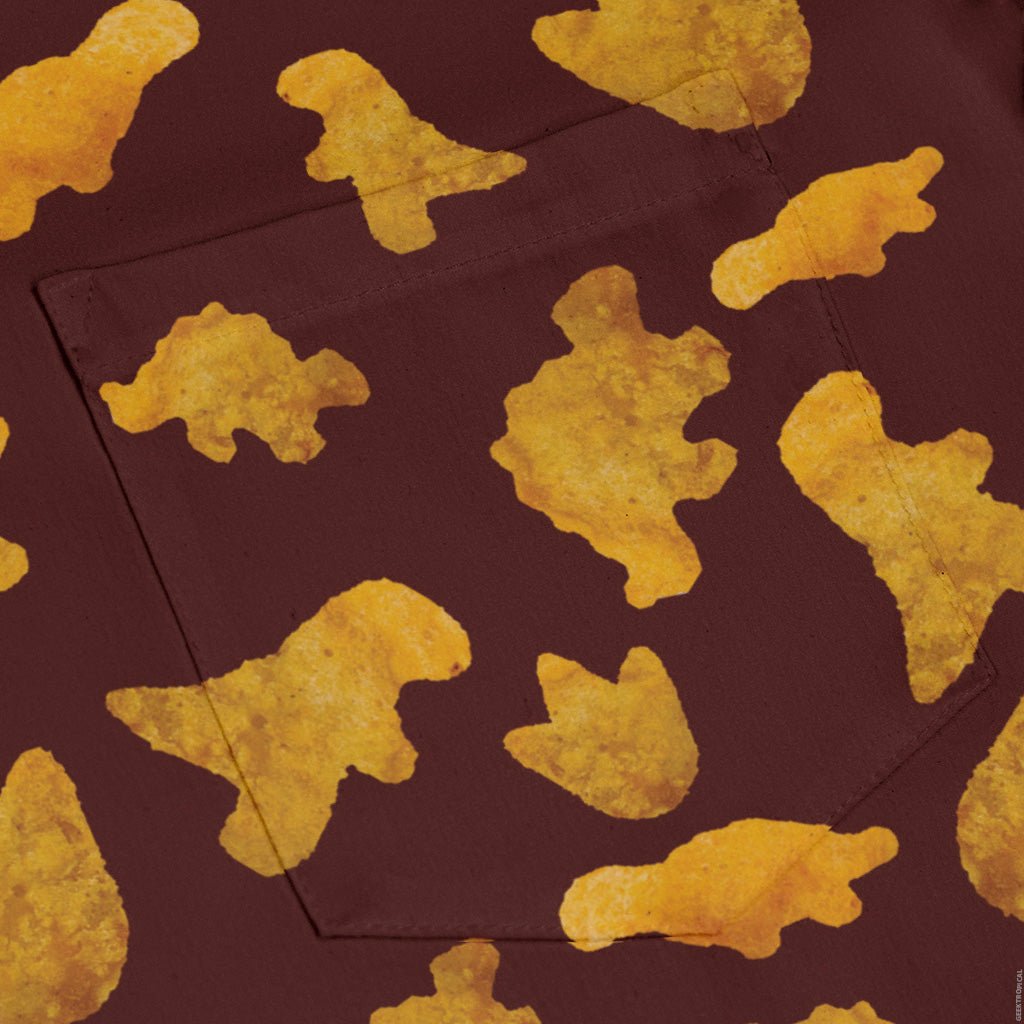 Meet the Dinosaur Chicken Nuggets Red Long Sleeve Button Up Shirt, a playful power-up for geeky wardrobes. Golden dino-shaped nuggets march across a bold red field, with the chest pocket pattern neatly matched so the snacky saurians roam uninterrupted. Soft, breathable, and easy to wear all day, it’s adult-sized whimsy with real-world polish. Designed by Random Galaxy and proudly artist-backed.