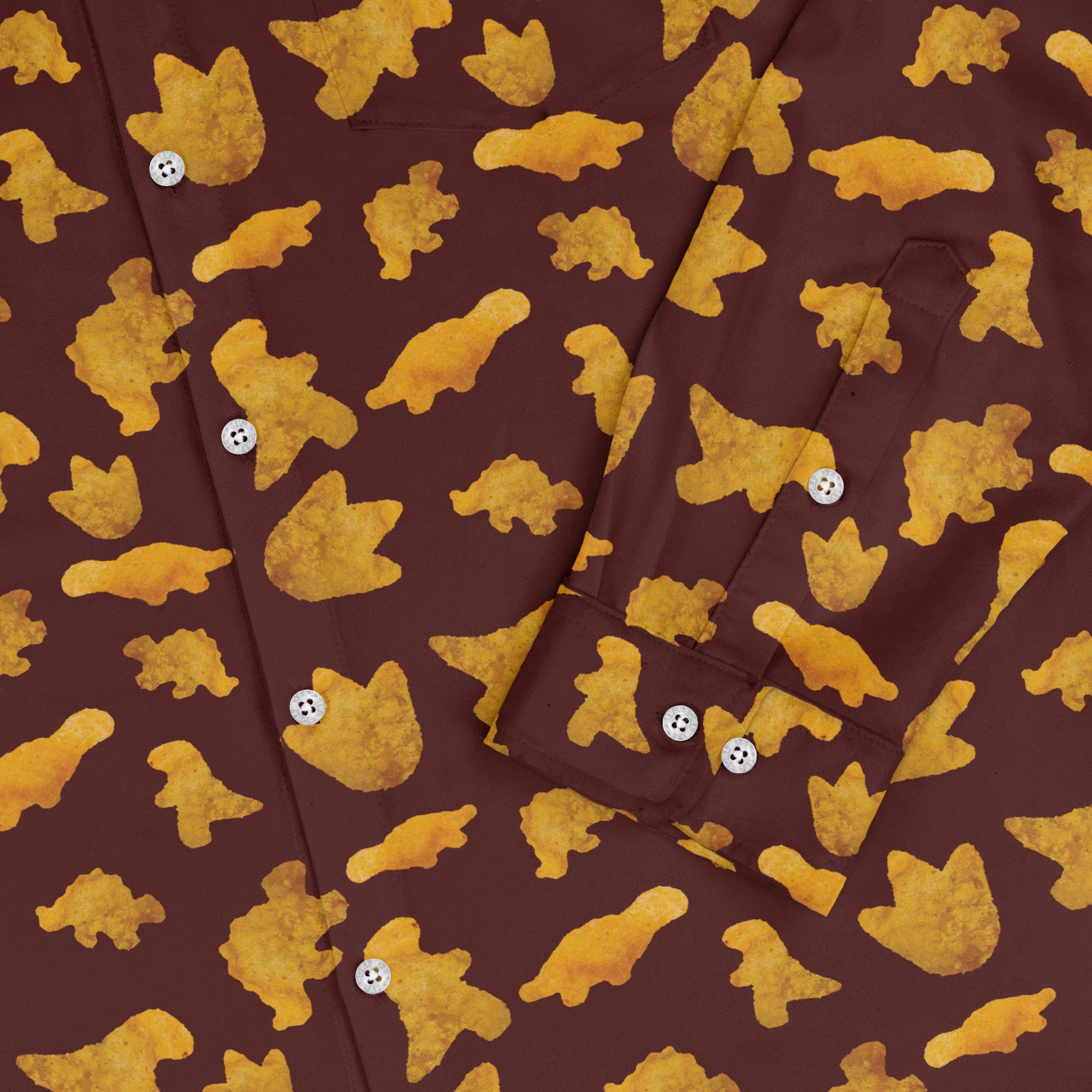 Dinosaur Chicken Nuggets Red Long Sleeve Button Up Shirt