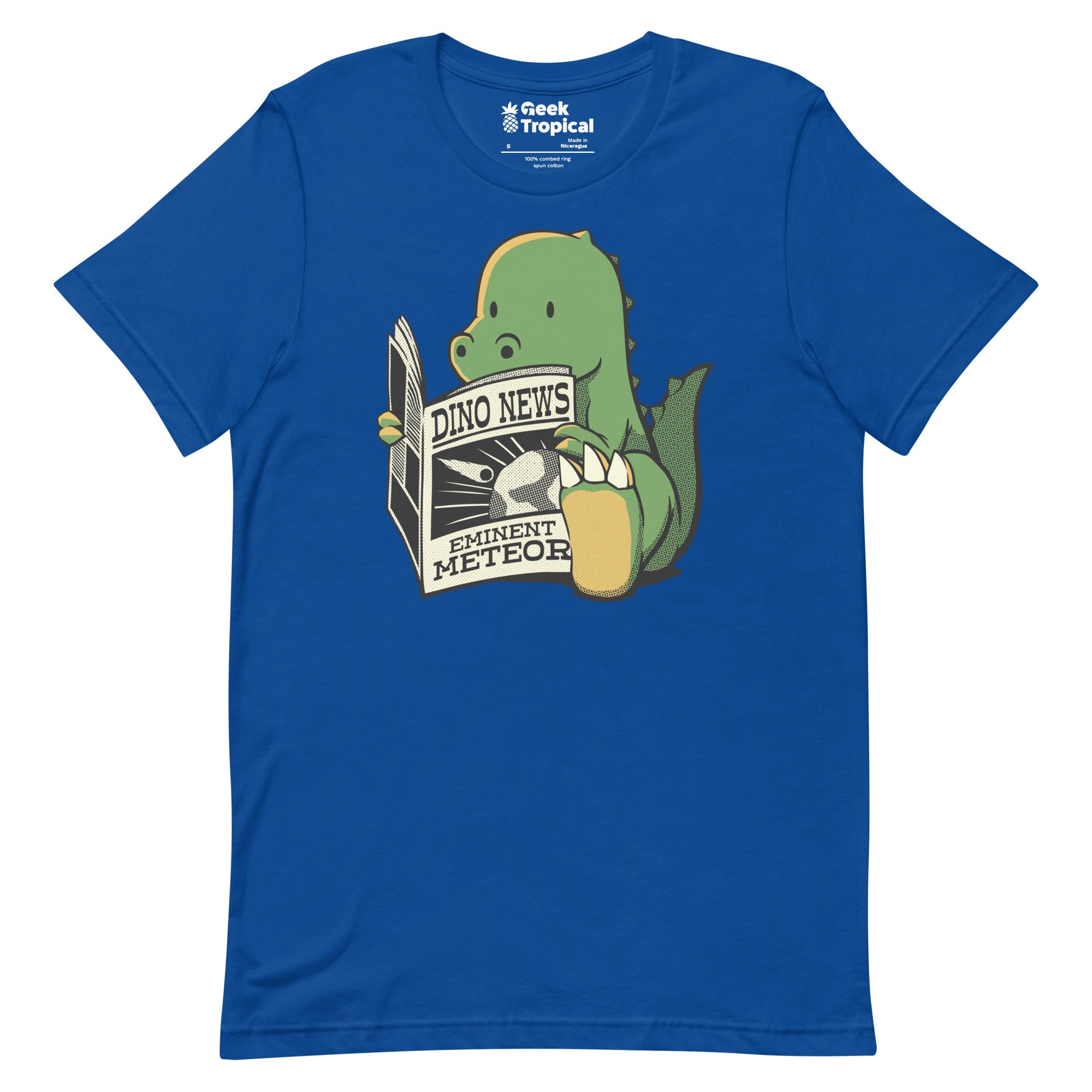 Dinosaur Reading Jurassic News T-Shirt by Tobe Fonseca turns nerdy curiosity into style. A thoughtful dino is absorbed in a newspaper titled Jurassic News, illustrated with playful details that reward a closer look. Bookish, witty, and science-friendly, it’s ideal for readers and dino geeks alike. Artist-backed and eco-conscious, this tee broadcasts smart humor without saying a word.