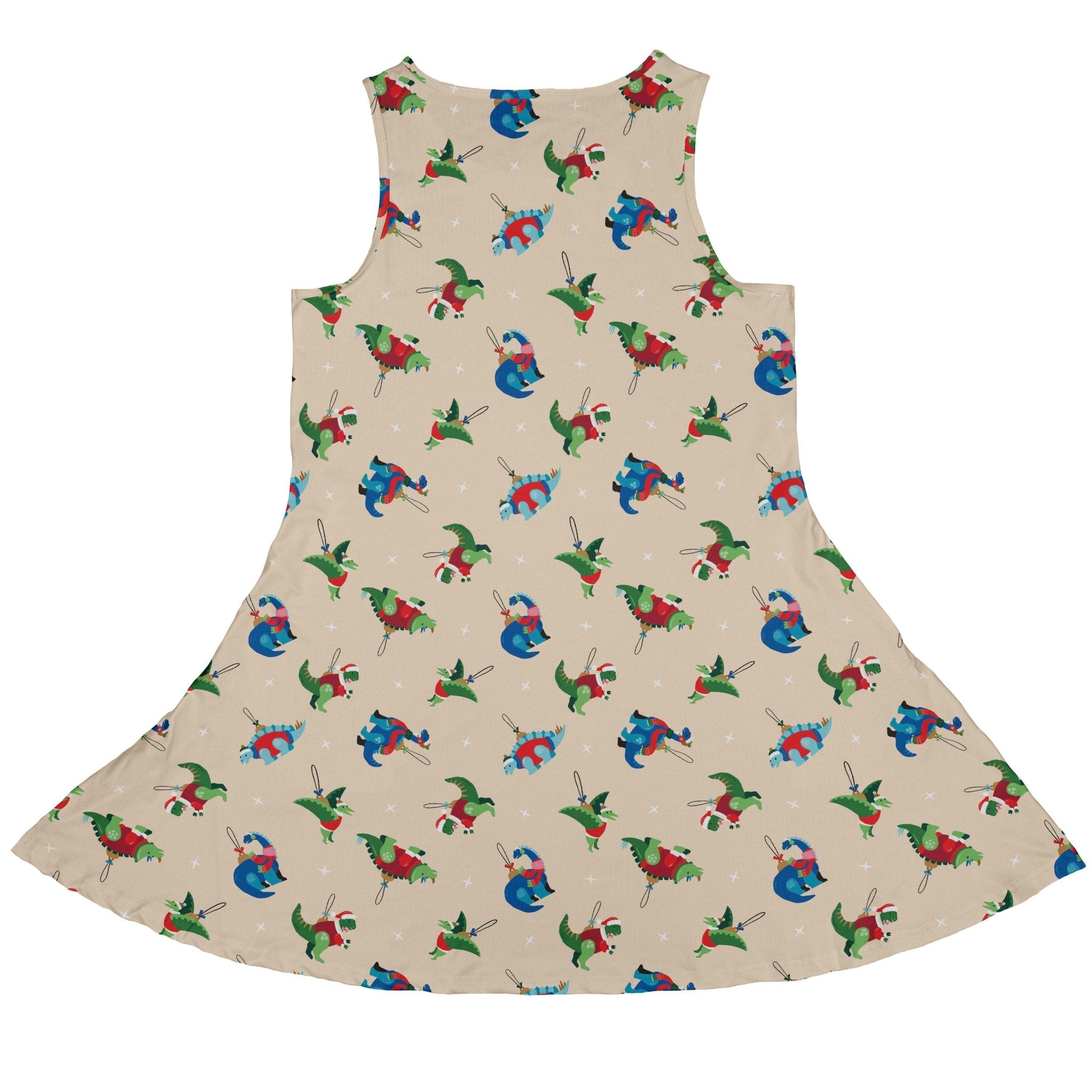 Meet the Dinosaur Ornaments Dress: your festive nerd core uniform. An all-over print of cheerful dinosaur ornaments dangles across the fabric, giving cozy holiday vibes without going cheesy. Designed by Zirkus Design and built for real life, it moves, breathes, and yes—has pockets you can actually use. Style it with boots for parties or layer with a cardigan for couch co-op. Artist-backed, wearer-approved.