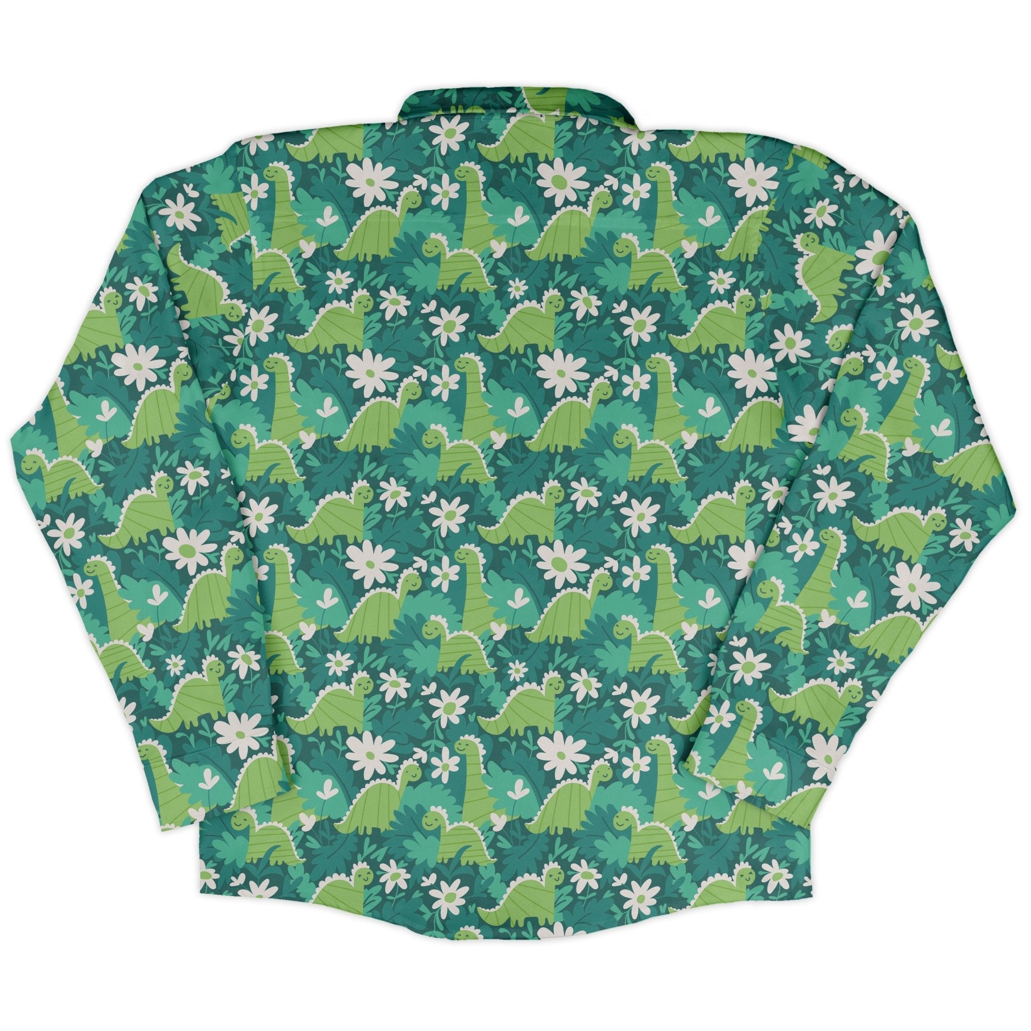 Dinosaur Smiles Flowers and Leaves Long Sleeve Button Up Shirt