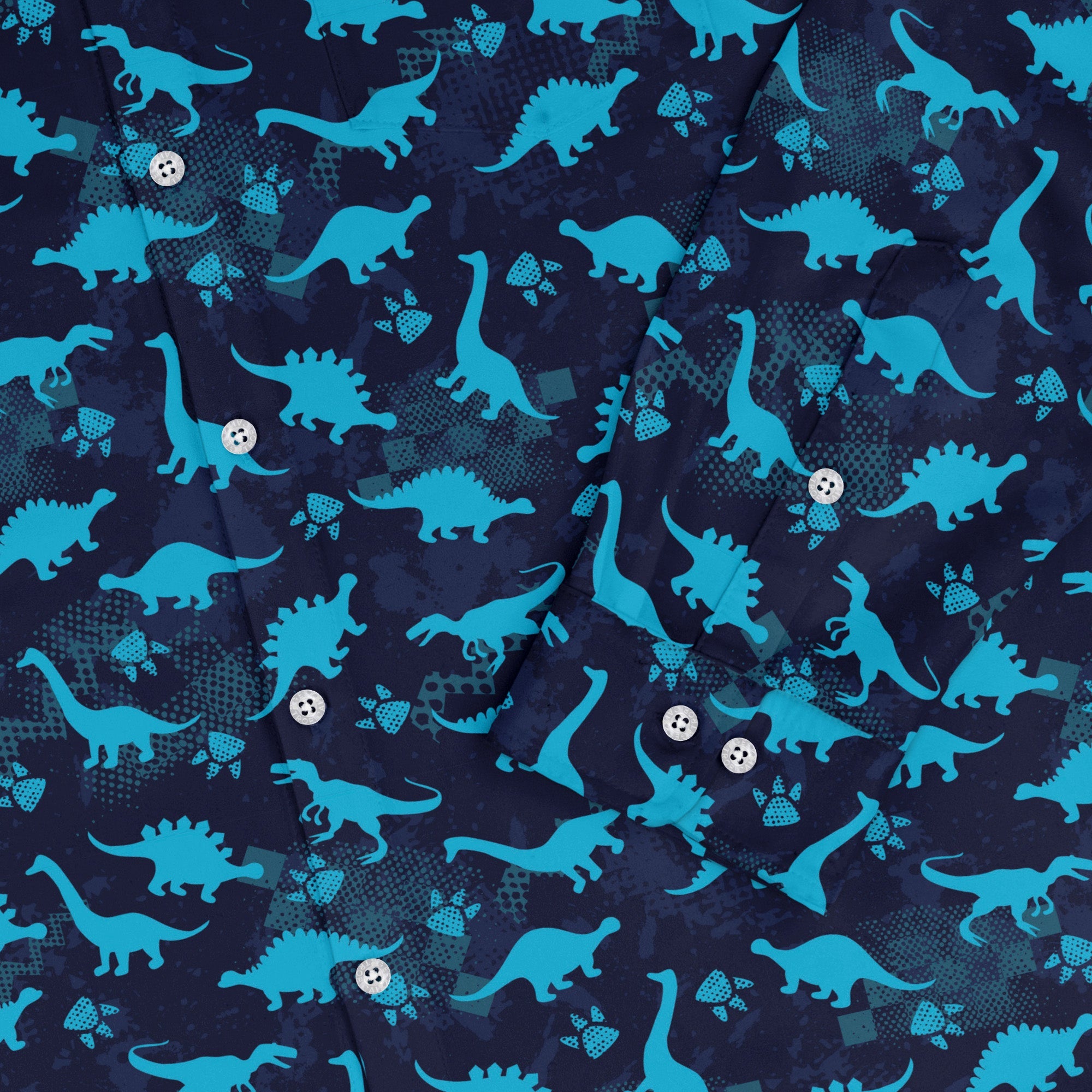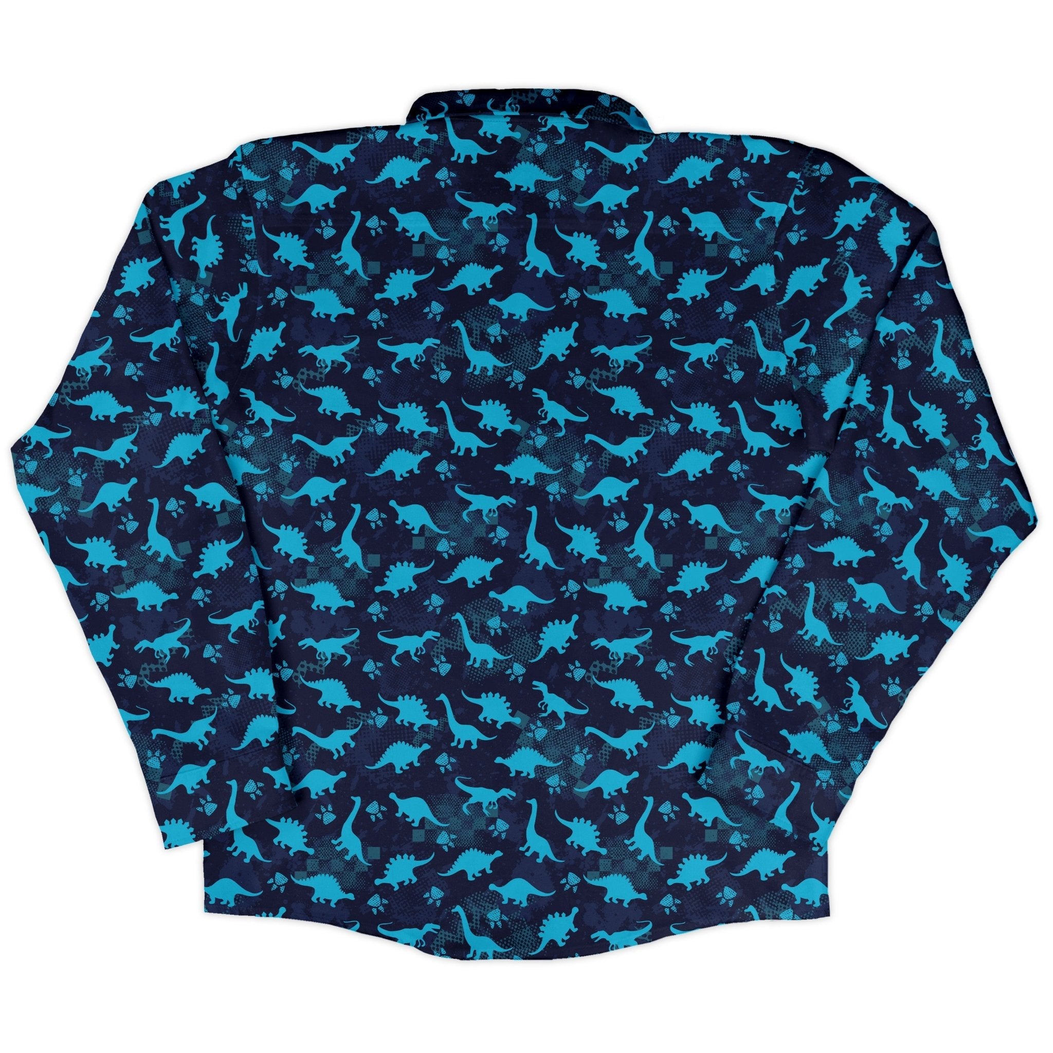 Dinosaur Urban Geometric Blue Dinosaur Long Sleeve Button Up Shirt