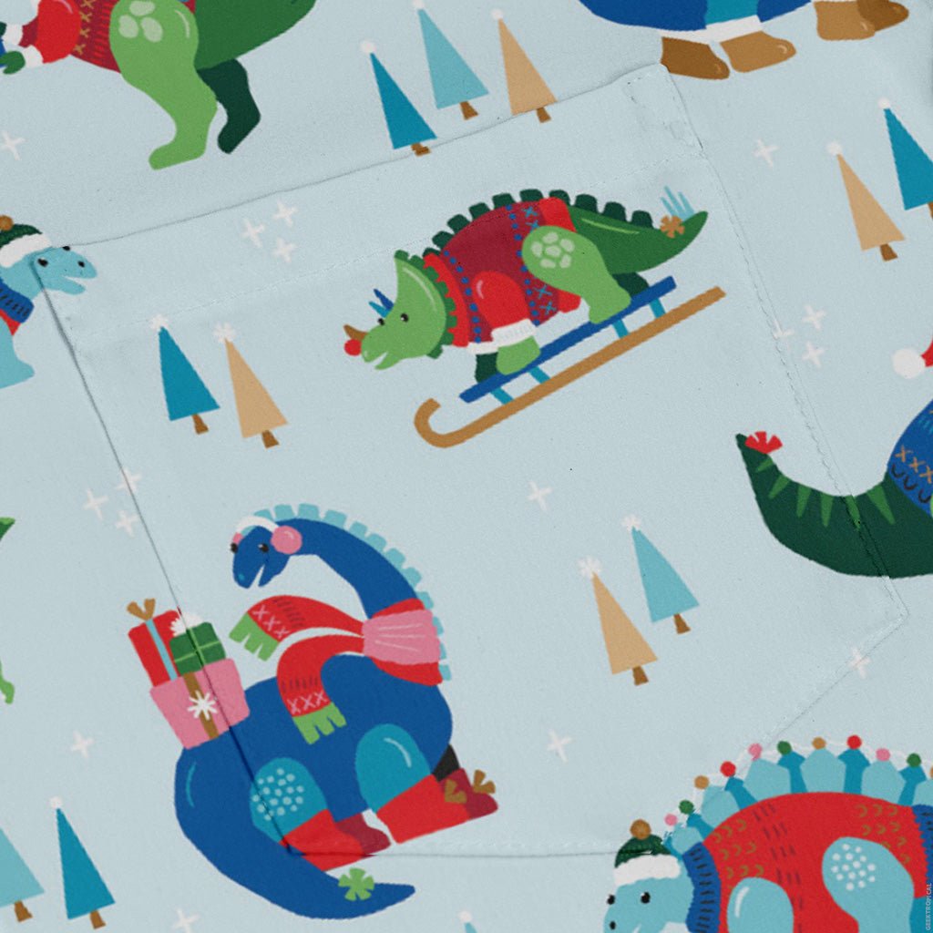 The Dinosaur wonderful winter Long Sleeve Button Up Shirt delivers a playful holiday flex for dino fans. Dinosaurs frolic in a festive winter motif across a crisp long-sleeve button-up, perfect for parties or casual Fridays. The print lines up cleanly over the placket and pocket for a polished look. Designed by Zirkus Design with eco-conscious inks, it brings adult-sized swagger to holiday nerds.