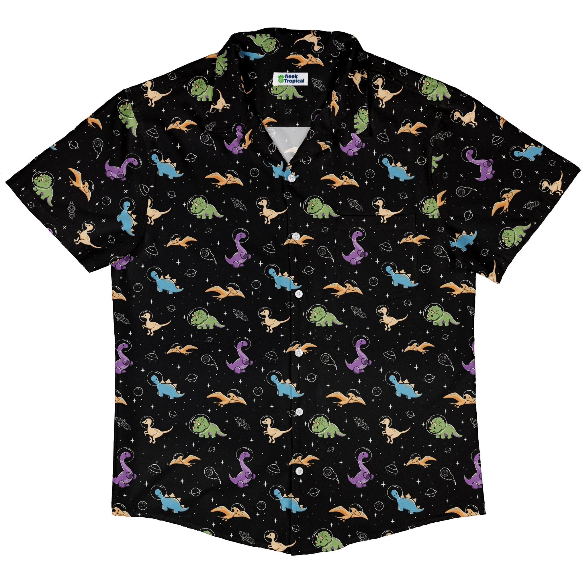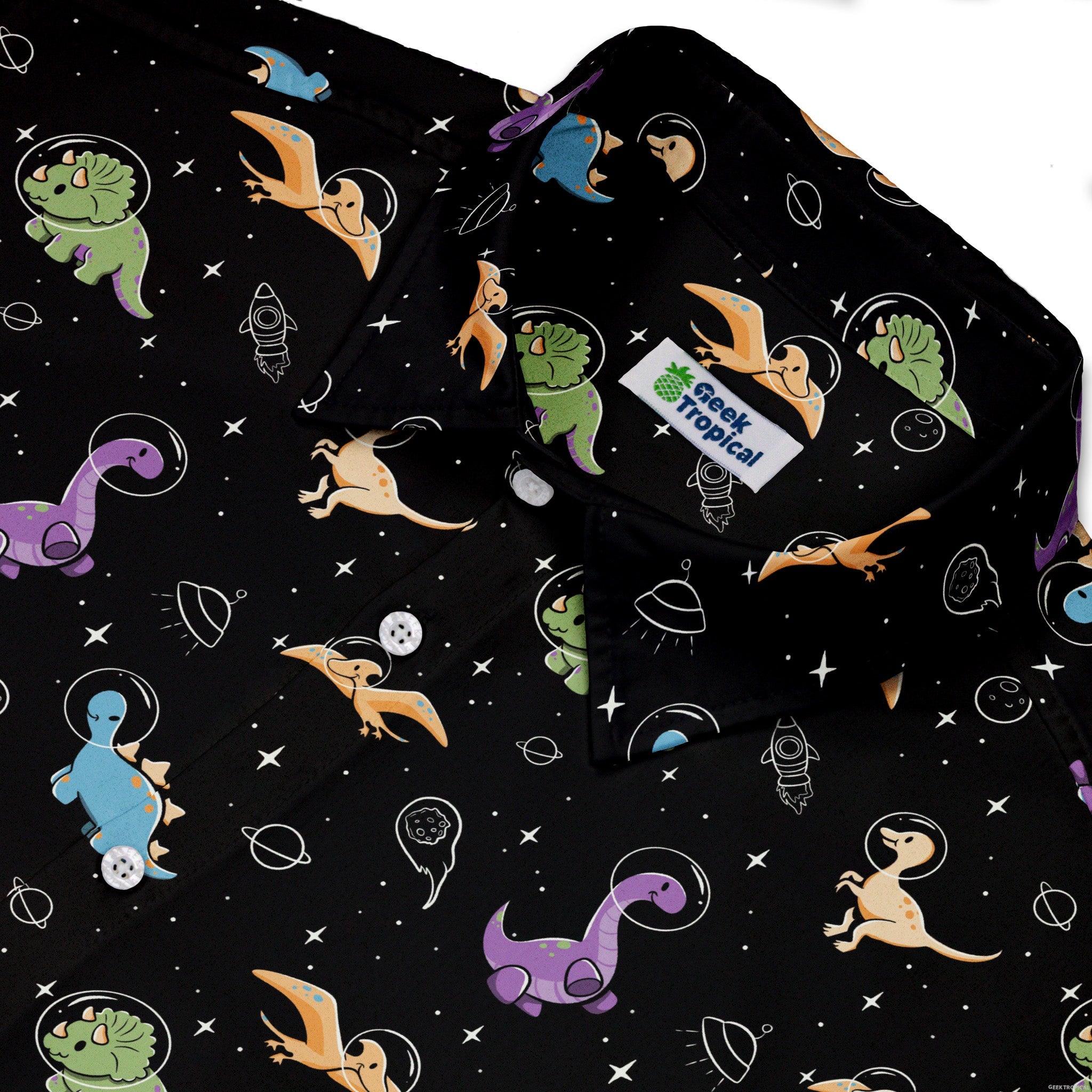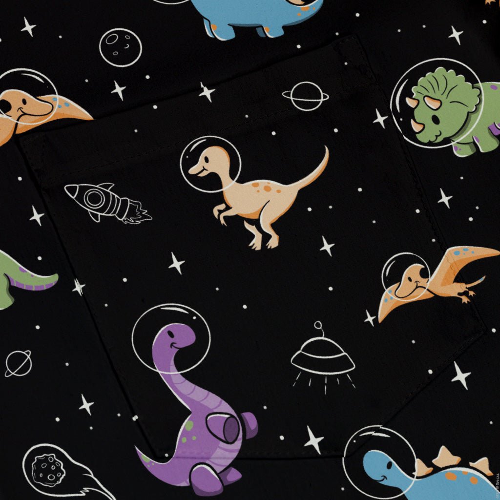 Dinostellar Space Dinosaurs Button Up Shirt launches your look into nerd-chic orbit. A galaxy of playful dinos drifts among stars and planets in bold art by Tobe Fonseca, with deep midnight blues and neon pops that glow against the dark field. Unisex-friendly and easy to style, it moves from hangouts to game nights without missing a beat. Artist-backed and printed with eco-conscious inks, it’s built for compliments and cosmic vibes.