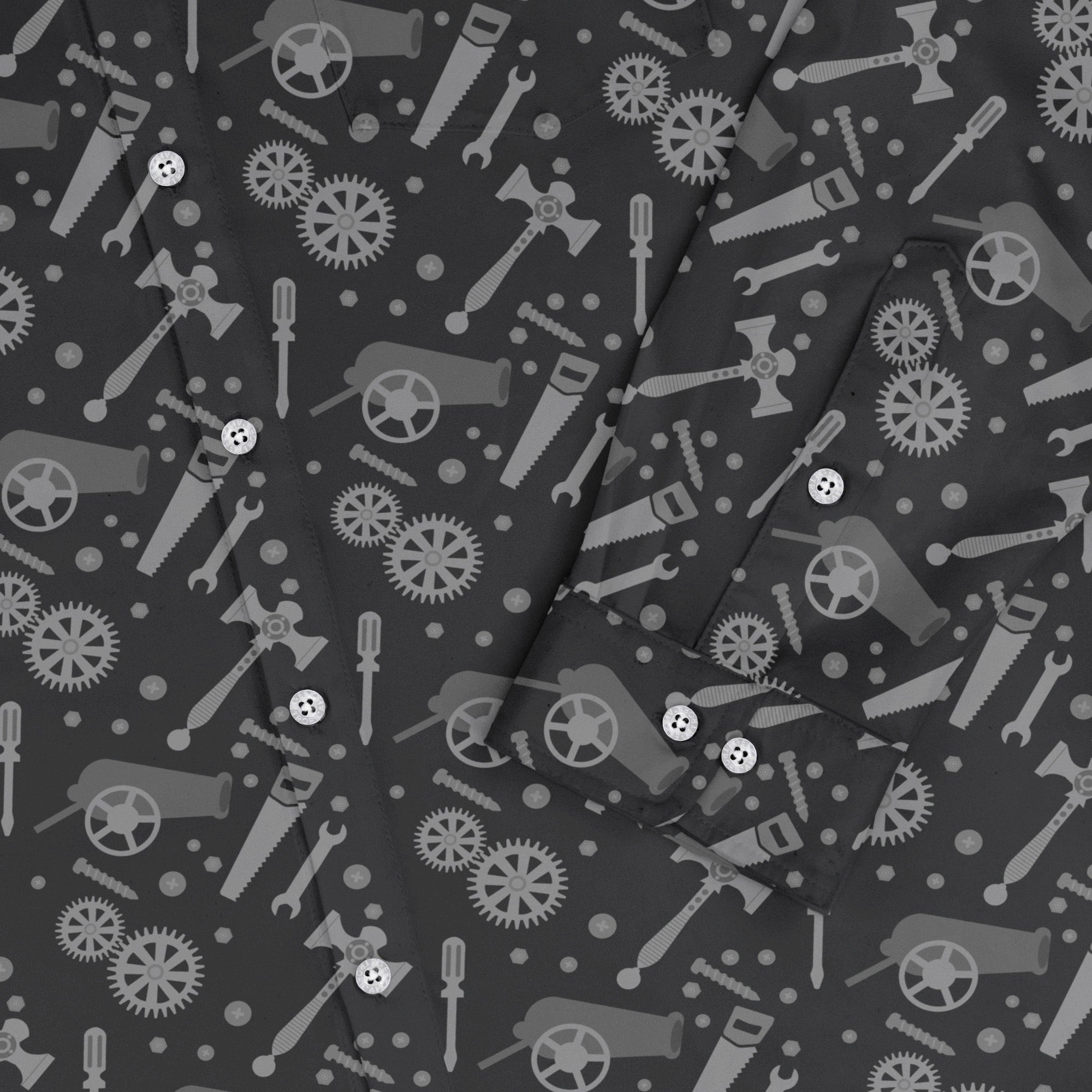 Channel your inner maker with the Dnd Artificer Class Long Sleeve Button Up Shirt, a crisp long-sleeve covered in artful artificer iconography. Arcane artificer motifs sit in a clean repeat that aligns across the chest pocket. Cut for everyday quests, it looks sharp at the table or the office. Designed by Heather Davenport and printed with eco-conscious inks—your purchase supports licensed artists.