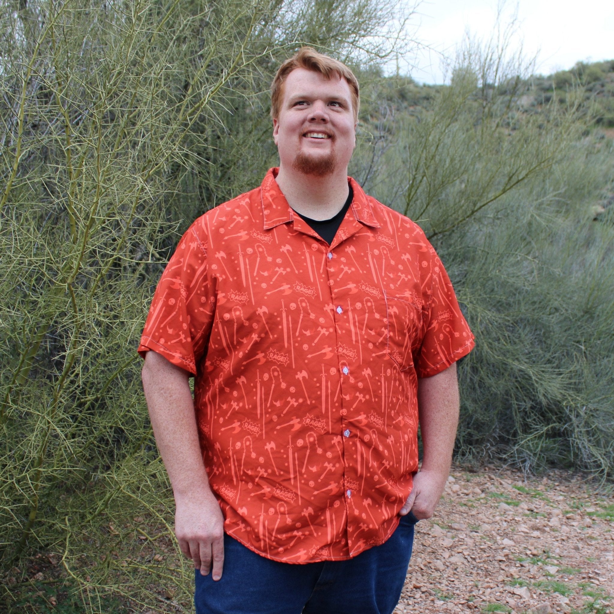 Dnd Barbarian Class Button Up Shirt brings primal swagger to your fit. The all-over print celebrates the Barbarian with bold, hand-drawn iconography and rugged, high-contrast textures that flow cleanly across the front for a seamless look. Soft and breathable for marathon sessions or quick tavern runs. Designed by Heather Davenport and printed with eco-conscious inks that help support the artist behind the steel.