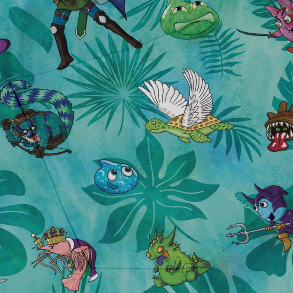 Meet the DND Cartoon Quest Long Sleeve Button Up Shirt—your tropical ticket to campaign night and beach days alike. Designs by Nathan packs the fabric with playful, hand-drawn fantasy quest scenes in a bold island palette, giving off Friday energy all week. The pattern flows cleanly across the front and pocket for a polished look, while the long sleeves keep it versatile. Geeky, comfy, and artist-backed—roll up and roll out in style.