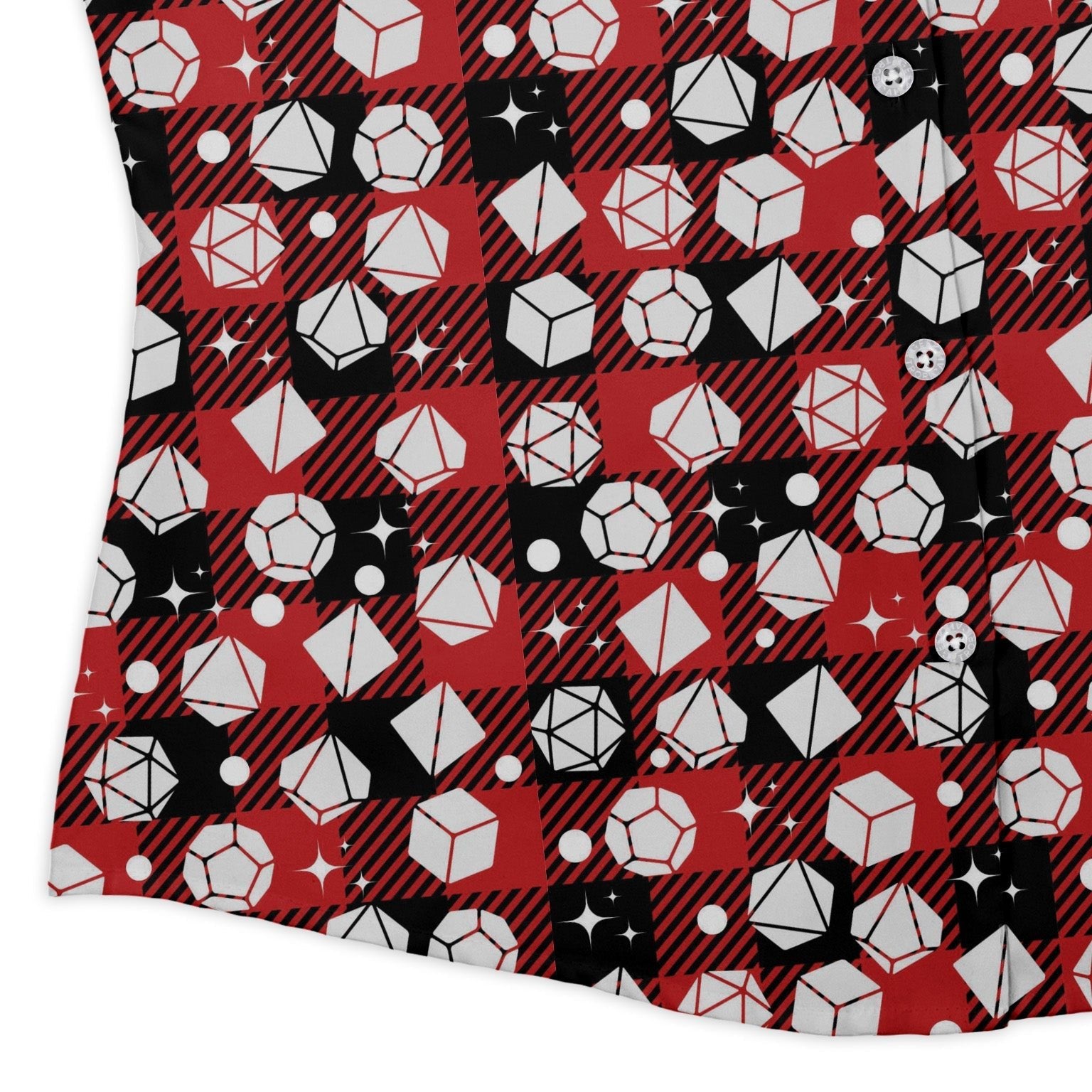 The Dnd Christmas Red Plaid Curvy Button Up Shirt turns classic holiday tartan into sly tabletop flair. A rich crimson plaid with festive gridlines sets the scene, while a shaped-for-you silhouette keeps it sleek whether buttoned or worn loose. Roll-friendly adjustable sleeves and a clean, pattern-forward finish make it easy to style for game night or gatherings. Printed with eco-conscious inks for all-day comfort.