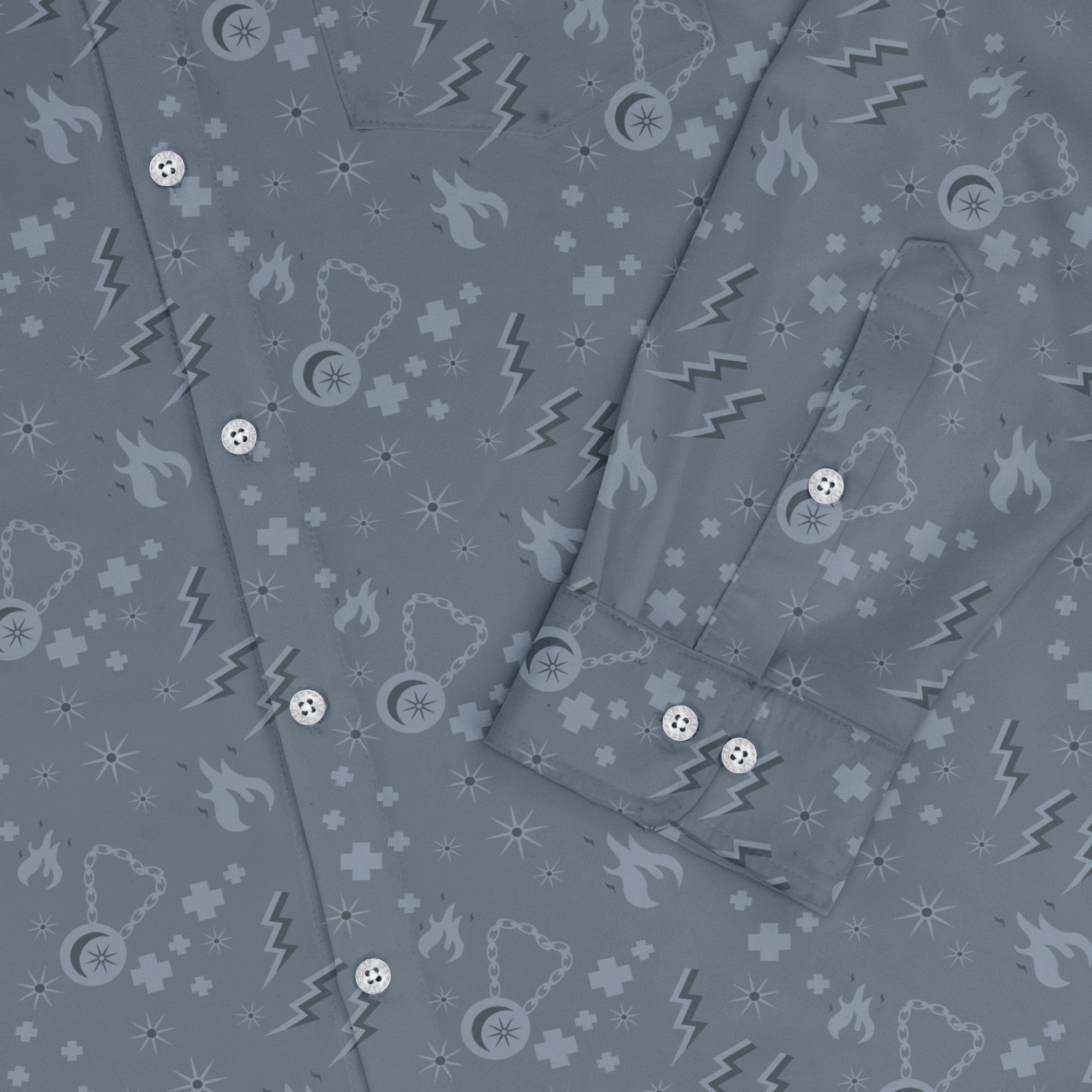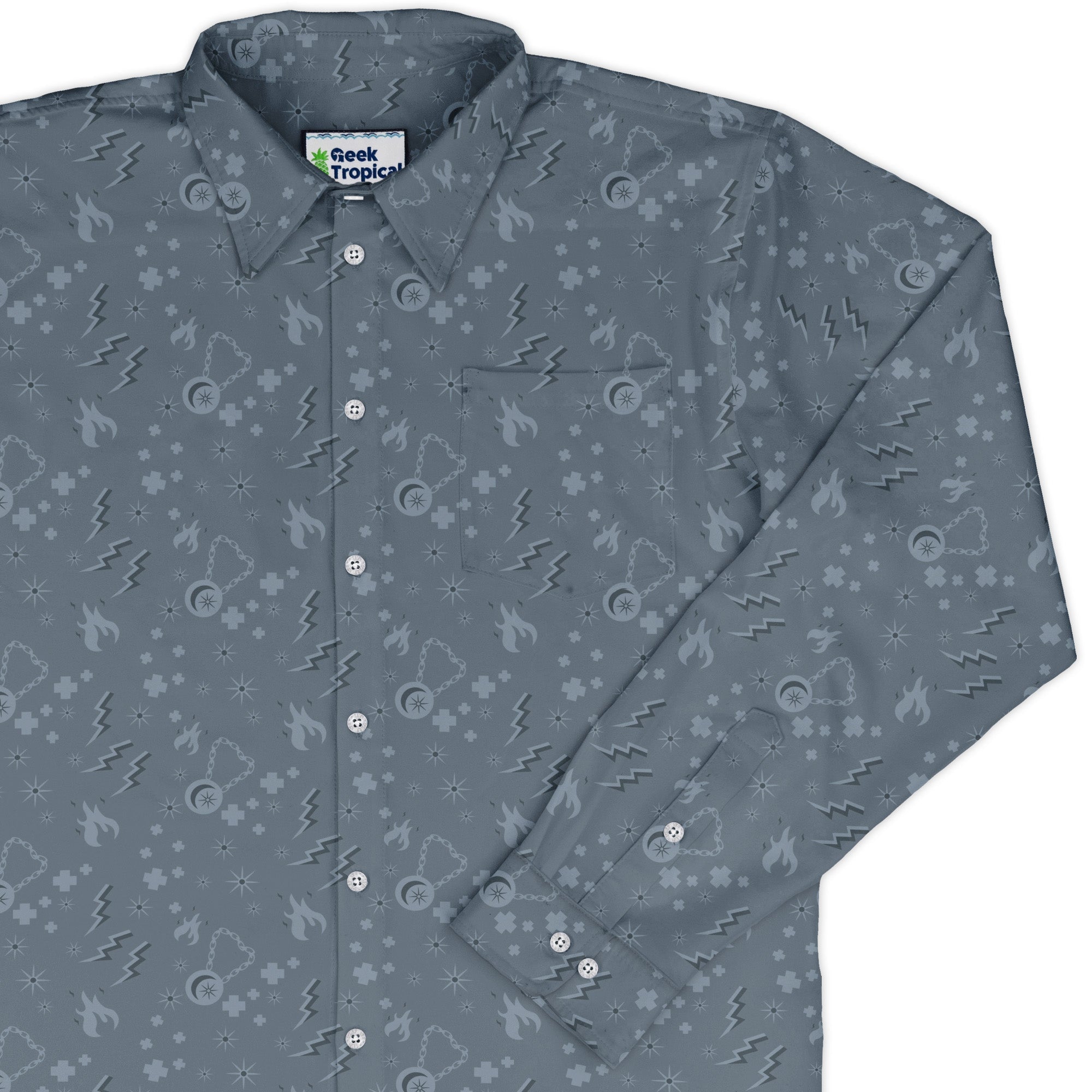 Step into divine style with the Dnd Cleric Class Long Sleeve Button Up Shirt, designed by Heather Davenport. An all-over pattern of sacred motifs and cleric iconography aligns cleanly across the chest and pocket, turning your party healer energy into a polished flex. Soft, breathable comfort and a relaxed drape carry you from campaign night to casual Friday, finished with sharp cuffs and tidy buttons for just the right bit of structure.