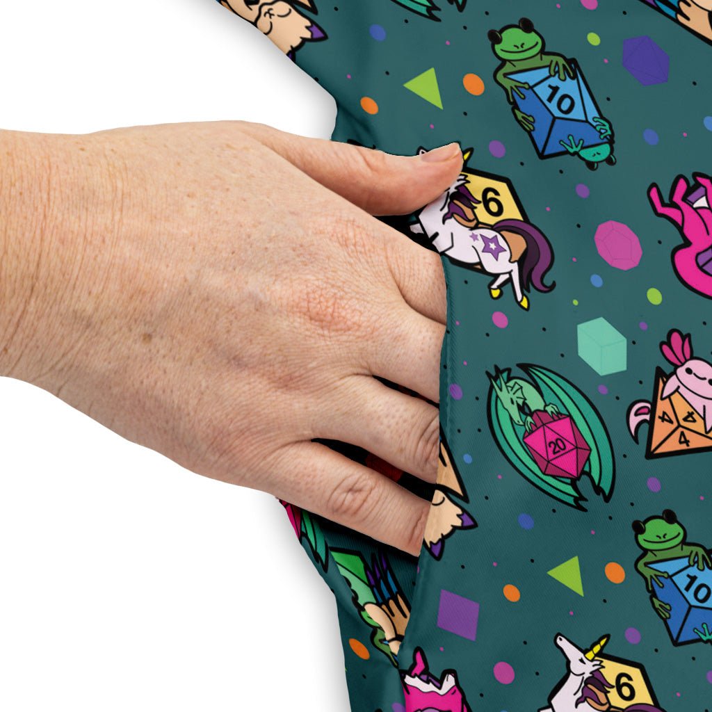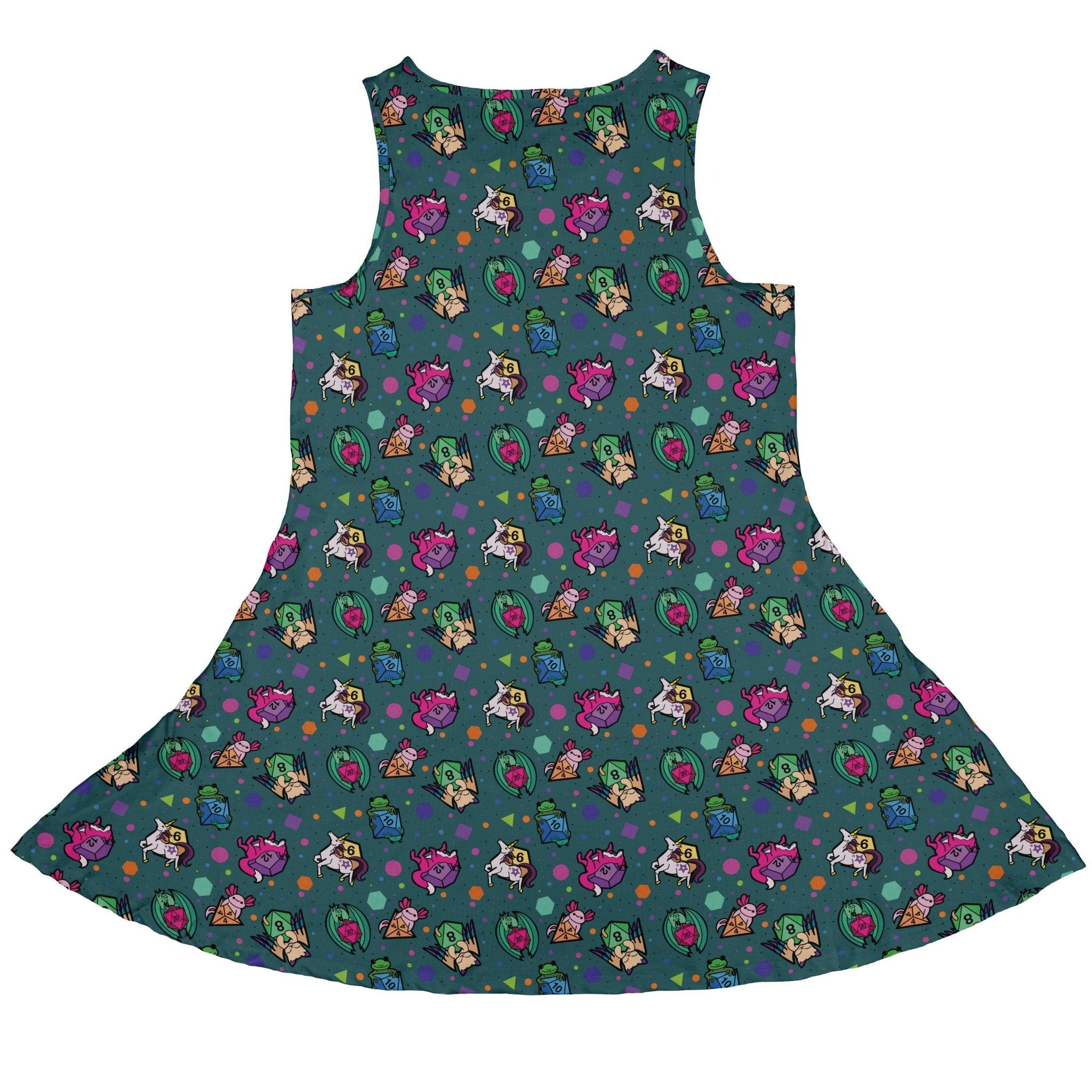 Level up your look with the Dnd Dice Critters Teal Dress, splashed in a rich teal ground where colorful critters mingle with crisp d20 icons. The print feels playful yet refined, making it just as at home at brunch as at your next campaign. A soft, substantial feel and real side pockets keep it practical for everyday quests. Designed by Rose Khan, every twirl backs independent art with unapologetically geeky style.
