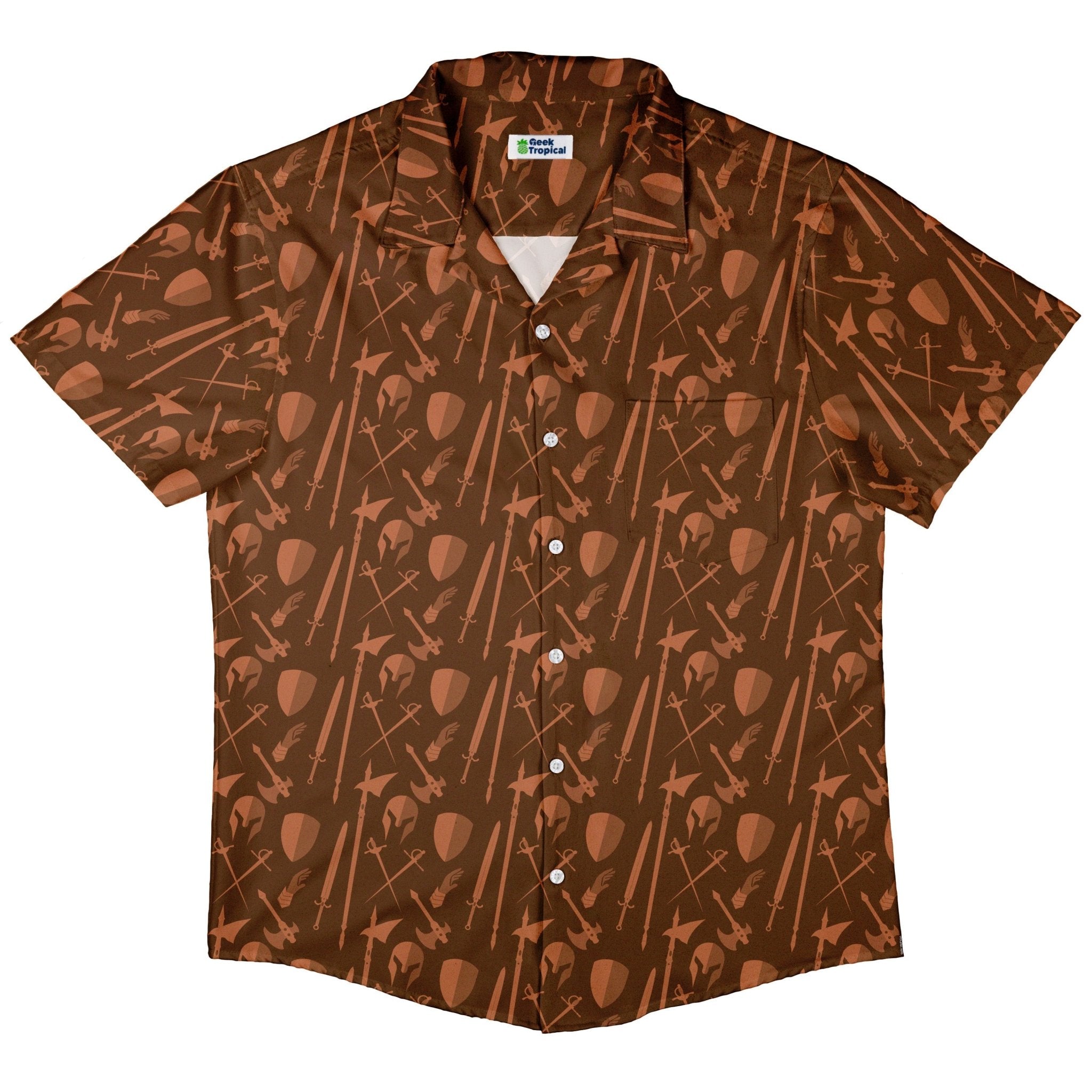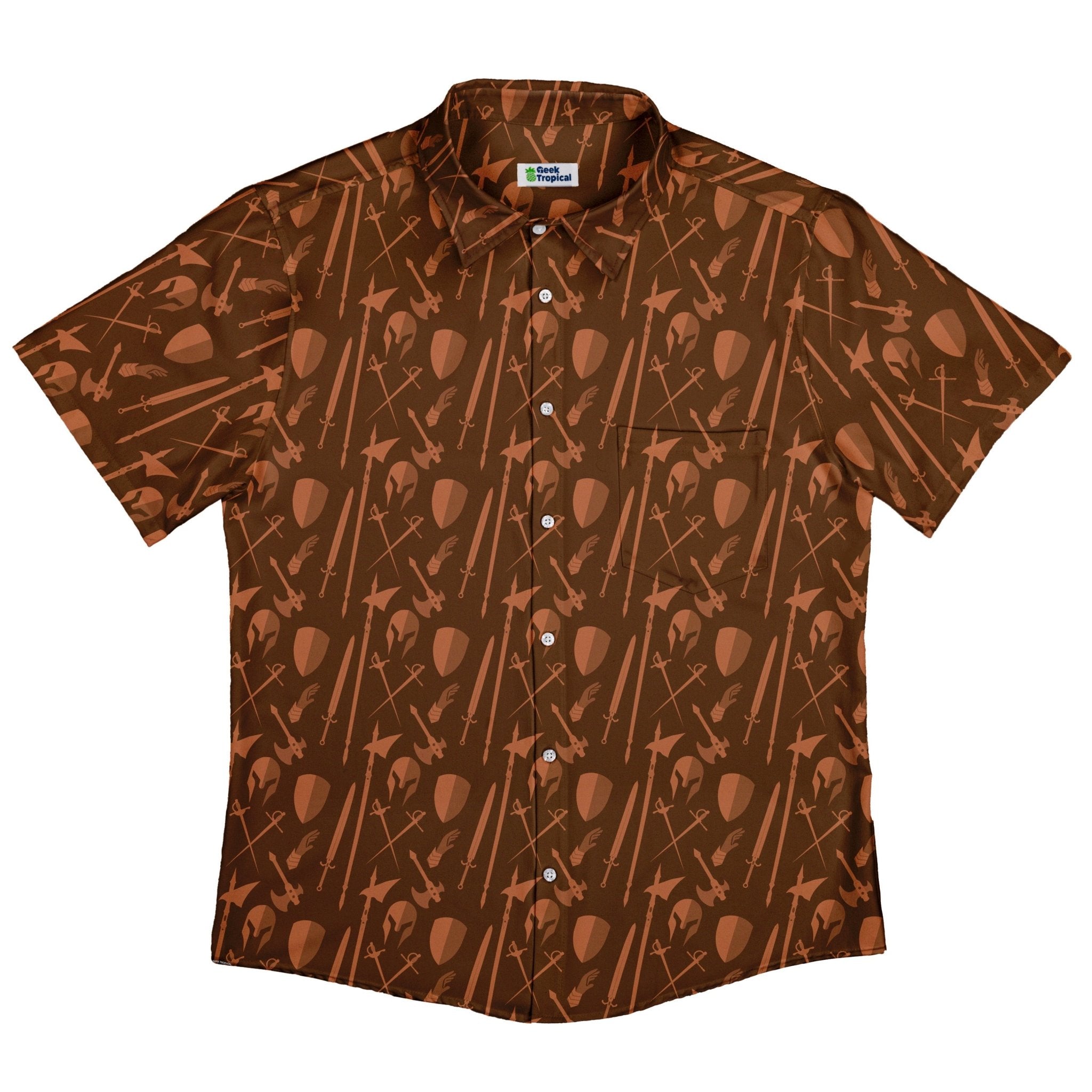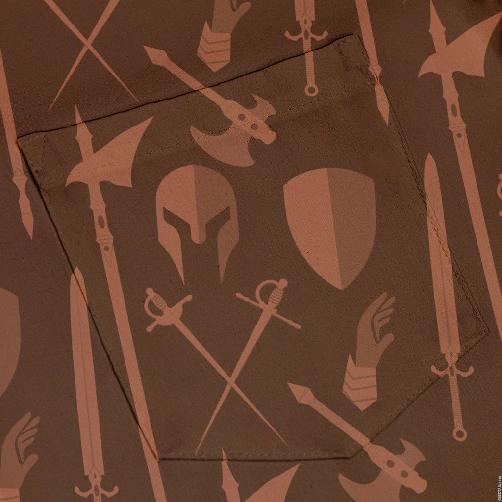 The Dnd Fighter Class Button Up Shirt brings battle-ready swagger to your everyday party. Heather Davenport turns the fighter’s toolkit into a sharp, all-over pattern—think crossed blades, sturdy shields, and polished armor accents—set against a clean, high-contrast backdrop. Light, easy, and confident for conventions or casual Fridays, with licensed art that directly supports the artist.