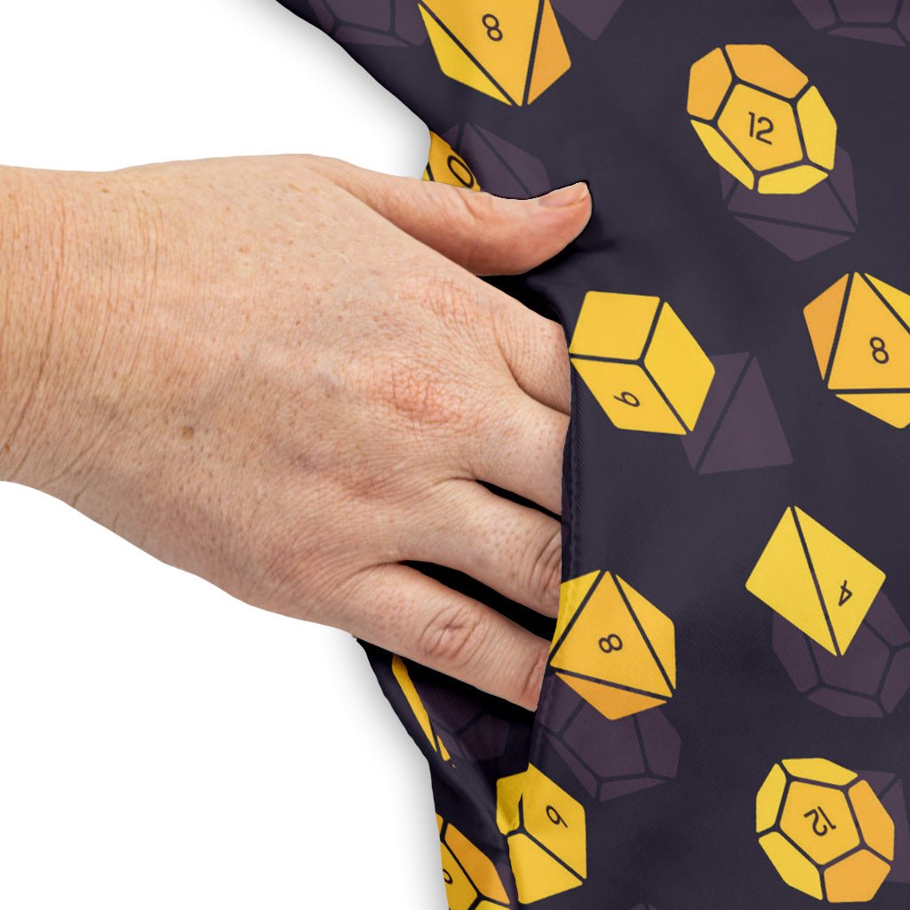 Meet the Dnd High Roller Gold Dice Dress—your crit-worthy uniform for on- or off-table adventures. An allover array of gold dice delivers a crisp, simple pattern that reads polished without trying. The fabric feels soft and breathable with confident, no-peek coverage, and the side pockets are legit—big enough for your essentials (yes, even a game controller). Artist-backed design ready to roll from coffee runs to campaign night.
