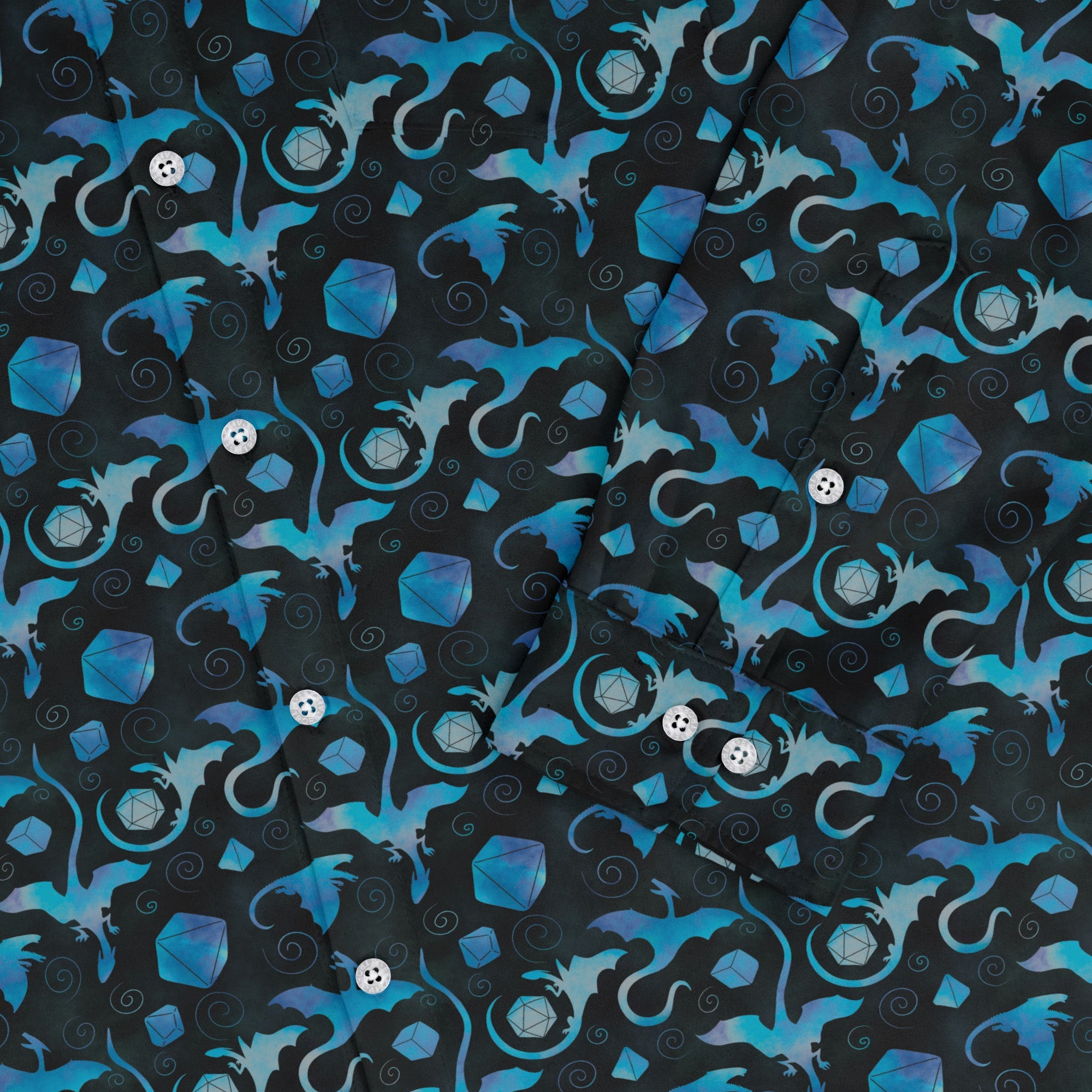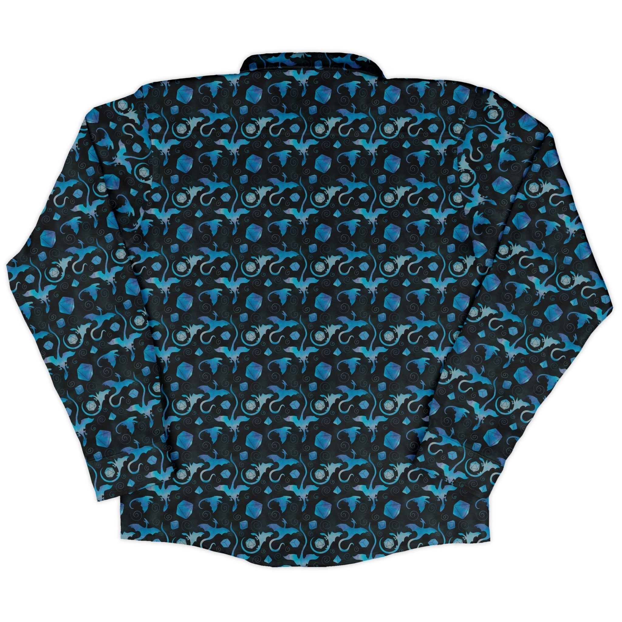 Dnd Mystic Blue Dragons Long Sleeve Button Up Shirt
