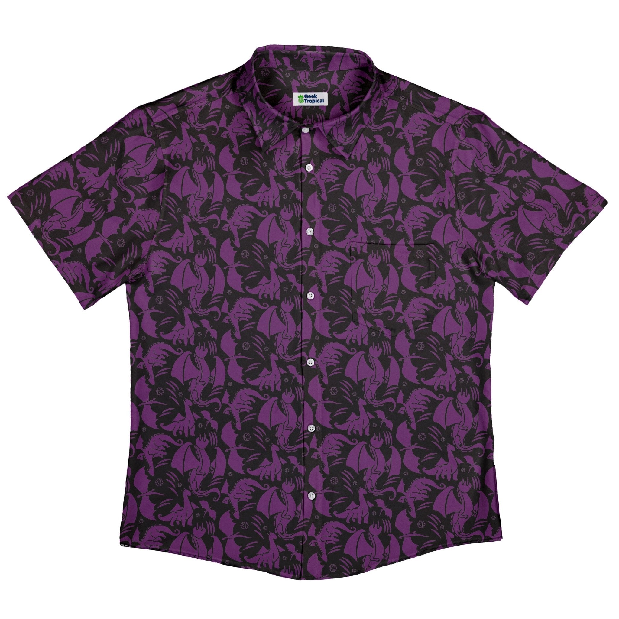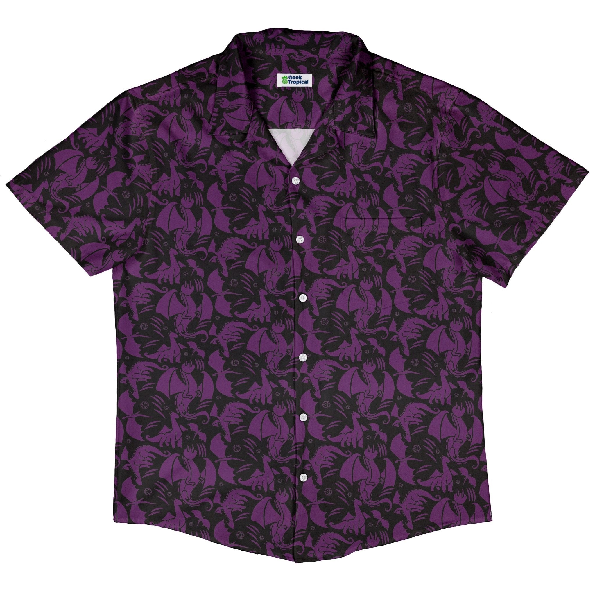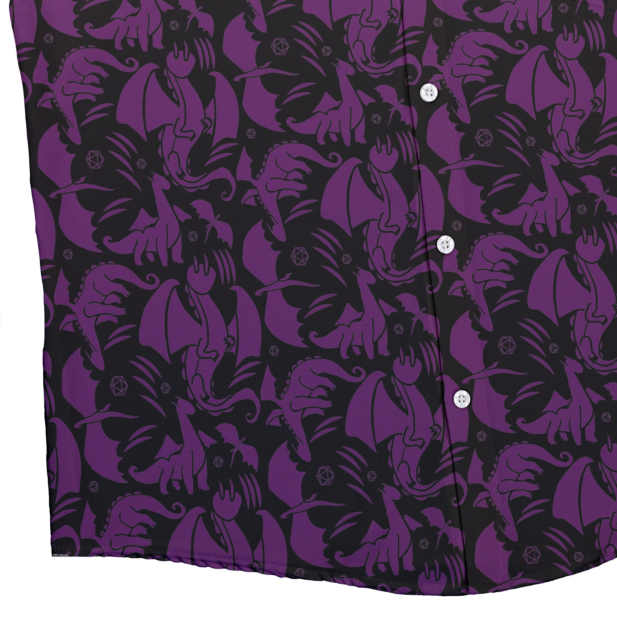 The Dnd Purple Dragons Black Button Up Shirt turns your wardrobe into a lair of cool. On a deep black base, vivid purple dragon motifs coil and glide in a repeating pattern, striking and unmistakably geek-chic. Designed by Heather Davenport, this artist-backed piece pairs everyday ease with tabletop swagger. Dress it up for game night or let it breathe at the beach—the print does the talking while you roll the crits in style.