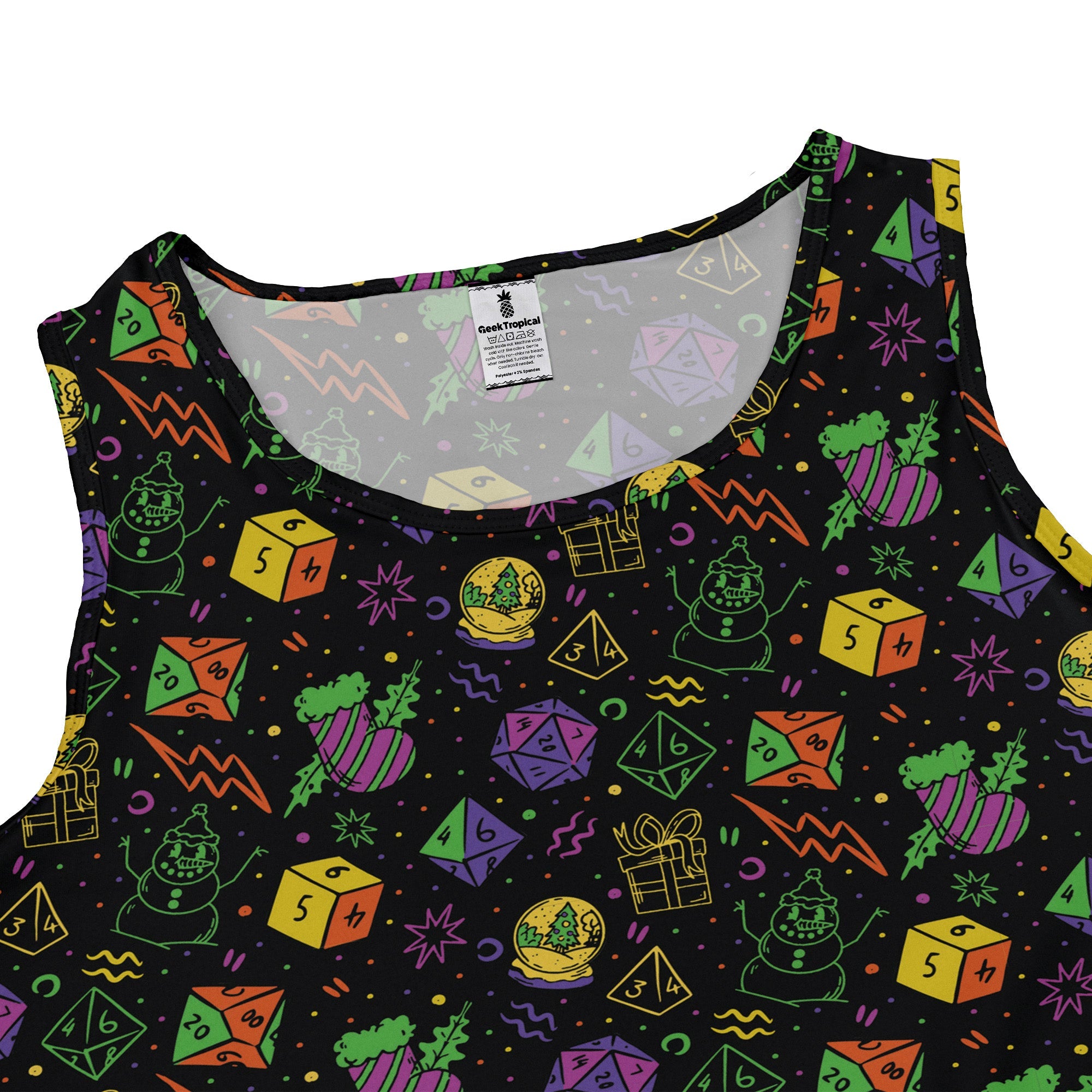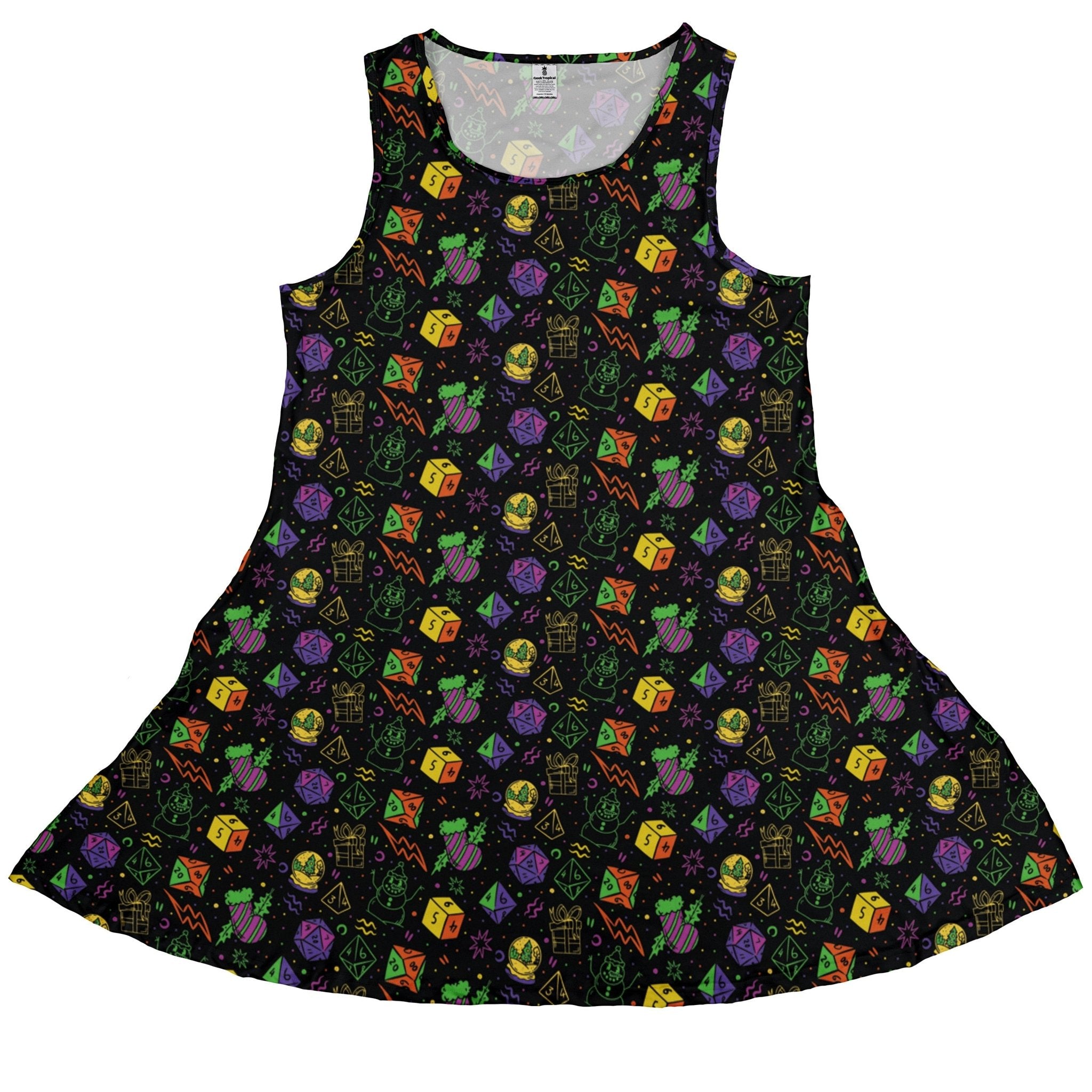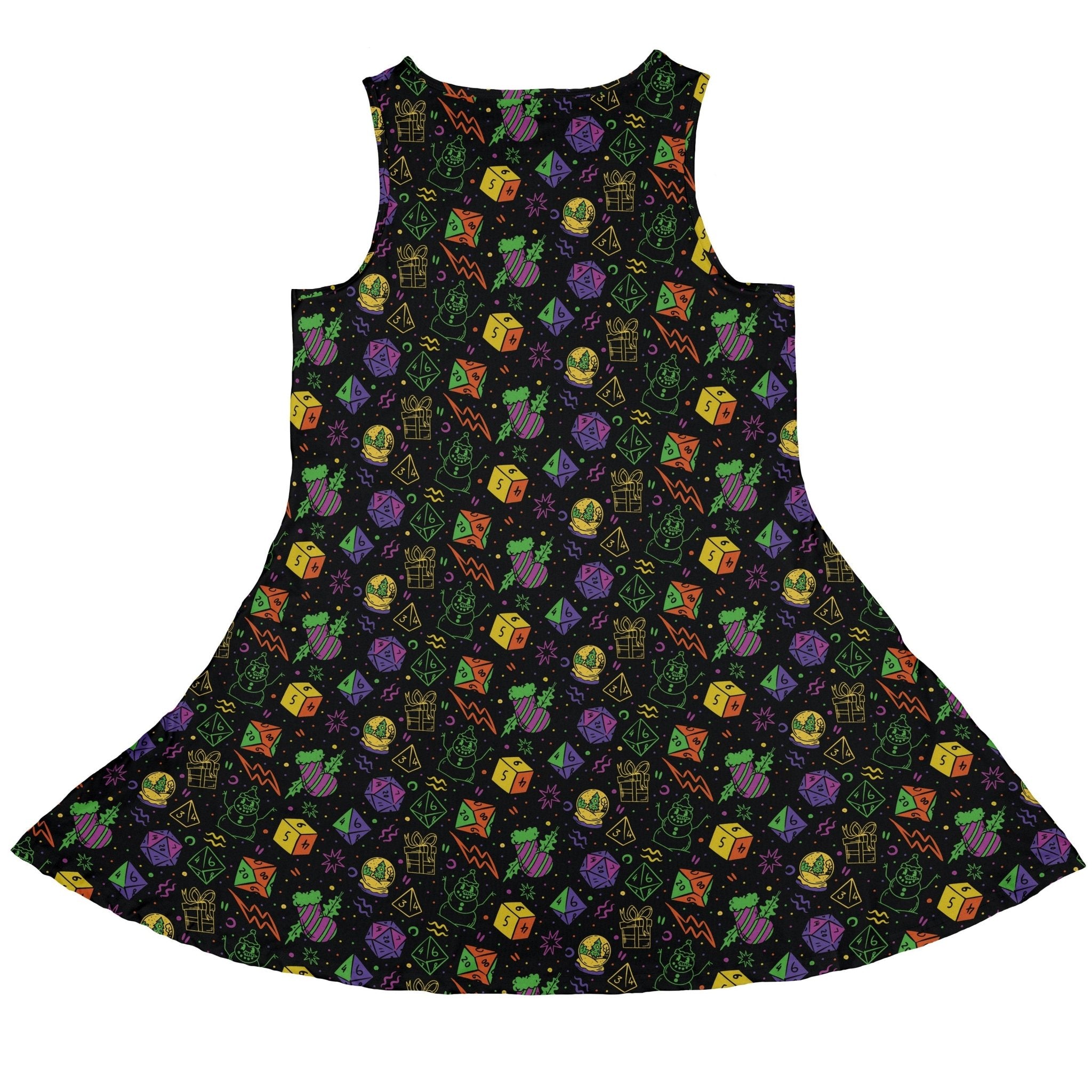 The Dnd RPG Christmas Black Dress turns cozy campaign vibes into holiday style. A deep black canvas showcases an all-over Christmas-meets-RPG pattern for a look that reads merry, nerdy, and effortlessly cool. Soft stretch and an easy drape keep comfort high, with real side pockets for your gear (yes, even a controller). Full-coverage confidence, party-ready polish. Artist-backed design that supports the creators you love.