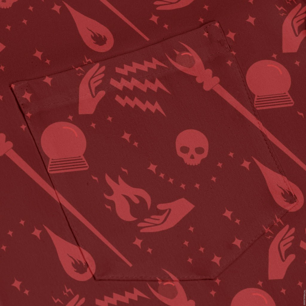 Conjure everyday charisma with the Dnd Sorcerer Class Long Sleeve Button Up Shirt, designed by Heather Davenport. An all-over array of arcane sigils and spellwork swirls across the fabric, with the print flowing cleanly over the placket and pocket for a seamless look. Soft, breathable, and easy to wear from office to game night, it features a crisp collar and buttoned cuffs. Printed with eco-conscious inks, and every purchase supports licensed artists.