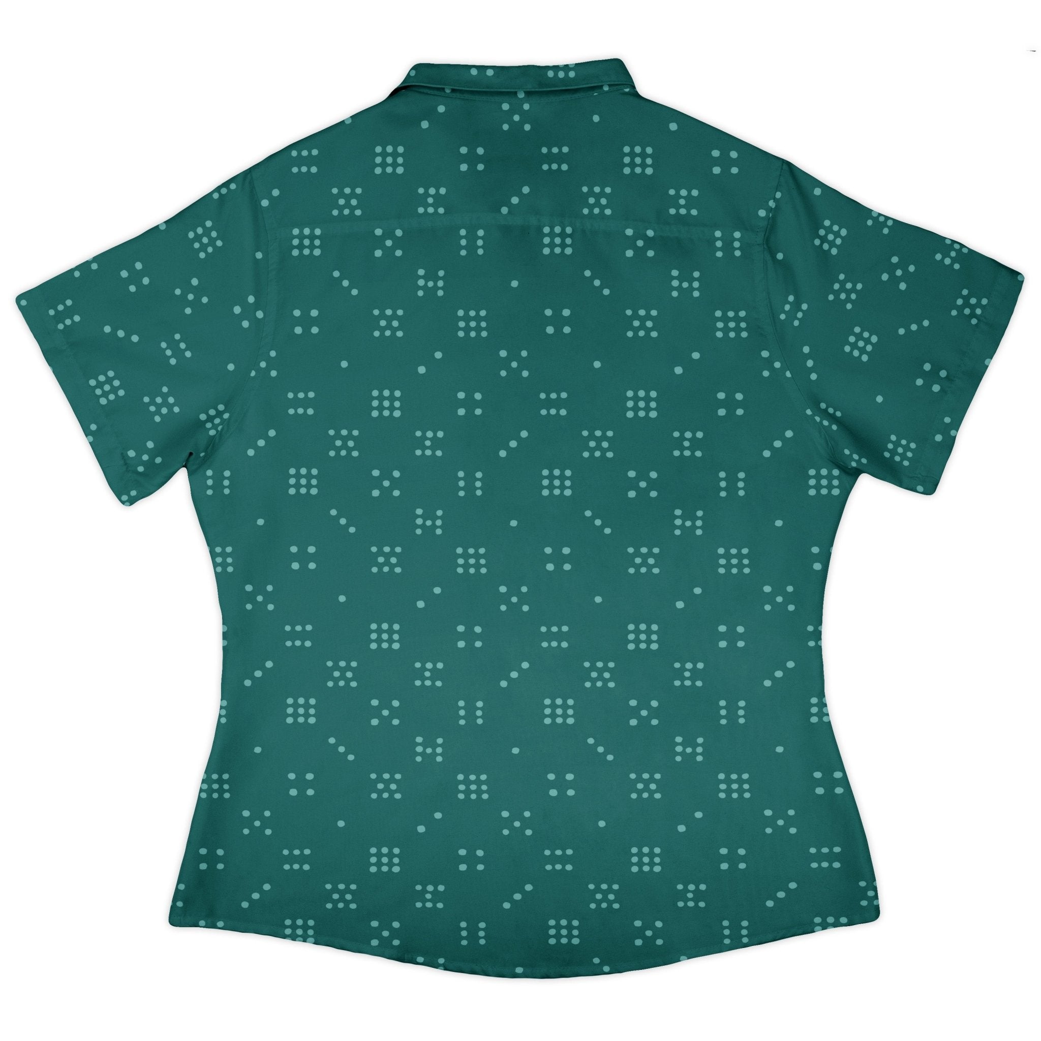 The Dominos Minimalist Curvy Button Up Shirt pairs brainy style with easy polish. Designed by Zirkus Design, it showcases classic domino pips in a clean, understated repeat—subtle enough for the office, geeky enough for game night. A gently contoured fit flatters your shape, and the print aligns across the front and pocket for a seamless look. Printed with eco-conscious inks and finished with signature buttons.