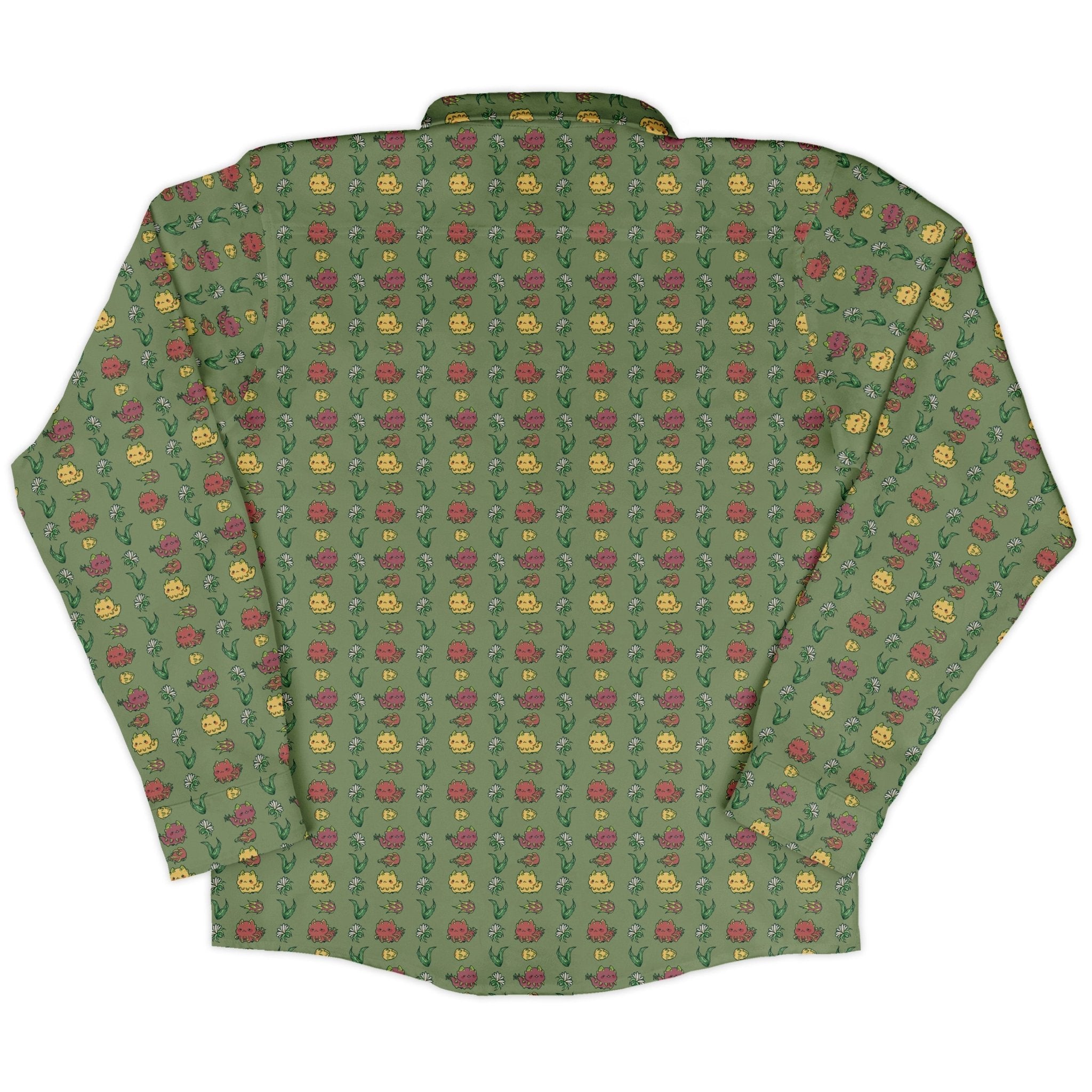 Dragon Fruit Green Long Sleeve Button Up Shirt