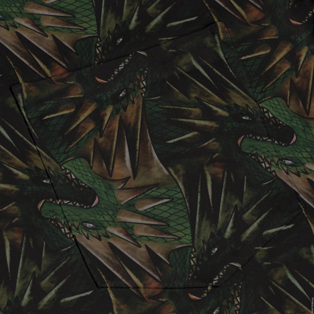 Dragon Weaving Inferno Forest Long Sleeve Button Up Shirt turns your wardrobe into a mythic blaze. A sinuous dragon threads through a burning woodland, with ember reds and smoky blacks fading into luminous highlights. The artwork lines up across the front and pocket for a clean, continuous scene. Designed by Nathan and printed with eco-conscious inks, it delivers boss-level fantasy for office days, date nights, and Dnd sessions.