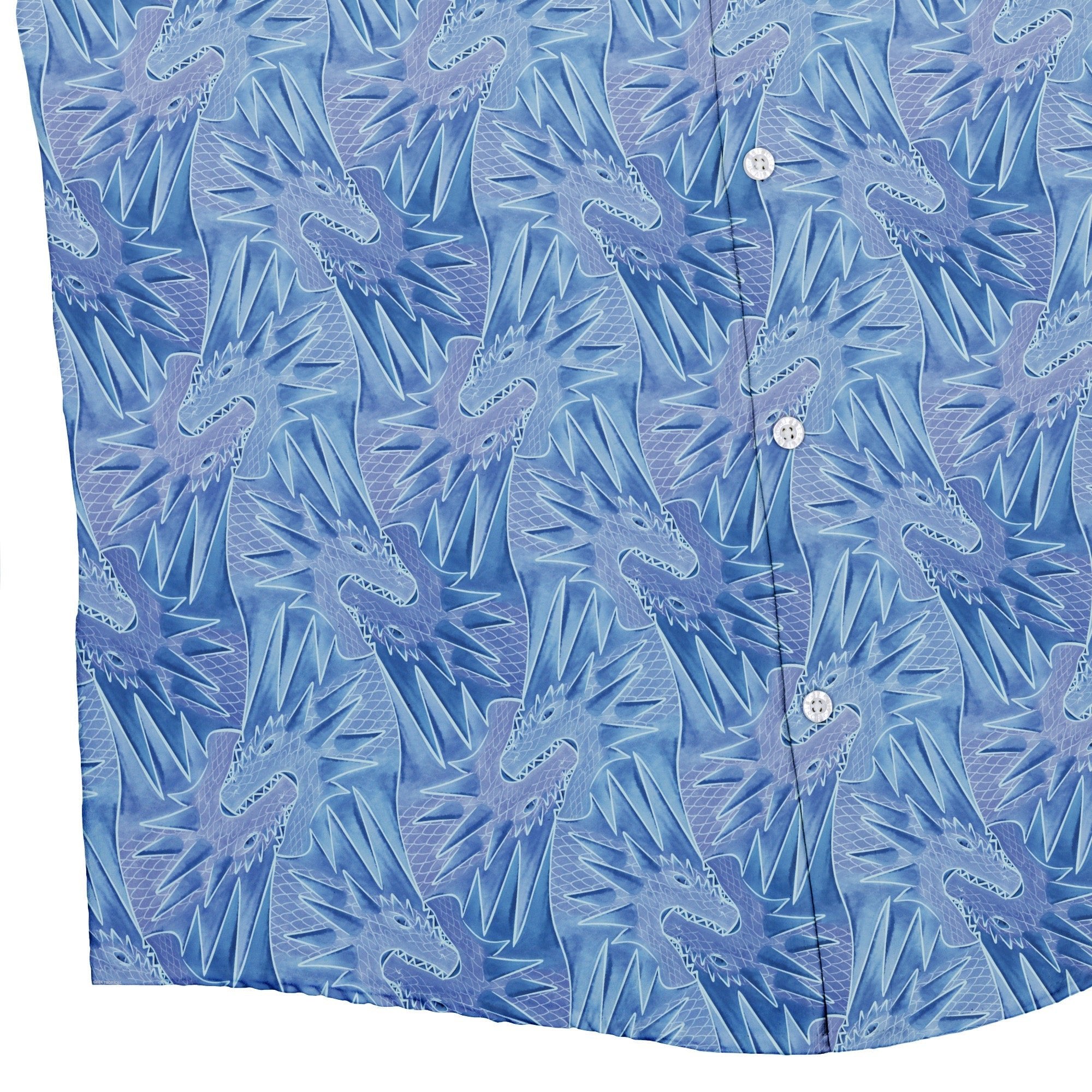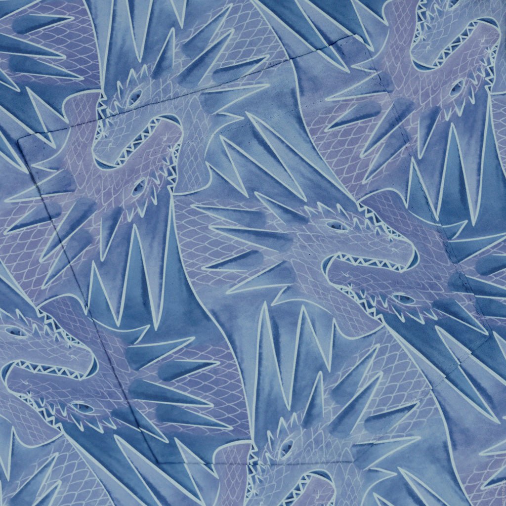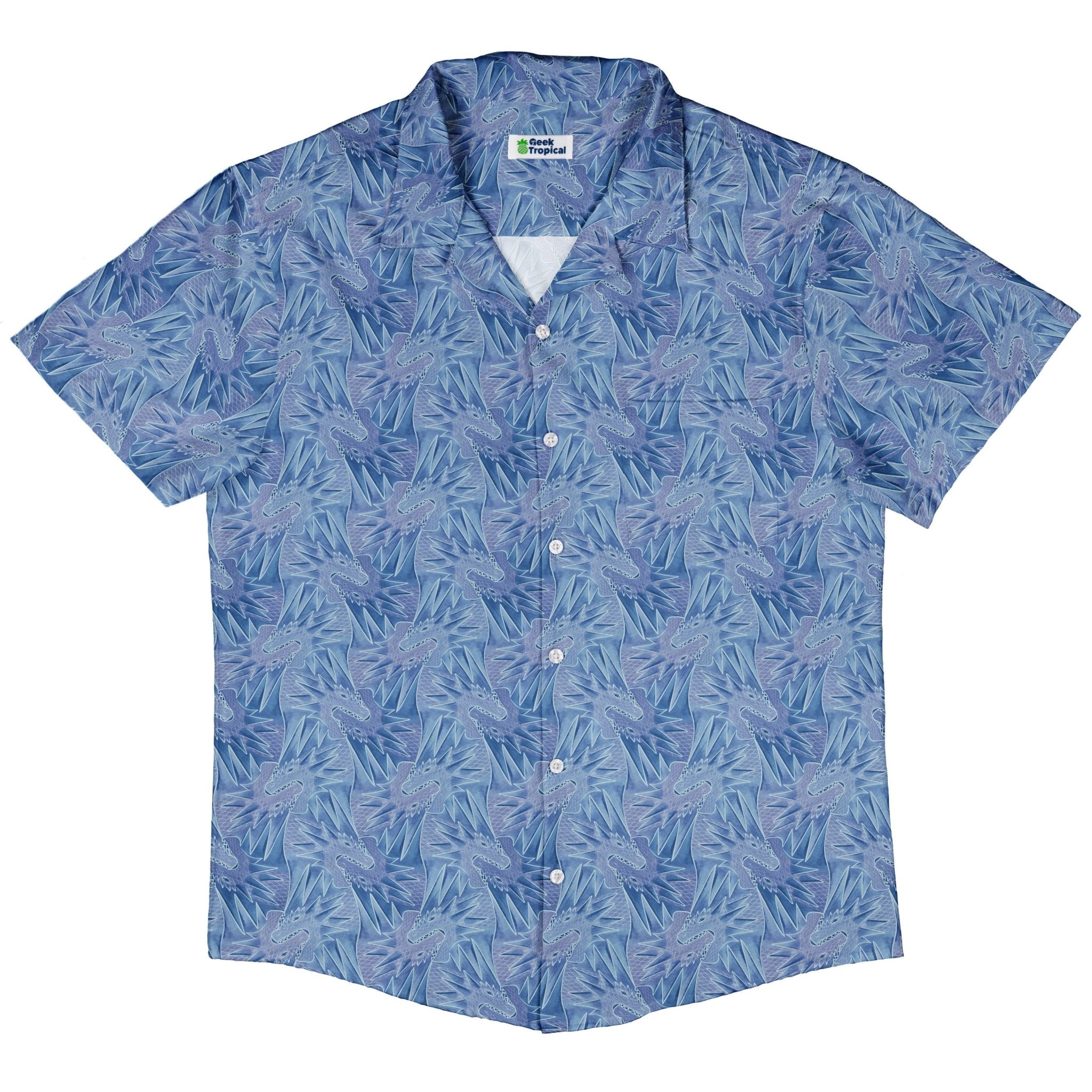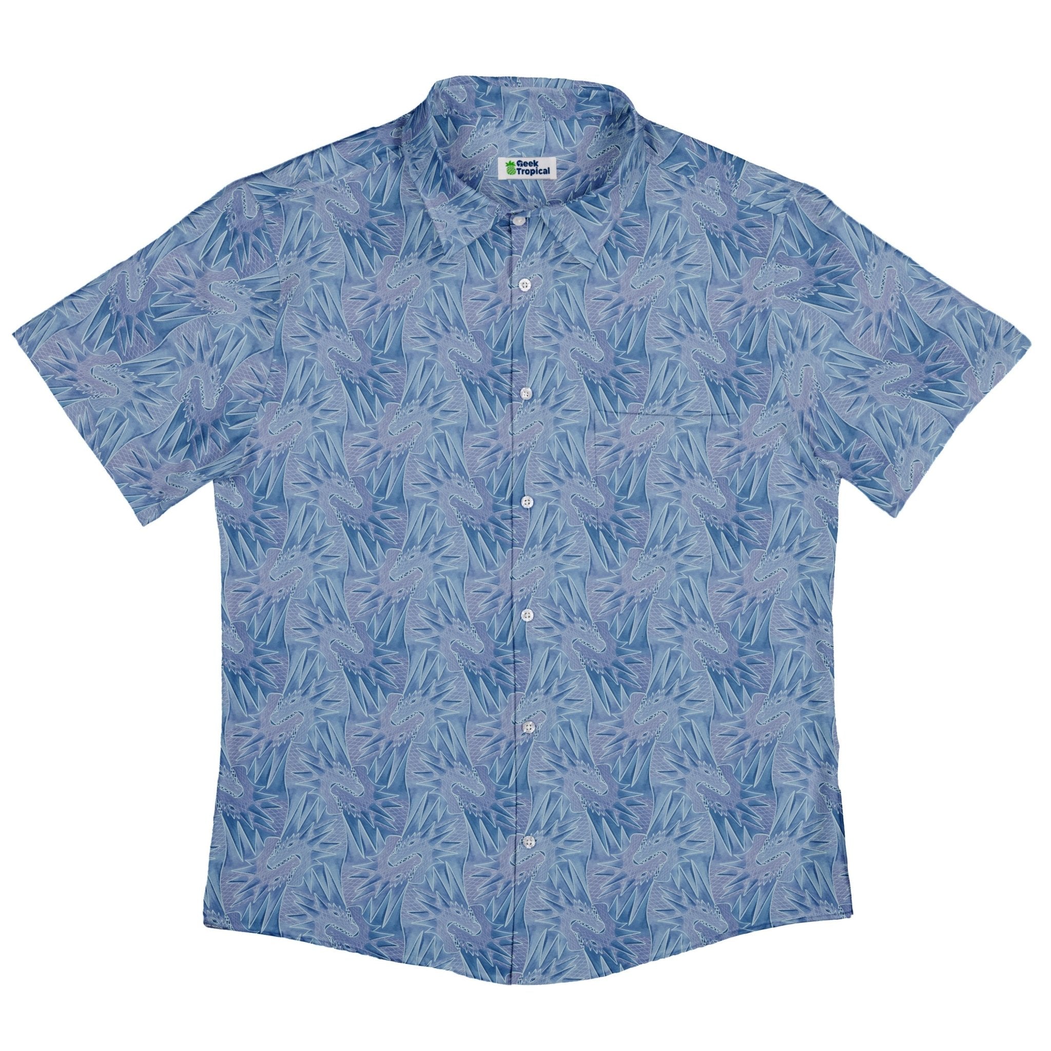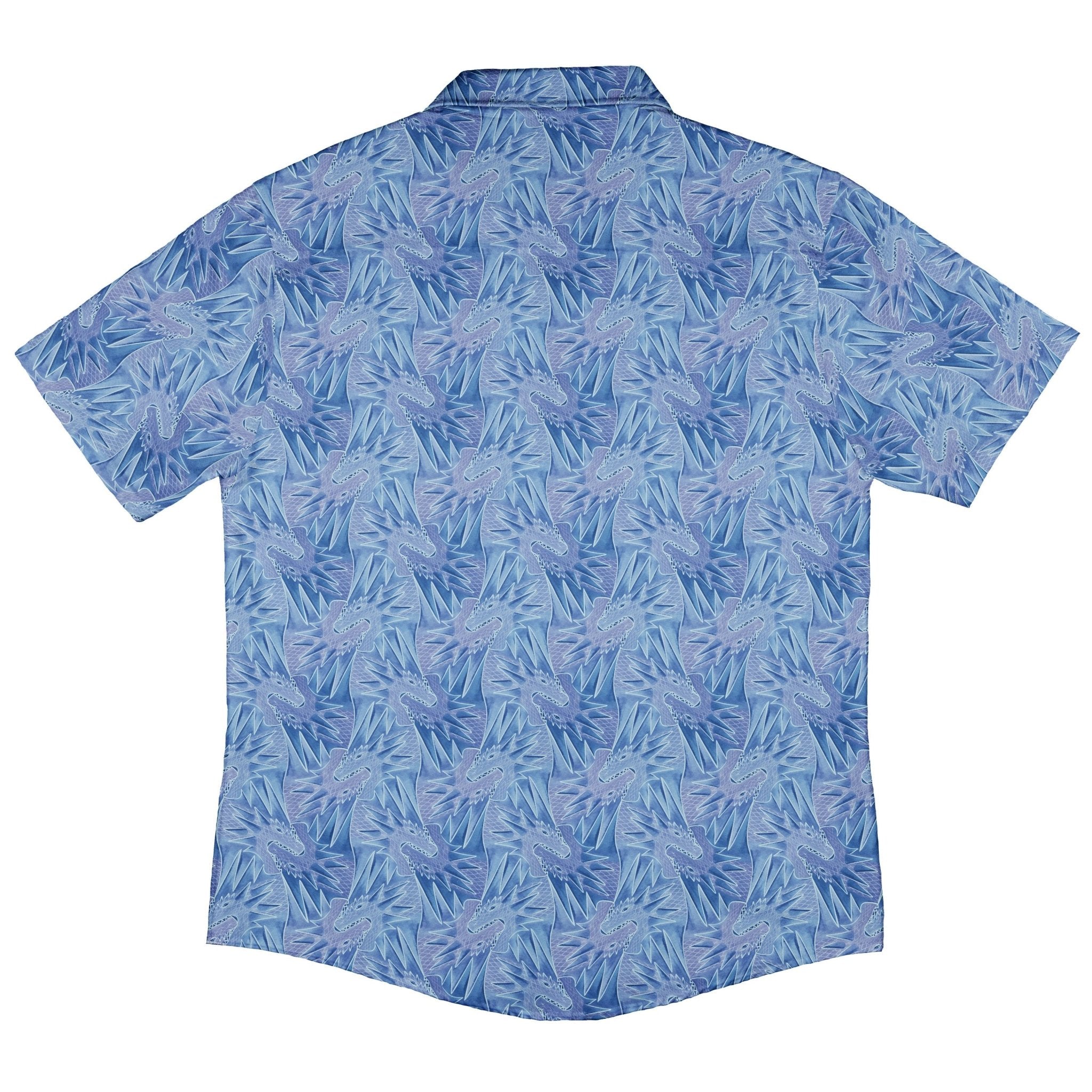 The Dragon Weaving Inferno Frost Button Up Shirt pairs mythic style with everyday ease. A sinuous dragon threads between arctic blues and molten reds, braiding frost-kissed wisps with tongues of flame across a bold, all-over print. Crisp linework shows off shimmering scales and curling plumes for a look that reads epic up close and striking from across the room. Designed by Nathan and printed with eco-conscious inks, it's your stealth-nerd power move from con floor to casual Friday.