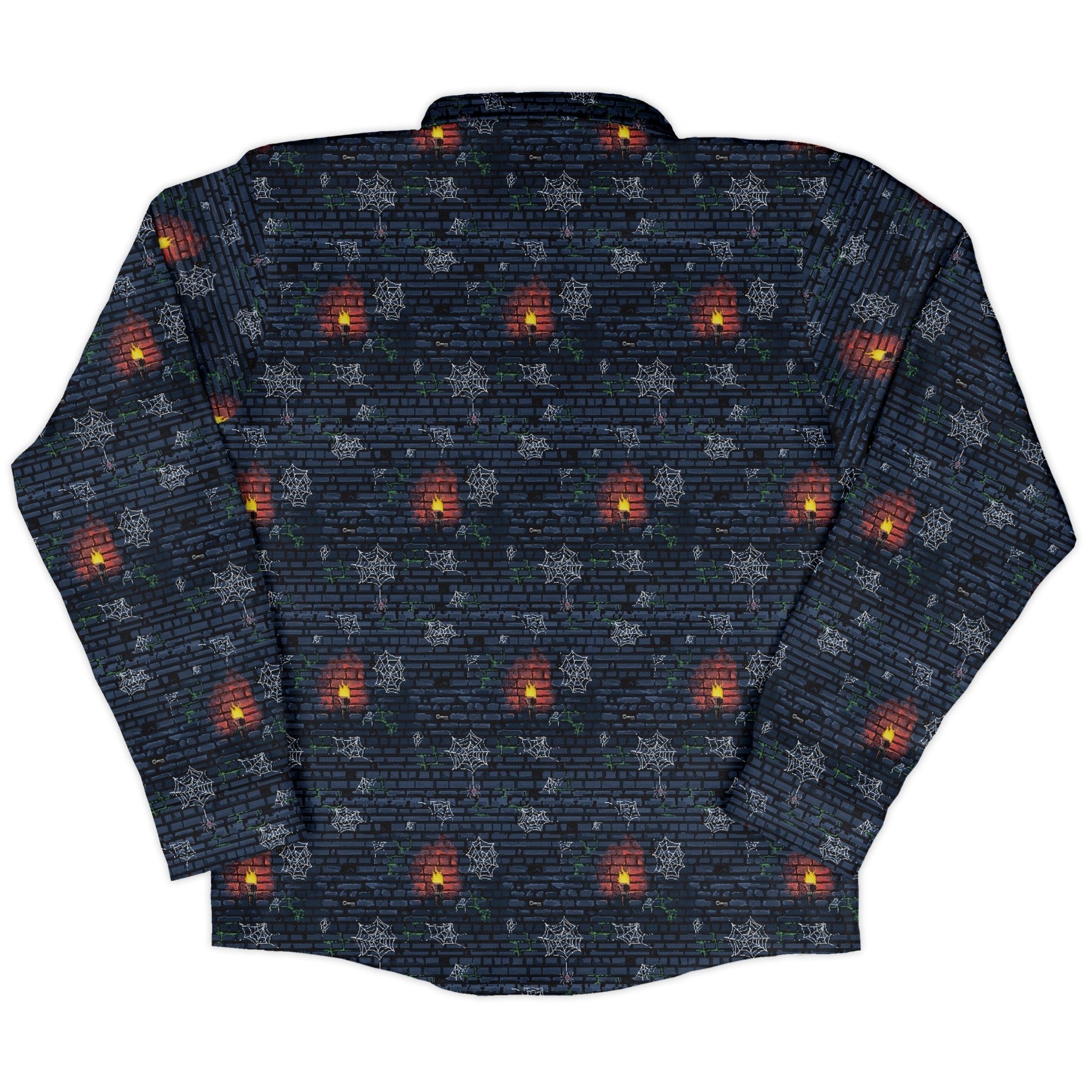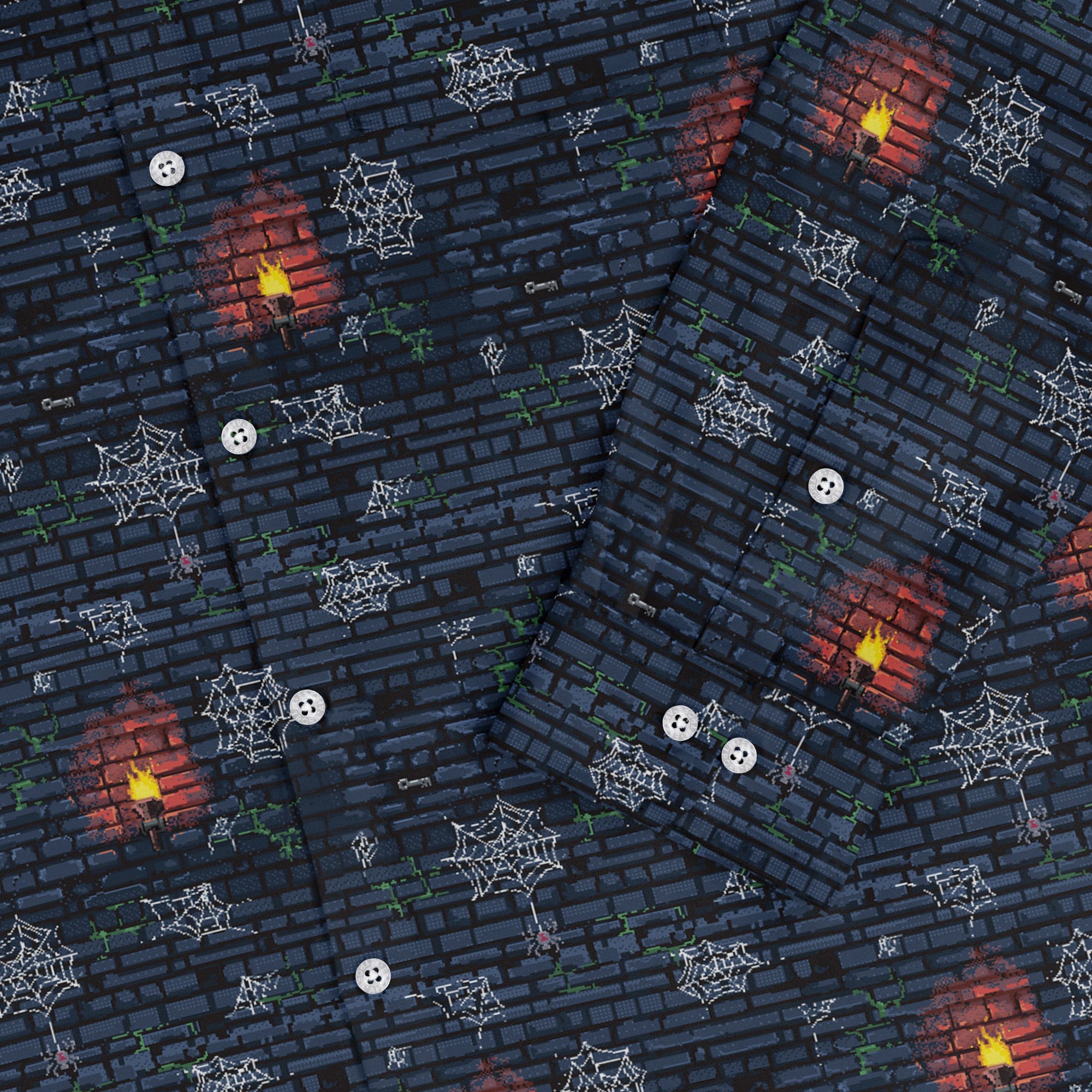 Level up your wardrobe with the Dungeon Wall Long Sleeve Button Up Shirt, a subtle nod to late‑night crawls. Designed by Claire Murphy, the print stacks hand‑drawn stone blocks in charcoal and slate, with mortar lines and hairline cracks for an authentically rugged dungeon vibe. The pocket pattern lines up for a seamless look, and the soft, breathable feel keeps you quest‑ready all day. Artist‑backed and printed with eco‑conscious inks.