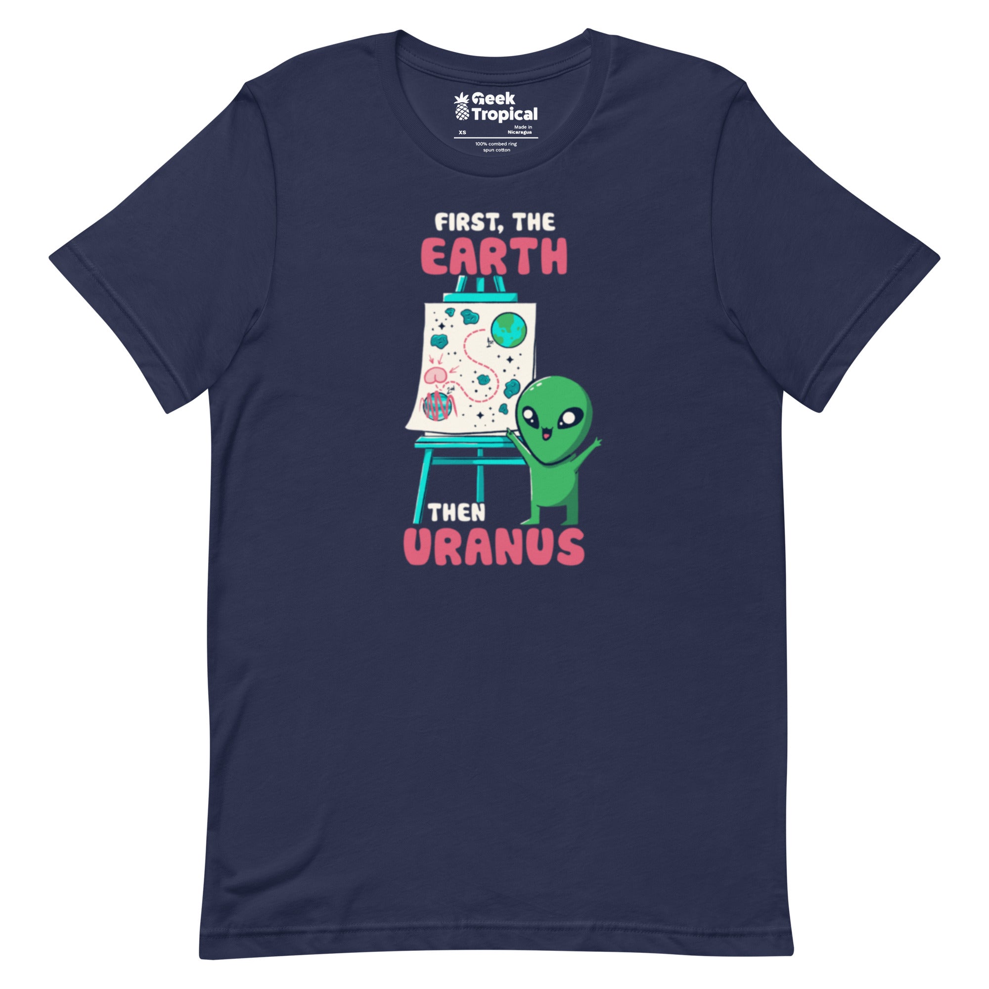 Meet the Earth Then Uranus T-Shirt: space-class humor for anyone who enjoys accurate planetary order with a wink. The graphic leans into the gag with a clean, science-forward design that spotlights the two headline worlds and lets the joke land without shouting. Printed with eco-conscious inks, it’s an everyday favorite you can wear from lab to lunch. Artist-backed and unapologetically nerdy—perfect for stargazers and pun appreciators alike.