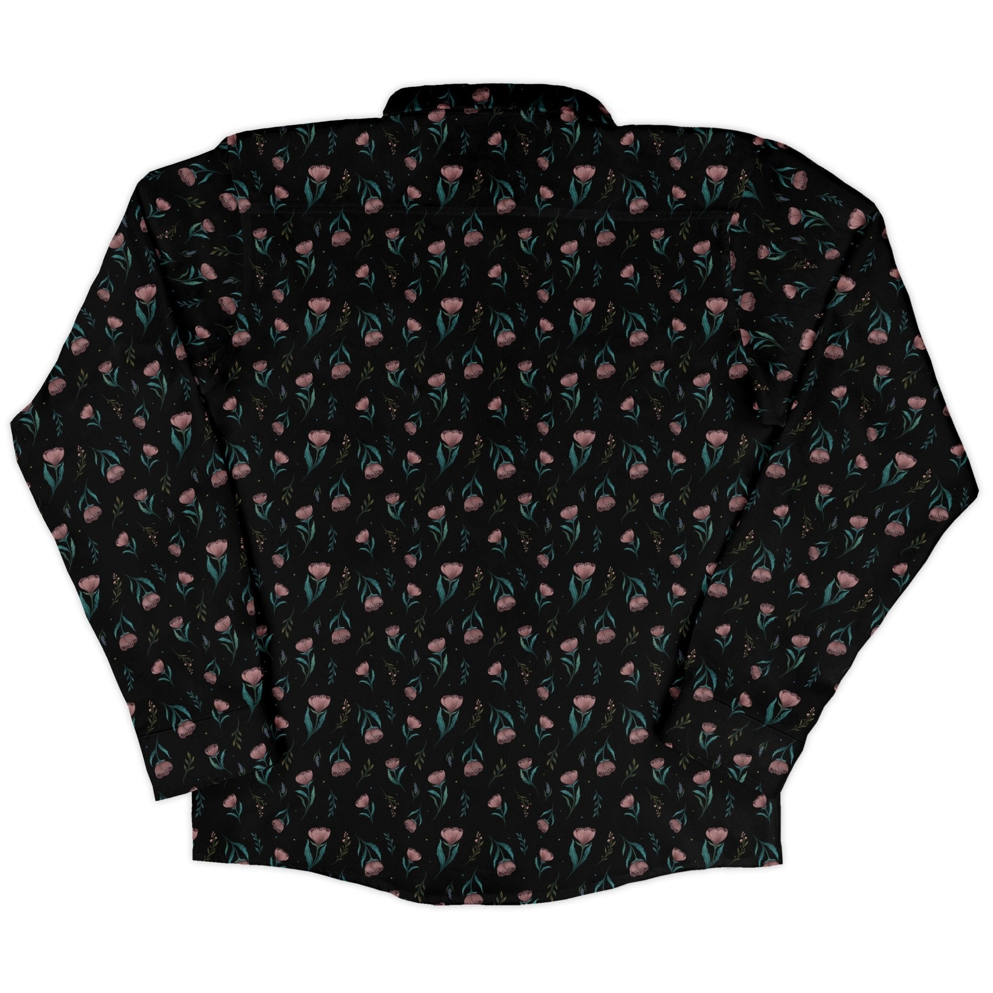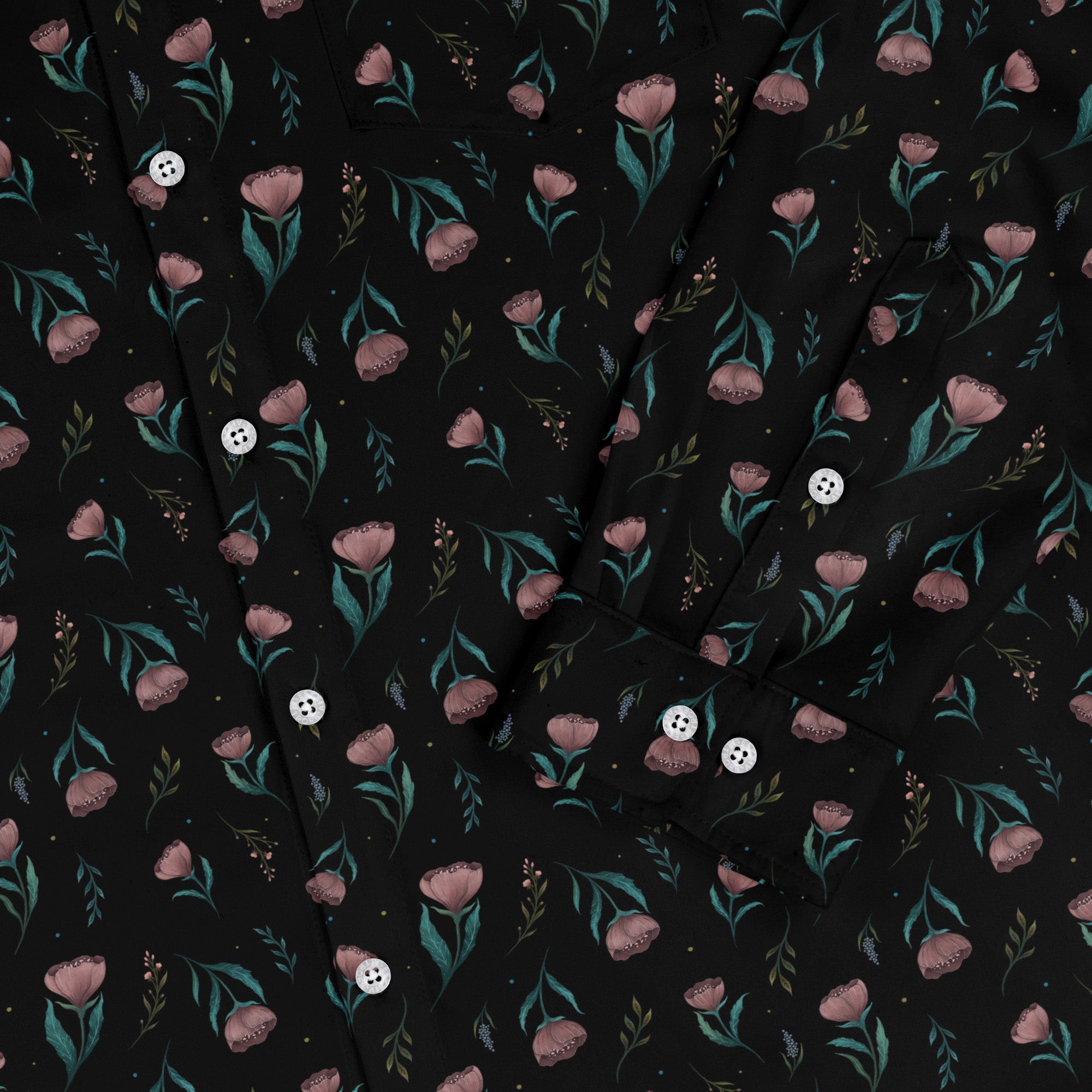 Meet the Episodic Blooms Long Sleeve Button Up Shirt, a botanical love letter for design nerds. Designed by Episodic, its garden of hand-drawn blossoms and leafy stems flows across the placket and pocket for a clean, uninterrupted look. The silhouette hits that sweet spot between laid-back and polished—ready for office hours, gallery strolls, or game night. Soft, breathable, and printed with eco‑conscious inks, it’s art you can wear that supports the artist behind it.