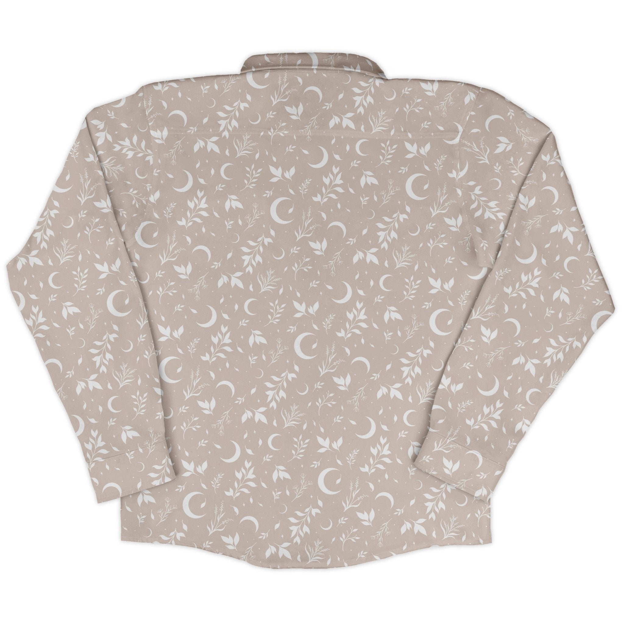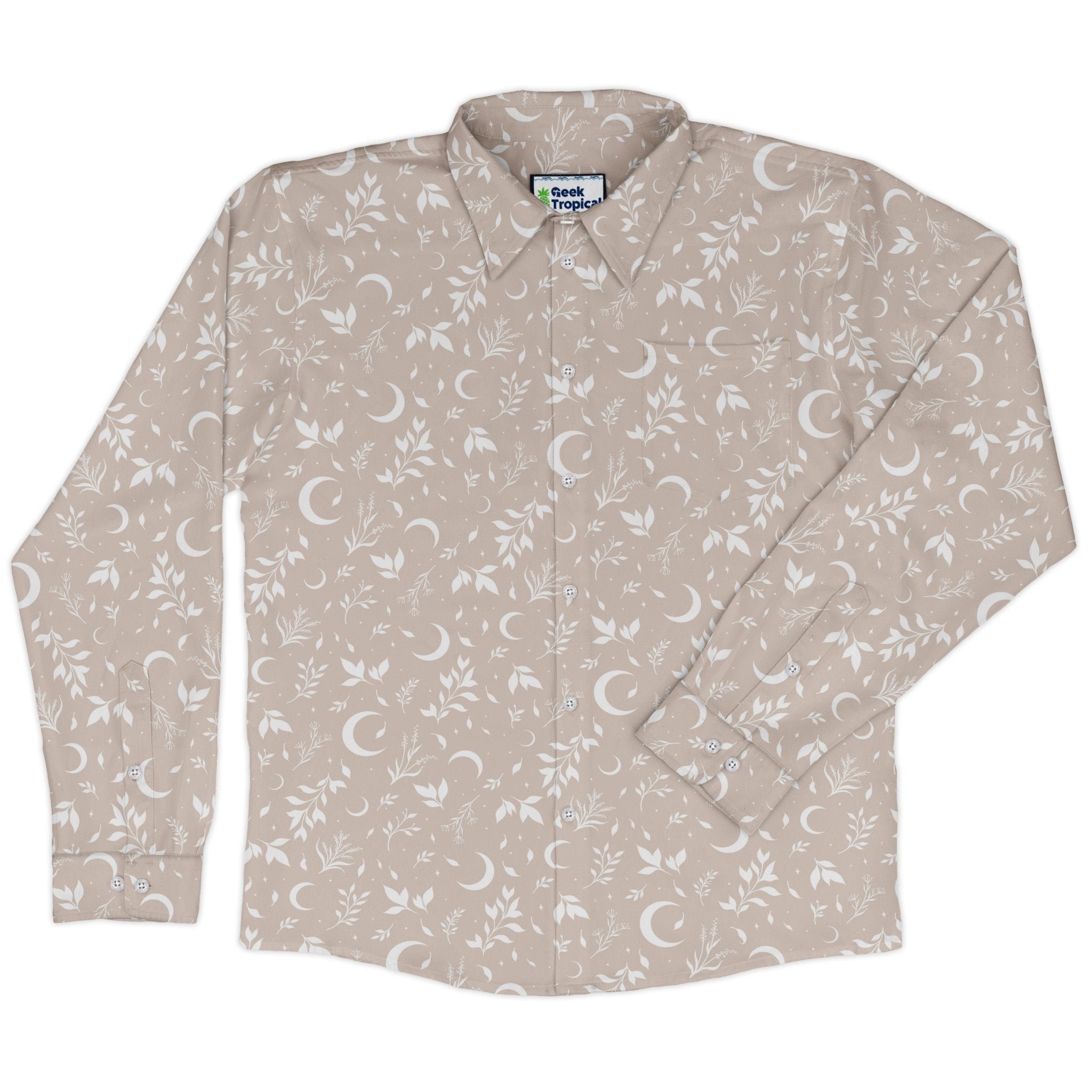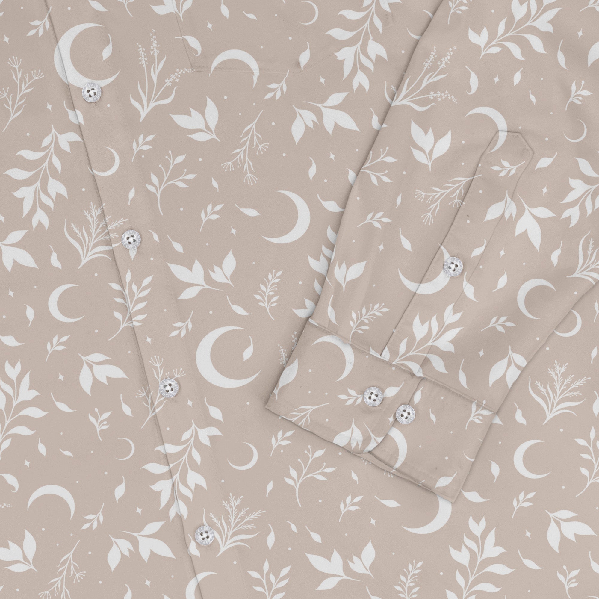 Episodic crescent moon garden biege Long Sleeve Button Up Shirt