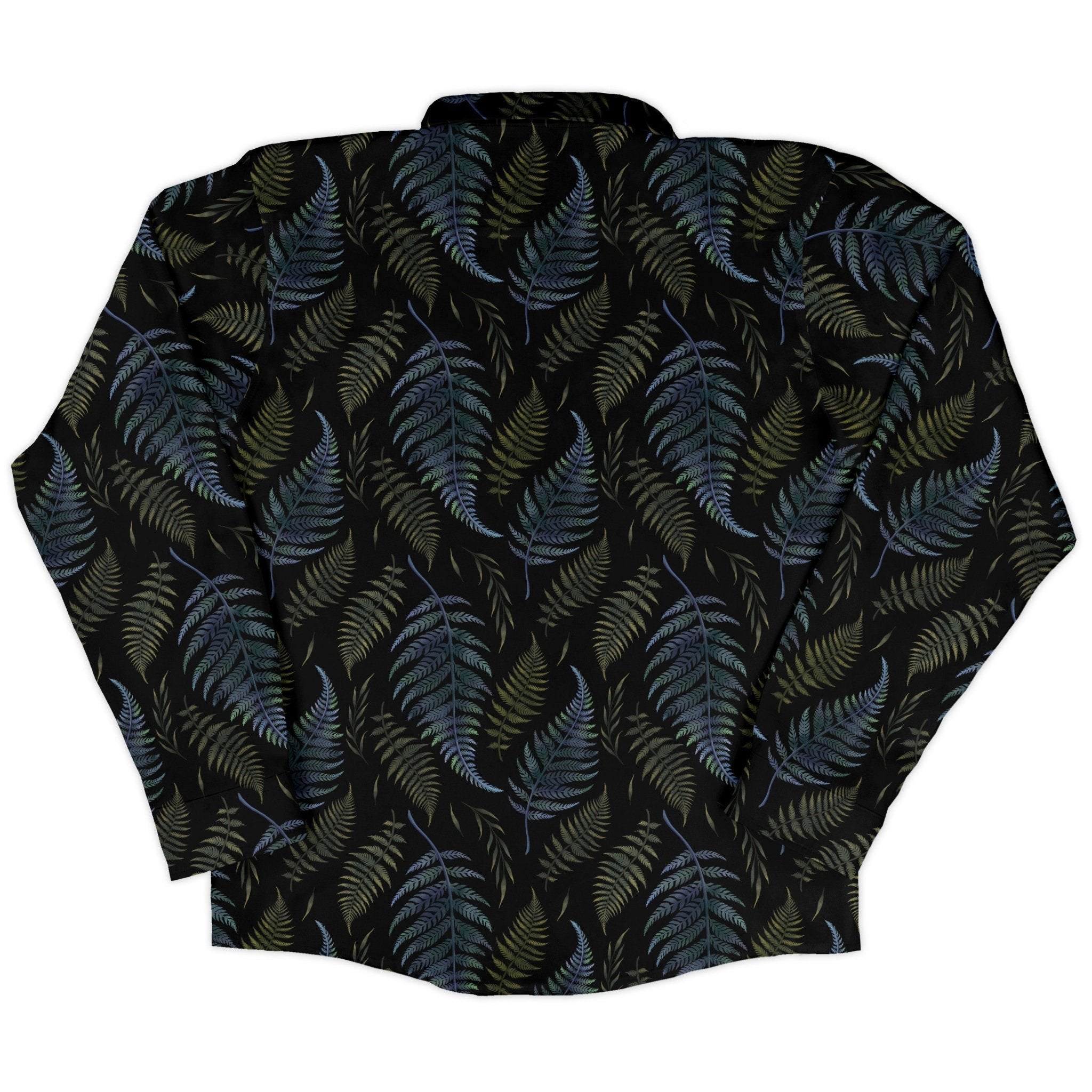 Meet the Episodic Ferns Long Sleeve Button Up Shirt, a botanical ode for curious minds and closet explorers. Intricate fern fronds ripple in a seamless print that lines up across the placket and chest pocket, designed by Episodic. Soft, featherlight, and easy all day, with an easygoing fit, custom buttons, and sleeves you can fine-tune. Printed with eco-conscious inks and artist-backed, it’s the go-to for plant geeks who prefer their style scientifically chill.
