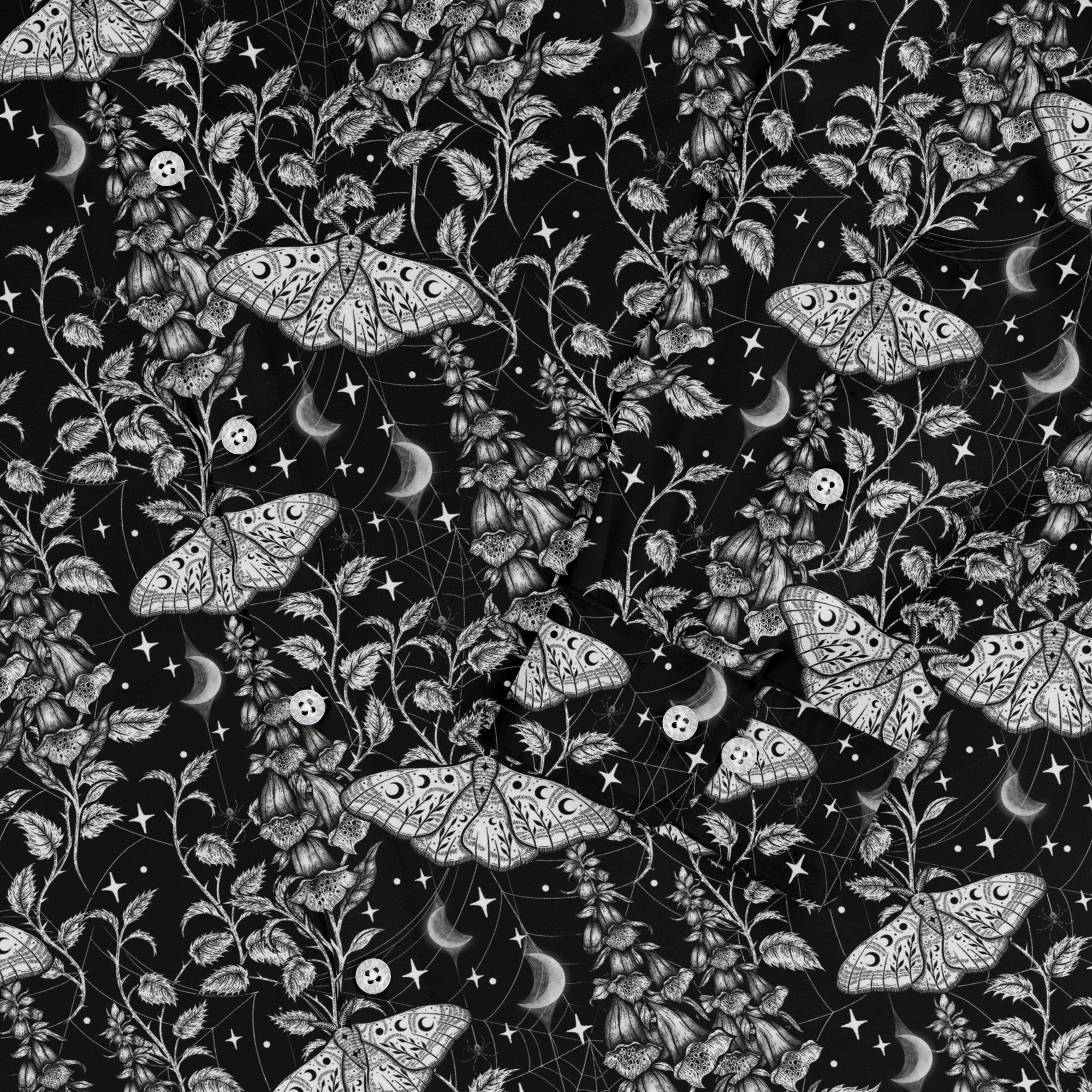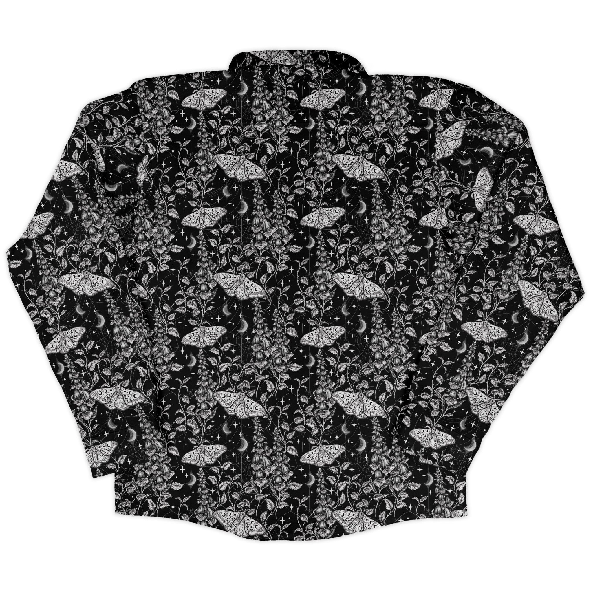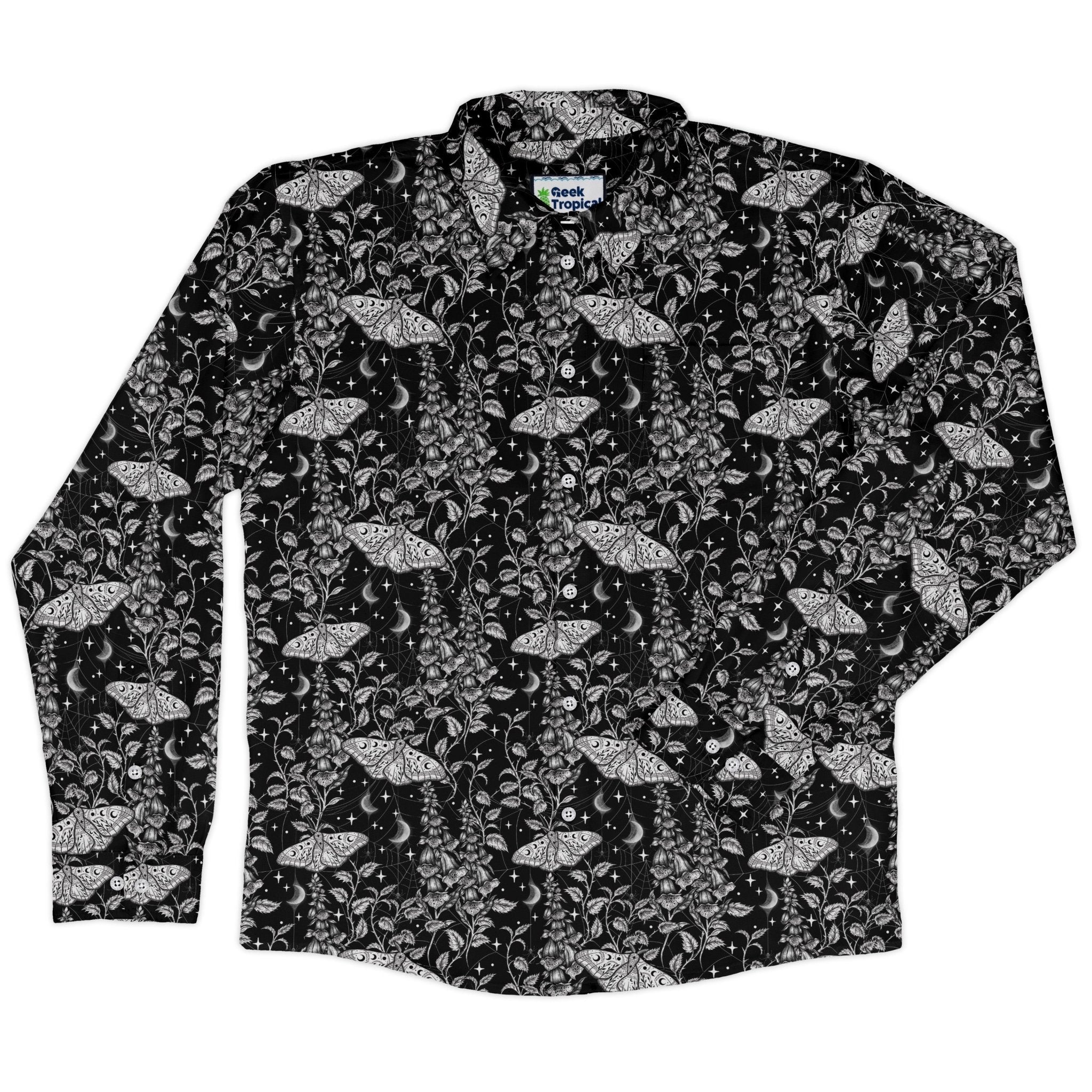 Episodic Moth Black White Night Long Sleeve Button Up Shirt