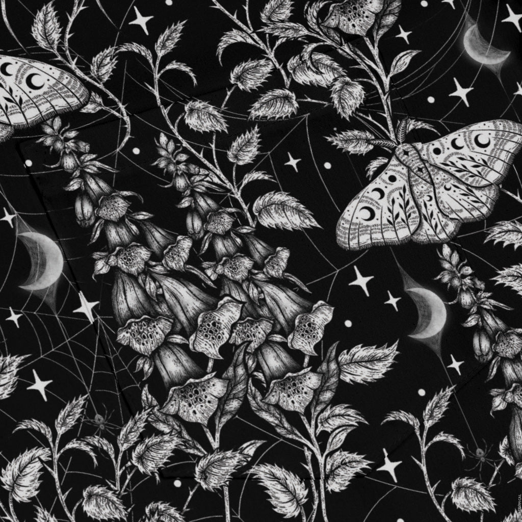 Meet the Episodic Moth Black White Night Long Sleeve Button Up Shirt, a monochrome ode to nocturnal curiosity. Illustrated moths drift across a deep black ground, with fine botanical linework giving it a field‑guide vibe. The artwork aligns cleanly across the placket and pocket for a seamless flow. Designed by Episodic and printed with eco‑conscious inks, this regulaxed, geek‑chic layer moves from gallery nights to game tables while supporting the artist behind it.