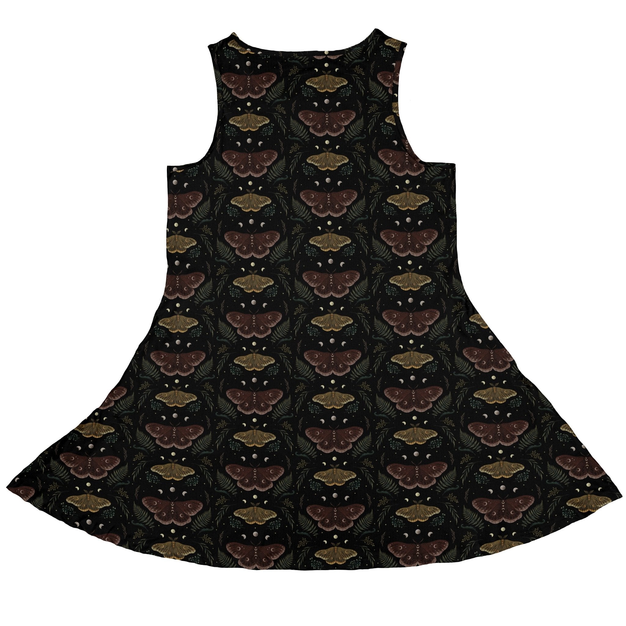 The Episodic Moth Fall Dress brings museum-specimen chic to your everyday. Illustrated moths drift among fine botanical stems, arranged in a tidy repeat that reads smart, not fussy. Designed by Episodic, it moves softly while keeping a clean, polished line—perfect for coffee runs, con halls, and twilight lore hunts. Artist-backed style that lets your inner naturalist take the lead.