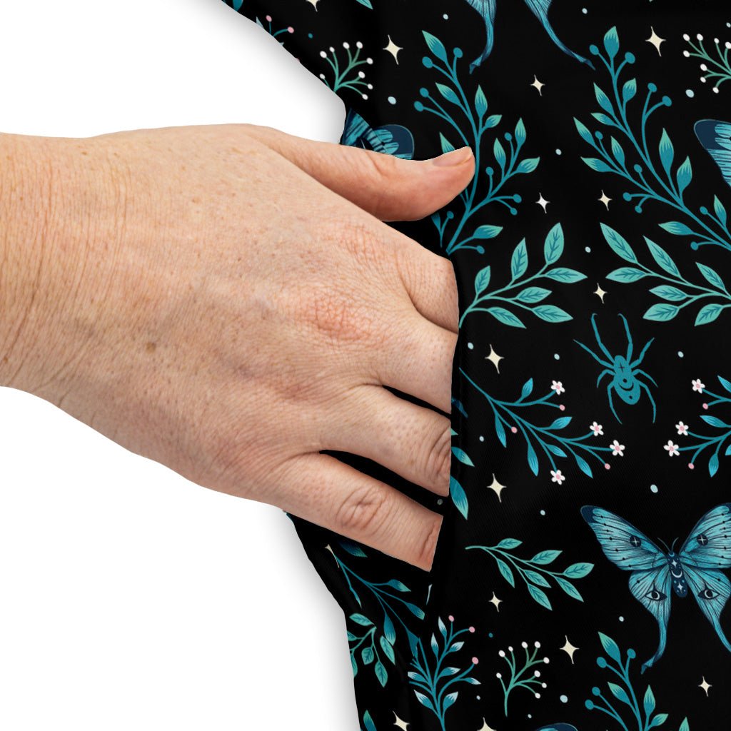 The Episodic Mystical Butterfly Blue Dress channels serene sky tones and fluttering wing motifs into a wearable daydream. Designed by Episodic, its blue canvas is scattered with butterflies and subtle botanical cues for a softly mystical vibe. Effortless to style, comfy for quests, and finished with those rare, actually-useful pockets. Artist-backed and ready for everyday magic, from con floor to coffee run.