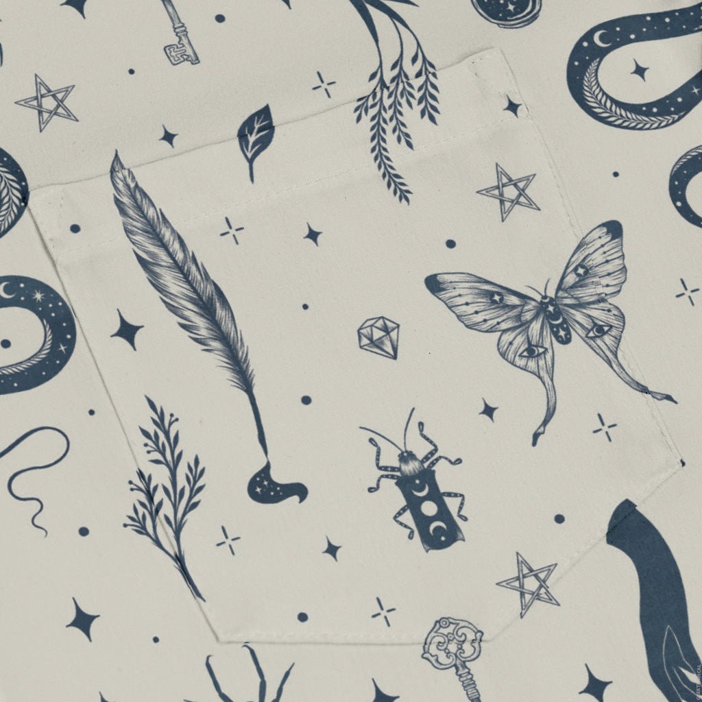 Episodic Mystical Collection Long Sleeve Button Up Shirt turns your wardrobe into a living field guide to wonder, designed by Episodic. An all-over botany print intertwines lush foliage with subtle mystical vibes, delivering a seamless, seam-matched layout across the front and pocket. Soft, breezy, and ready for quests or coffee runs, it pairs polish with geeky charm. Printed with eco-minded inks and crafted to support independent artists.
