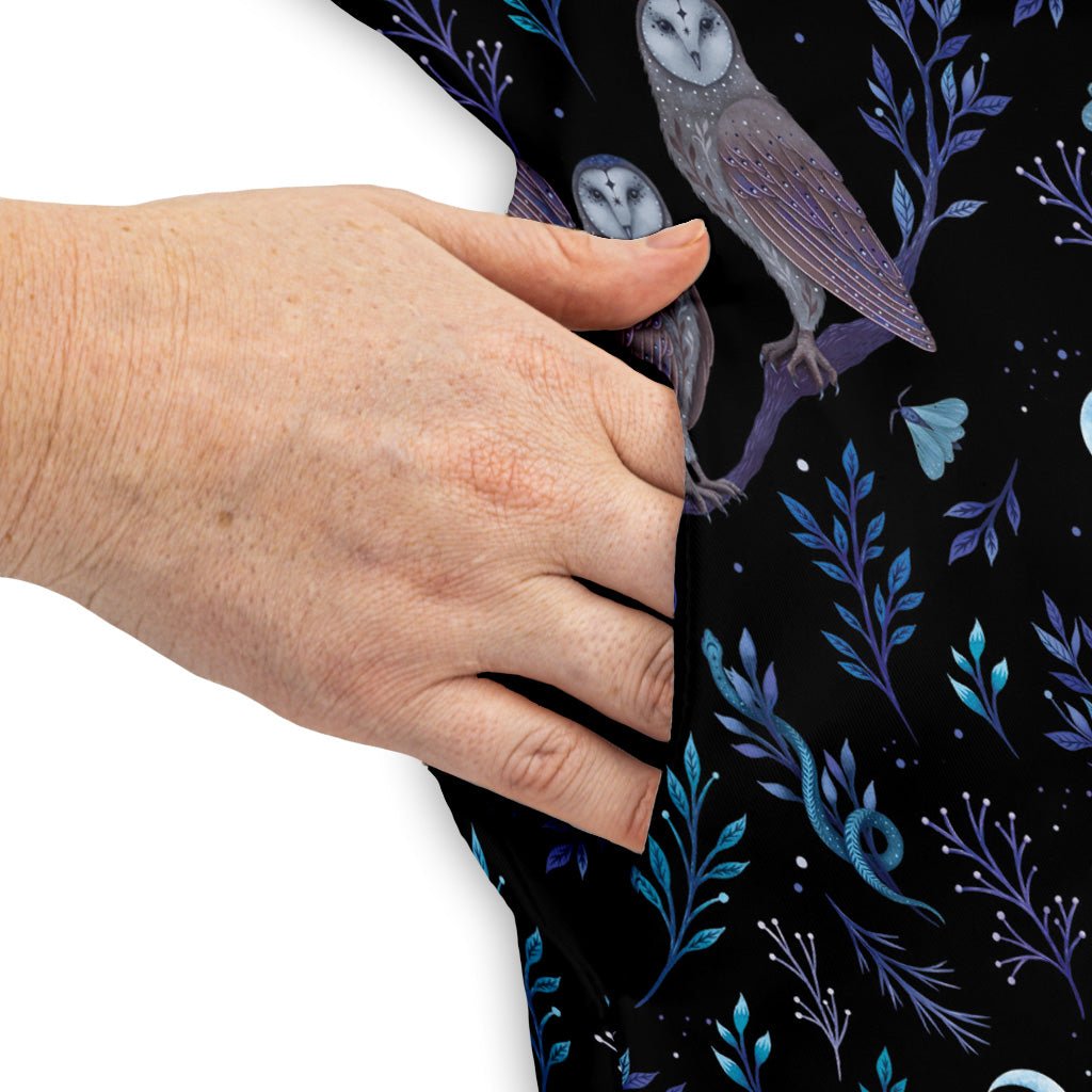 Meet the Episodic Owl Floral Dress, where wide‑eyed owls nestle among ornate florals for a look that’s curious, clever, and effortlessly polished. The all‑over artwork stays crisp and readable, with thoughtful spacing so every owl gets its moment. Designed by Episodic, it hints at cosmic whimsy without losing everyday ease. Easy to layer, movement-friendly, and yes—pockets. Artist‑backed style for game night or a gallery stroll.