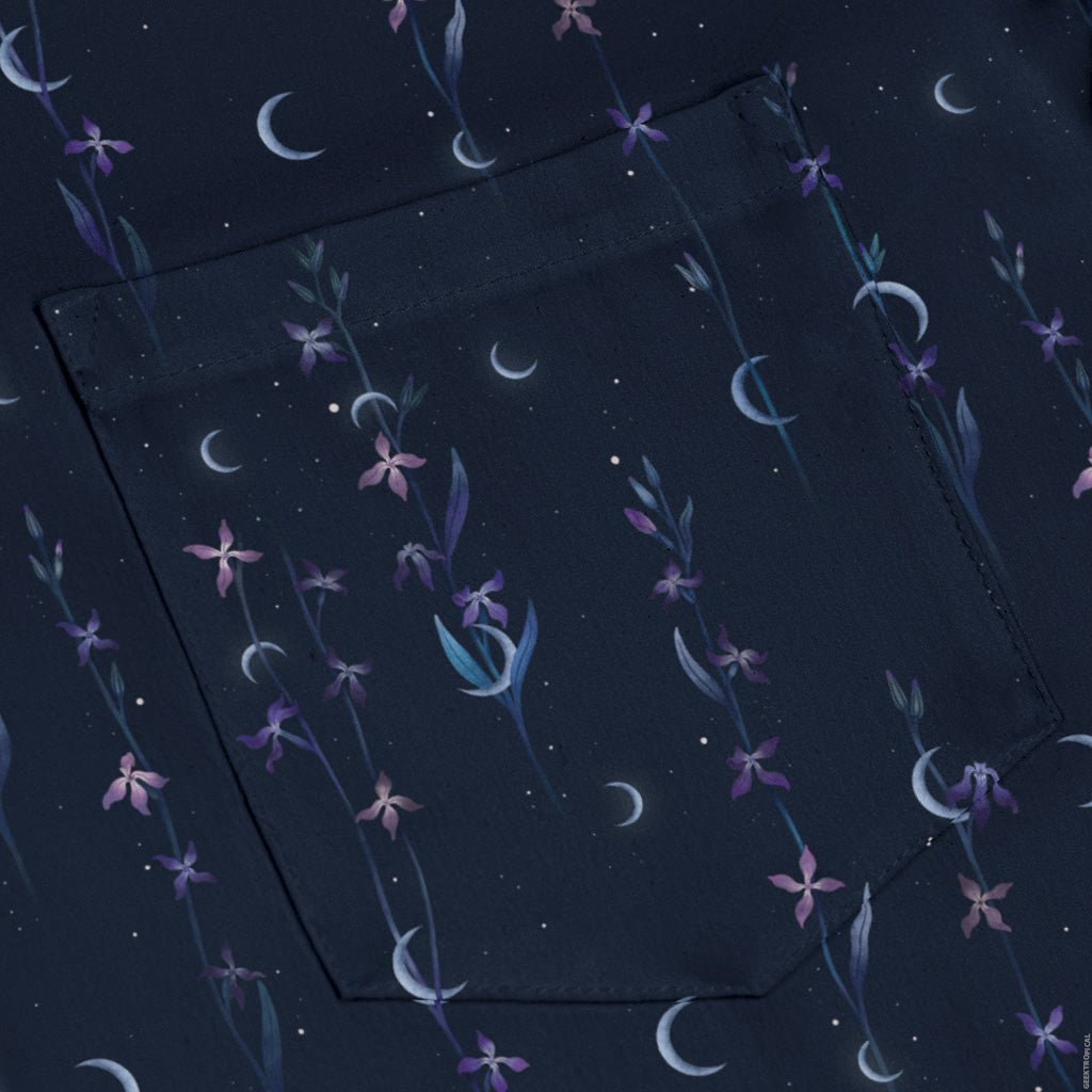 Meet the Episodic Scented Night Long Sleeve Button Up Shirt—a star-gazing statement where astronauts float across a deep night sky woven with botanical blooms. Designed by Episodic, the art lines up across the placket and chest pocket for a satisfyingly continuous look. Easy-wearing and convention-ready, it pairs geek flair with gallery polish, printed with planet-minded inks.