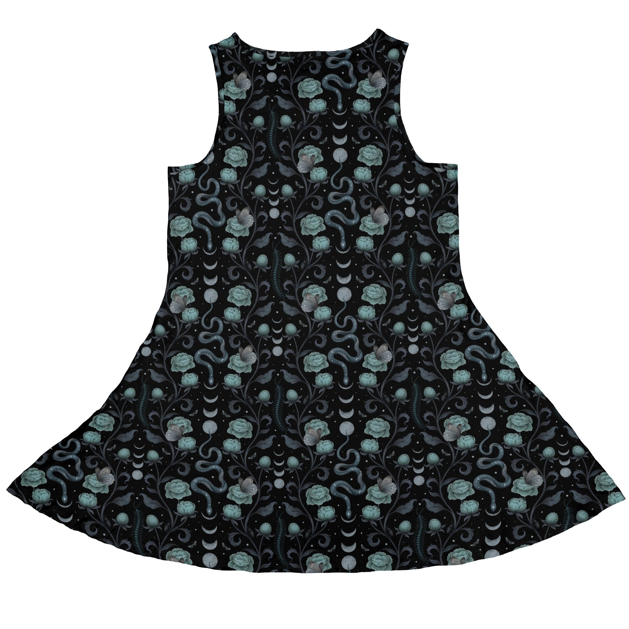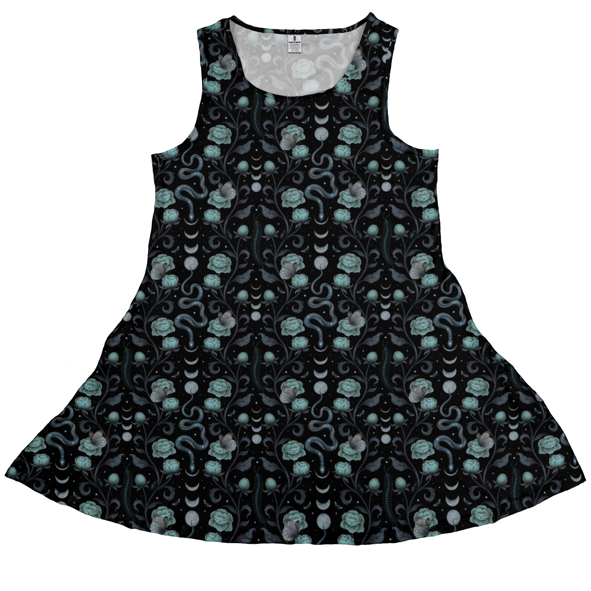 The Episodic Serpent Garden Blue Dress slips you into a cool blue garden where sleek serpents weave through lush leaves—designed by Episodic and made for daily quests. Smooth, breathable stretch keeps you comfy while the substantial drape stays confidently opaque. And yes, there are real side pockets—roomy enough for actual gear. Artist-backed, geek-approved, polished without trying.