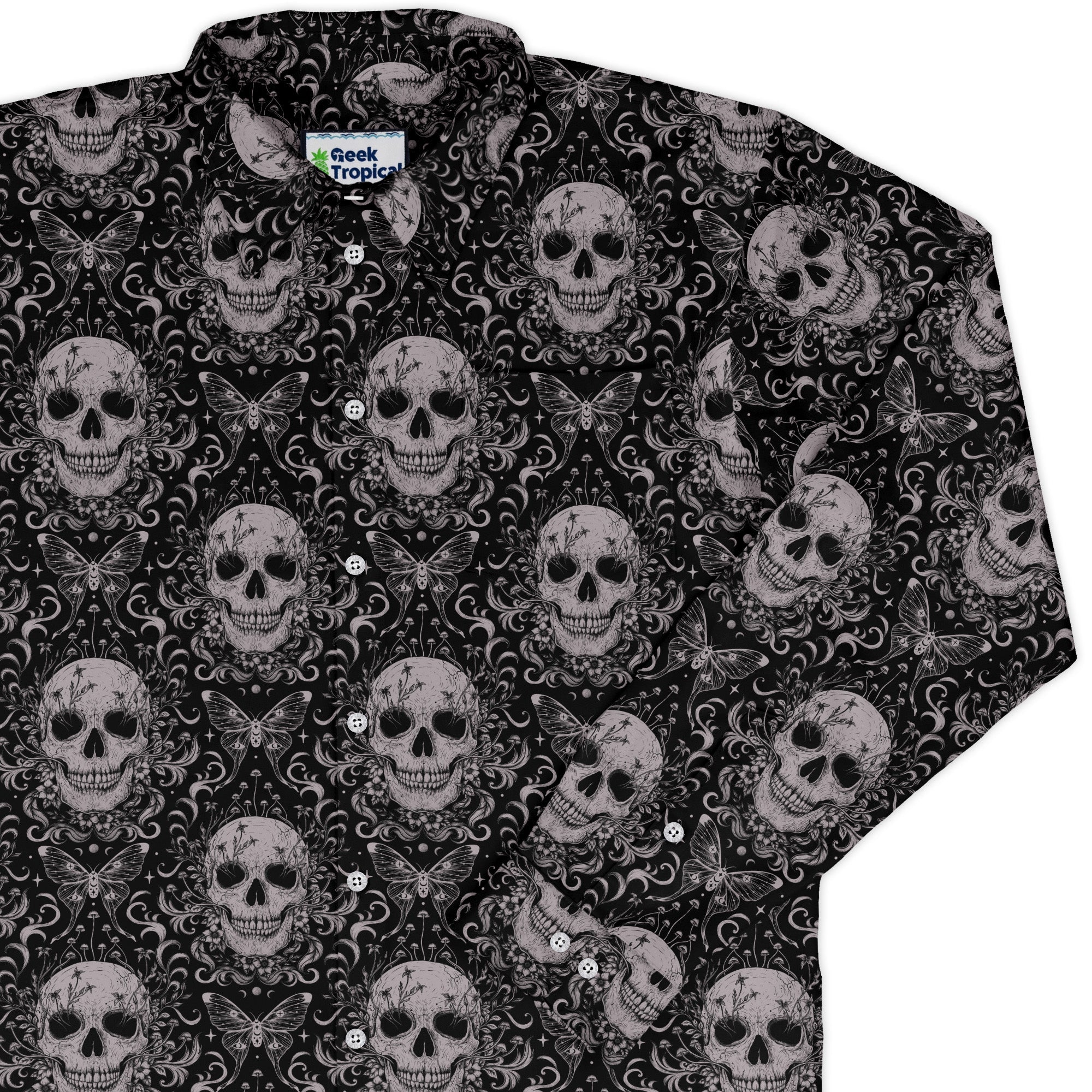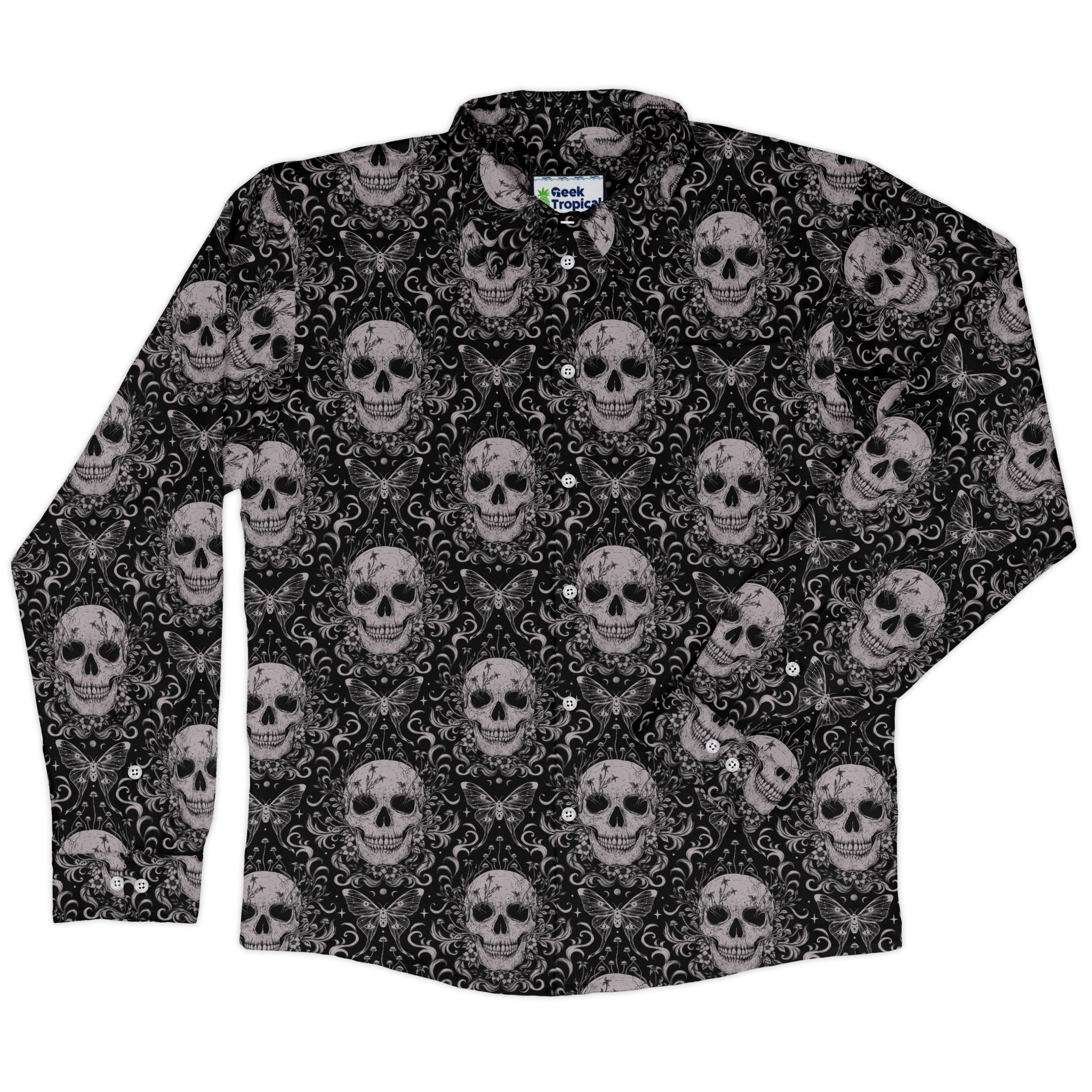 Episodic Skull Black White Long Sleeve Button Up Shirt