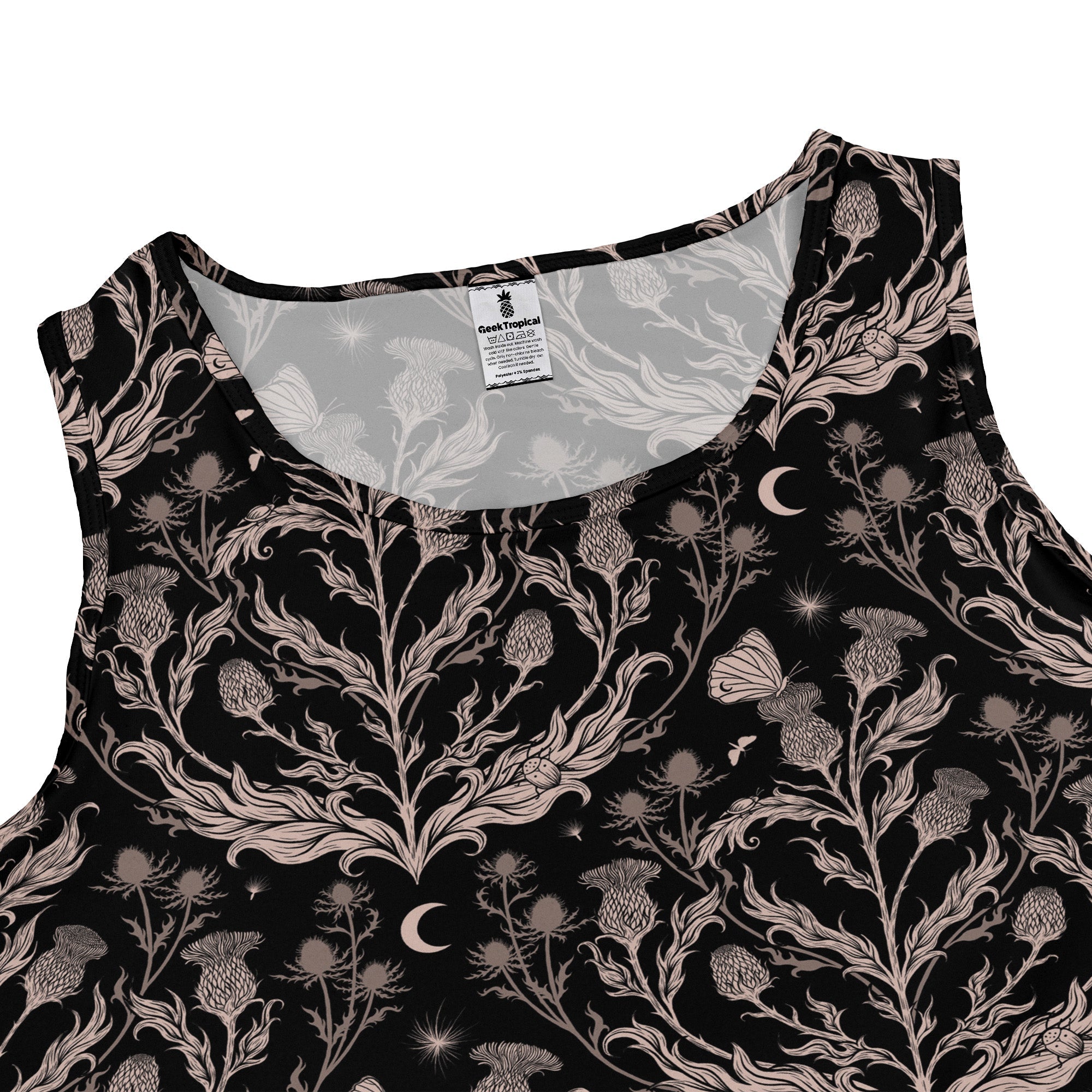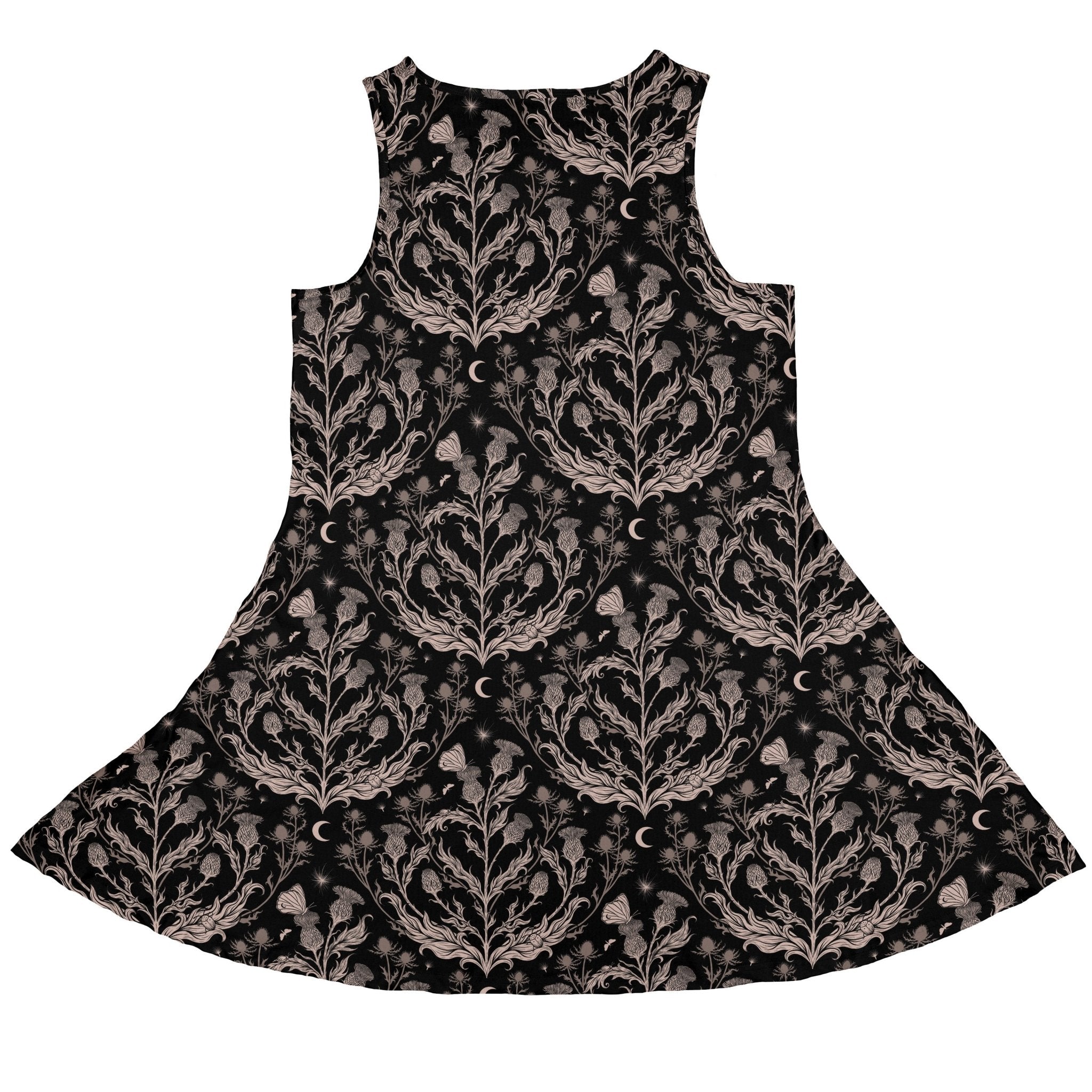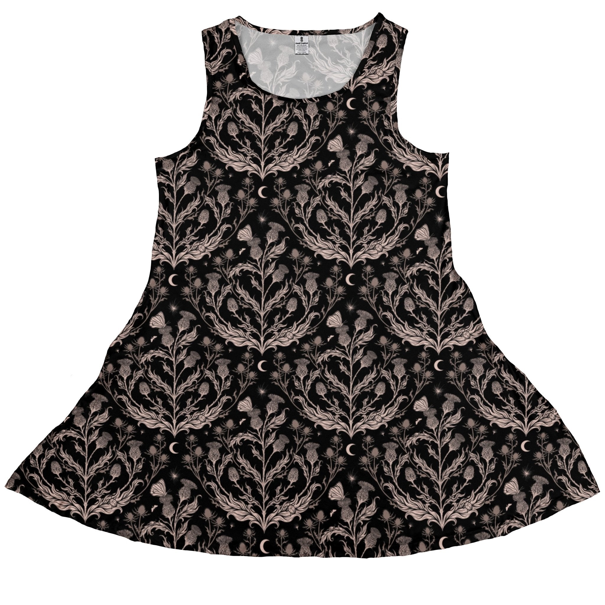 Meet the Episodic Thistle Home Black White Dress: a monochrome mood with brains. Crisp black-and-white thistles bloom across the fabric in clean, illustrative linework, turning botanical study into wearable art. The vibe is laid-back but polished, bold without shouting. High-contrast blooms and slender stems create a graphic rhythm that flatters in motion. Designed by Episodic, it’s artist-backed, geek-approved, and ready for museum crawls, code sprints, and coffee quests.