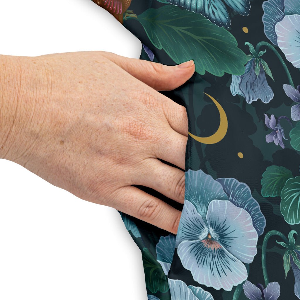 Meet the Episodic Violet Night Dress, a cosmic-meets-botanical daydream built for curious hearts. On a deep violet canvas, astronaut motifs drift among stars while leafy florals and subtle animal patterns add organic contrast. The silhouette stays polished with lounge-level comfort, full-coverage opacity, and an easy, breathable feel. Handy side pockets (yes, real pockets) keep essentials close. Designed by Episodic and proudly artist-backed.