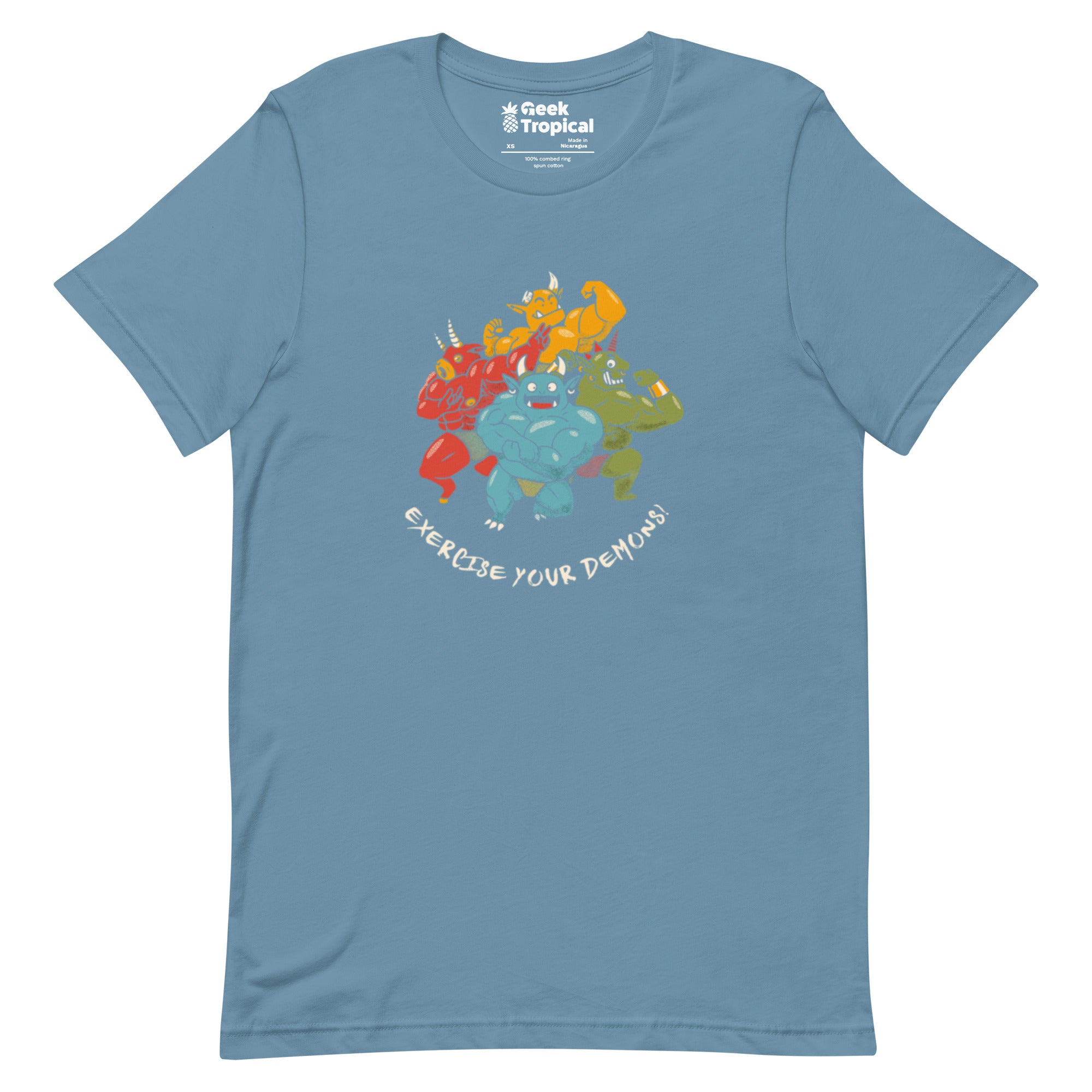 Exercise Your Demons T-Shirt channels your inner boss battle into leg day. The artwork centers the phrase Exercise Your Demons in bold, gym-meets-occult type, paired with a mischievous demon icon that looks ready to sweat it out. Perfect for halloween vibes, fantasy fans, and post-raid cooldowns. Artist-supported and printed with eco-minded inks, it lifts spirits while you lift weights.
