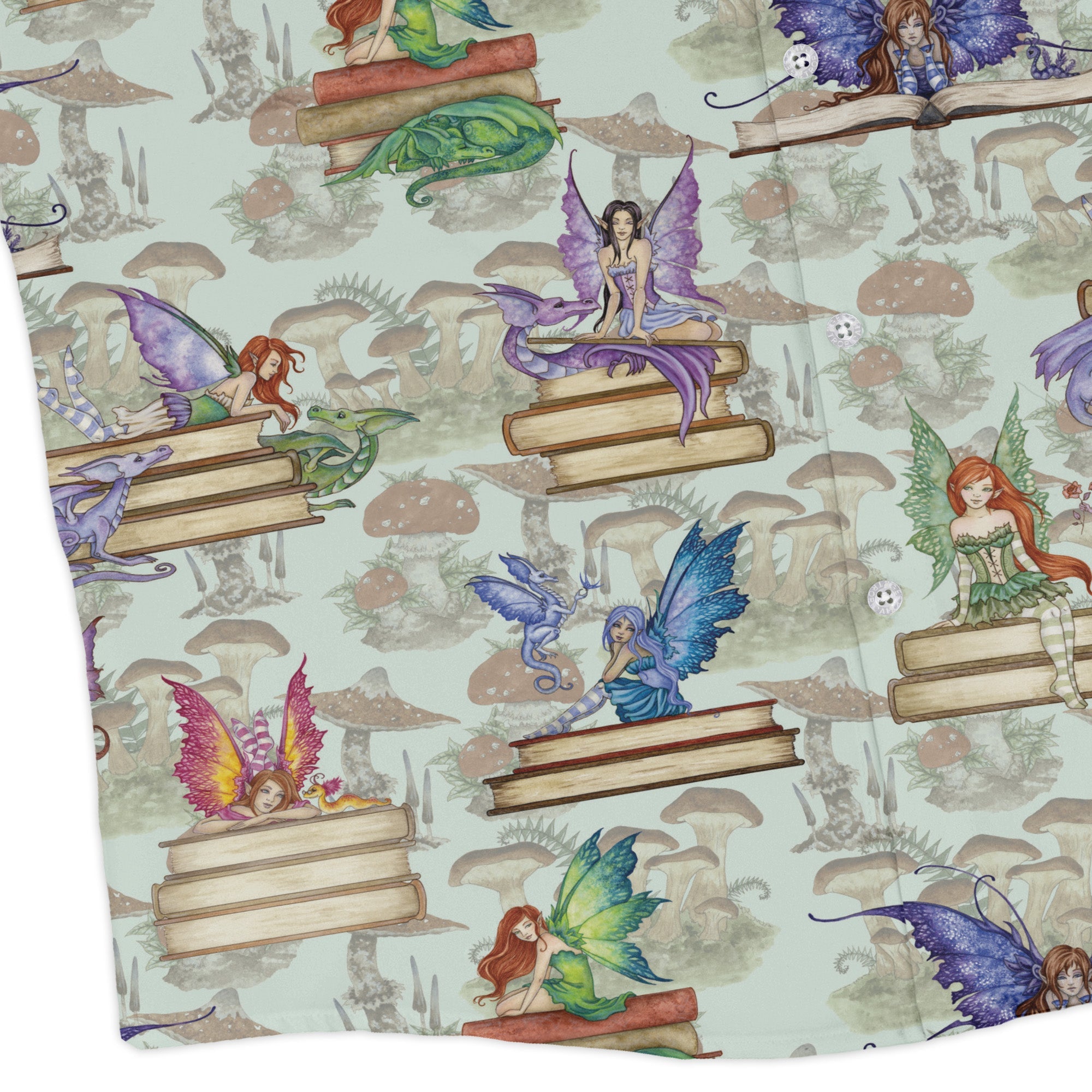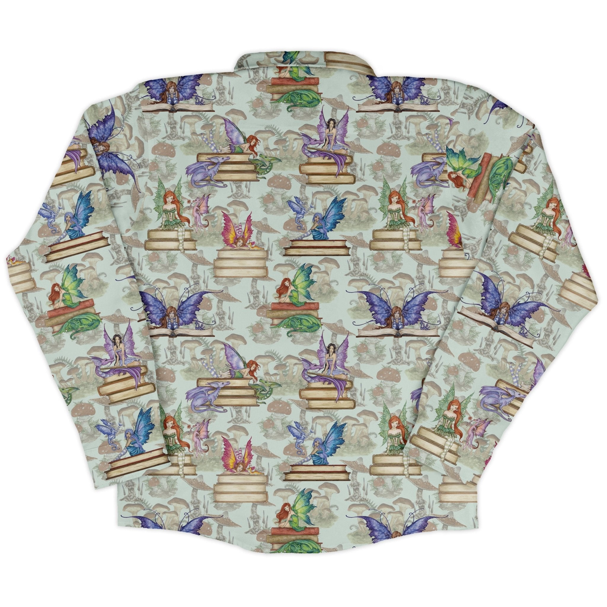Meet the Fairy Tales Long Sleeve Button Up Shirt, a storybook-worthy layer for bookish dreamers and fantasy fans. Amy Brown’s whimsical fairies flit among enchanting books, wrapping the shirt in illustrated lore from collar to cuff. The artwork flows neatly across the chest pocket for a seamless look, and the soft, easy drape moves from office hours to con quests with equal charm—smart, geeky, and proudly artist-backed.