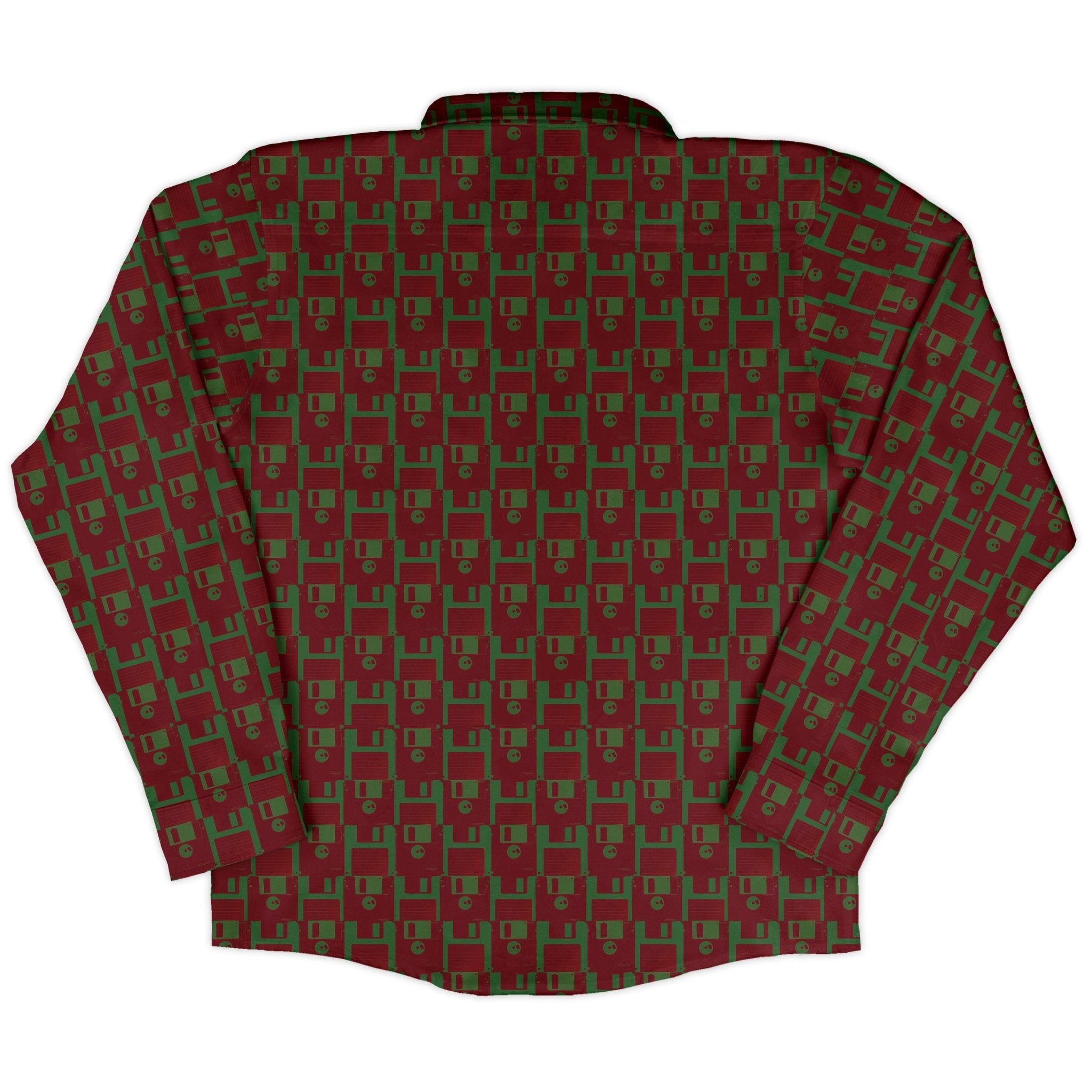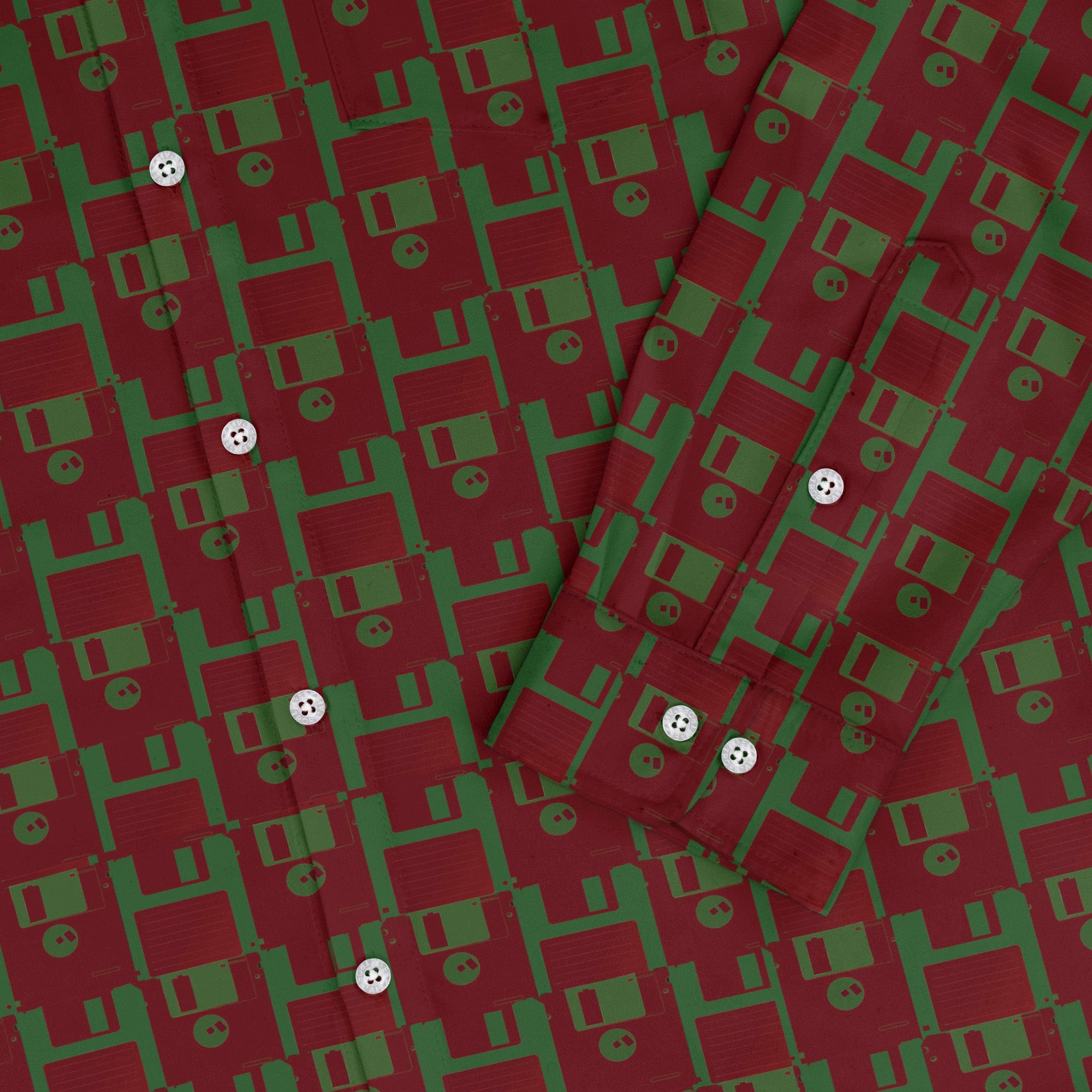 Floppy Disk Red and Green Long Sleeve Button Up Shirt